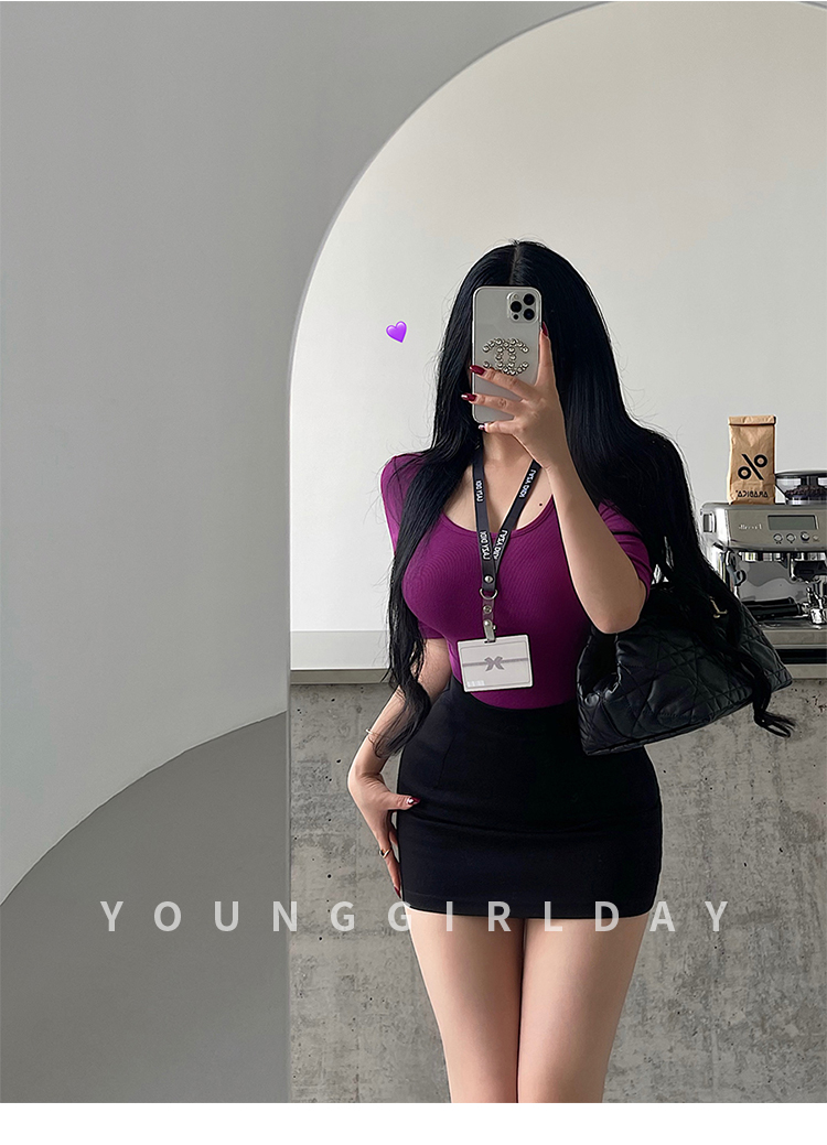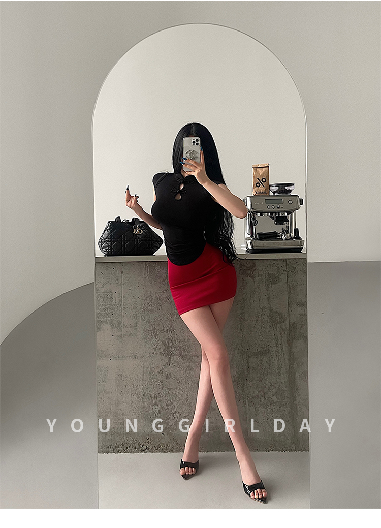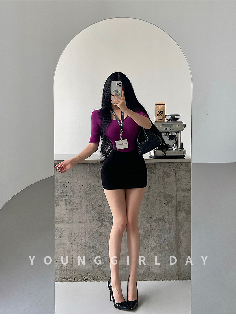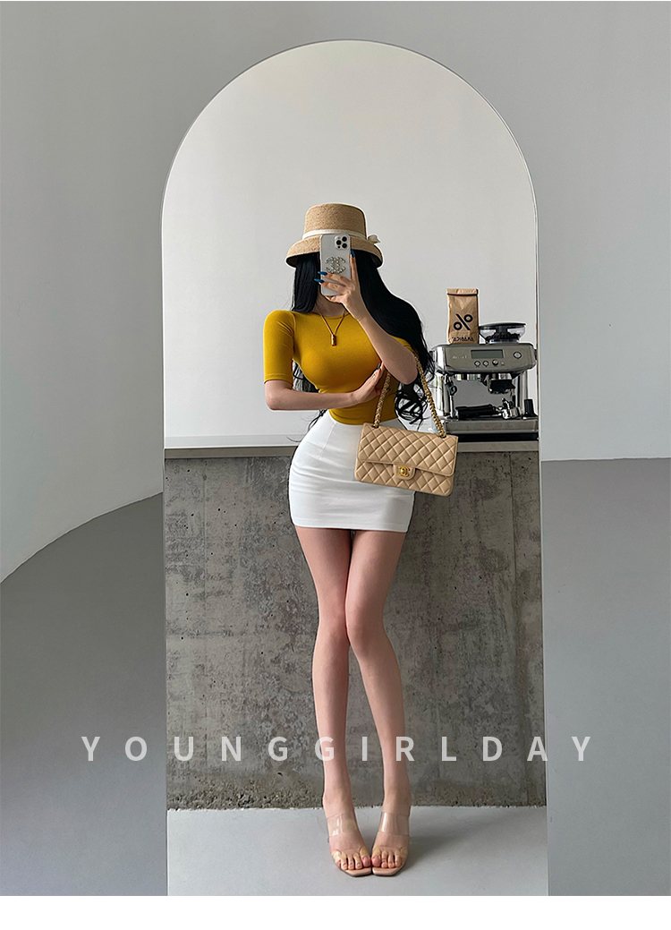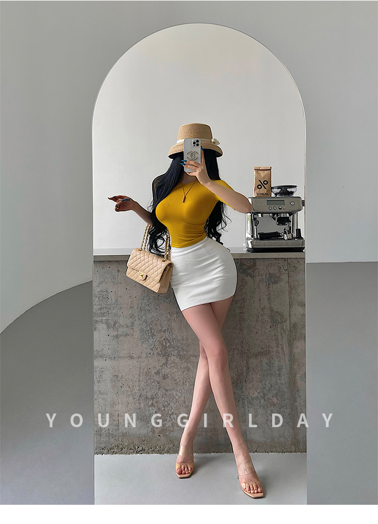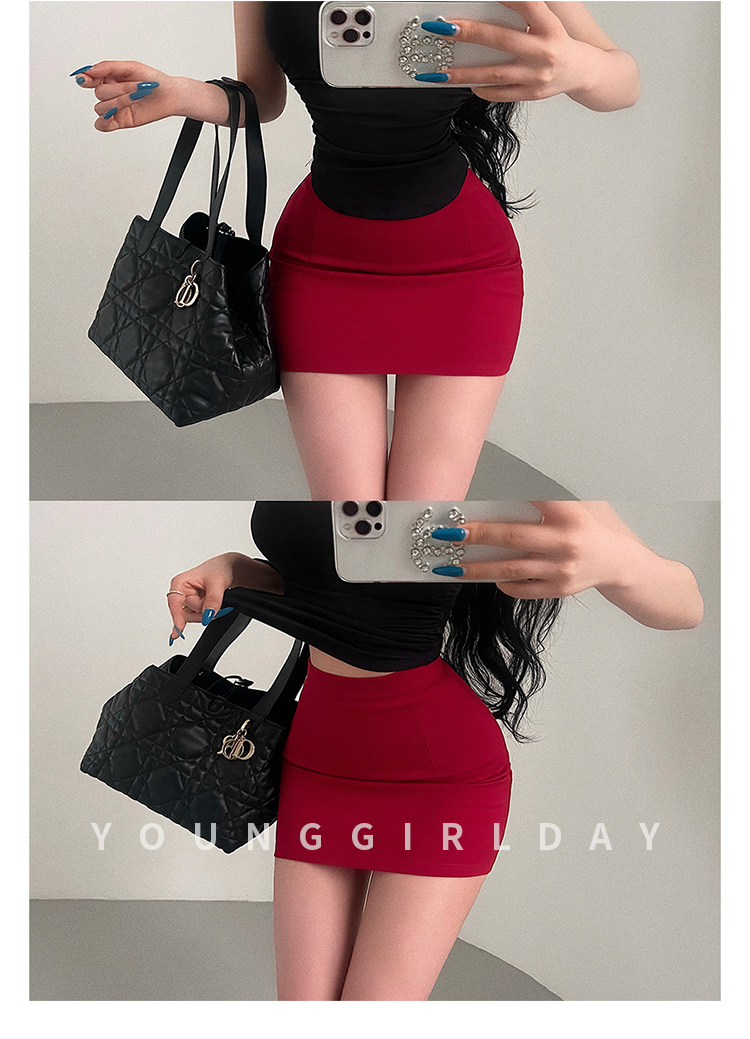 Younggirlday Korean Style Pure and Sexy Ol High-Waisted Hip-Enhancing Slimming Anti-Exposure Bodycon Skirt Short Skirt