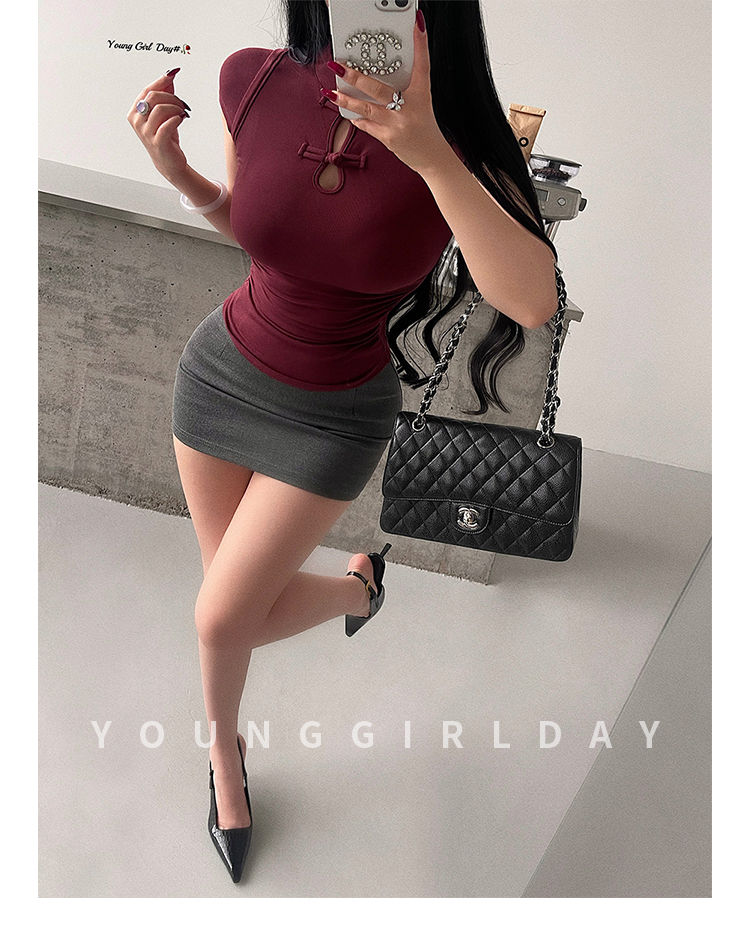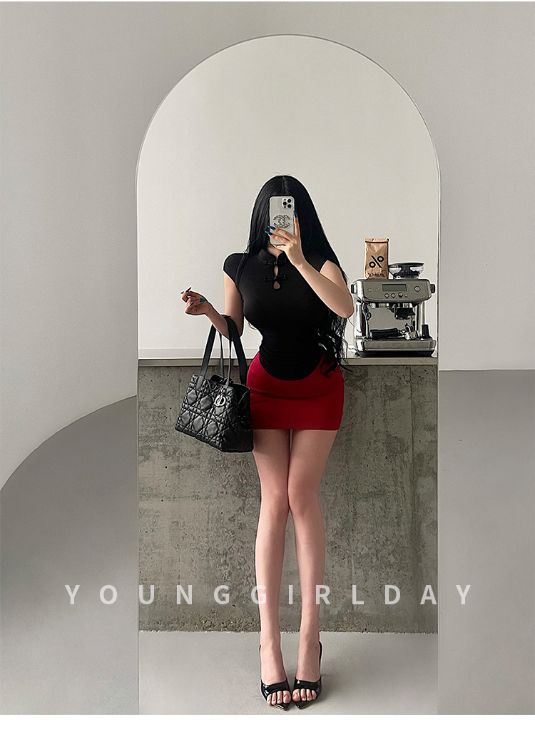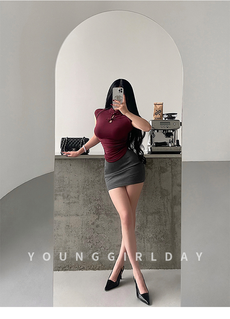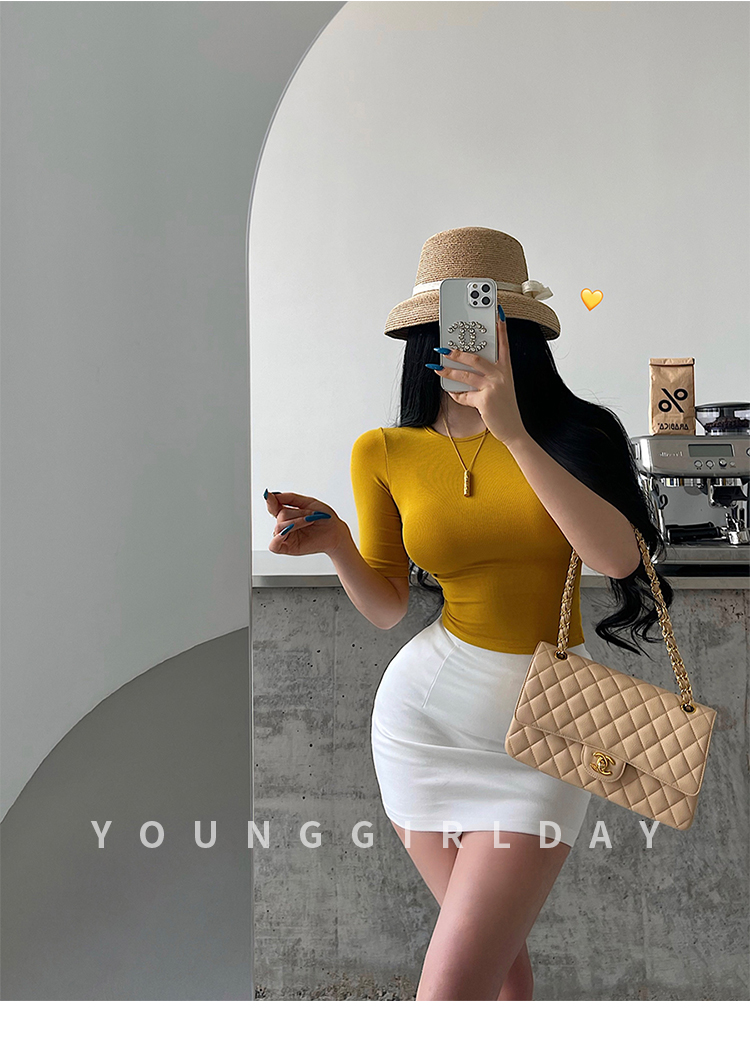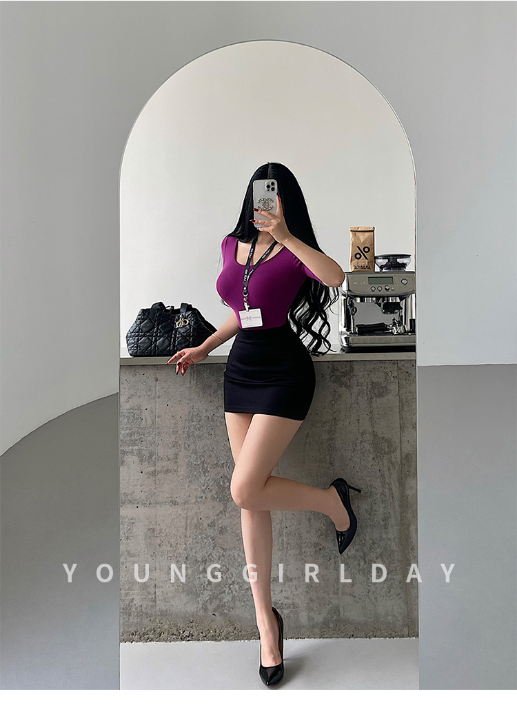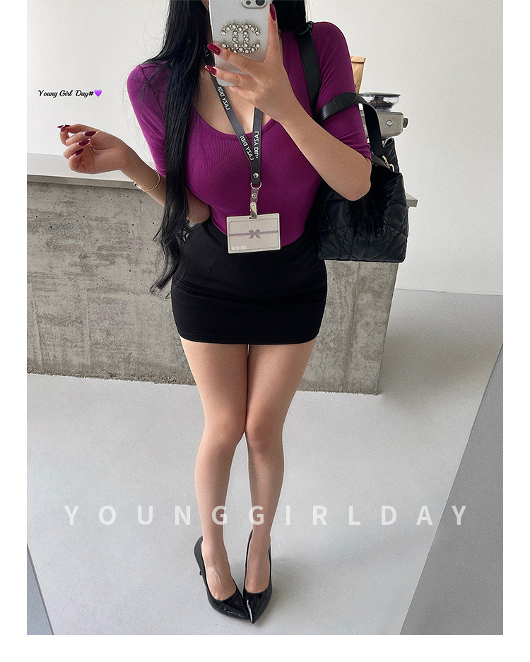 Younggirlday Korean Style Pure and Sexy Ol High-Waisted Hip-Enhancing Slimming Anti-Exposure Bodycon Skirt Short Skirt