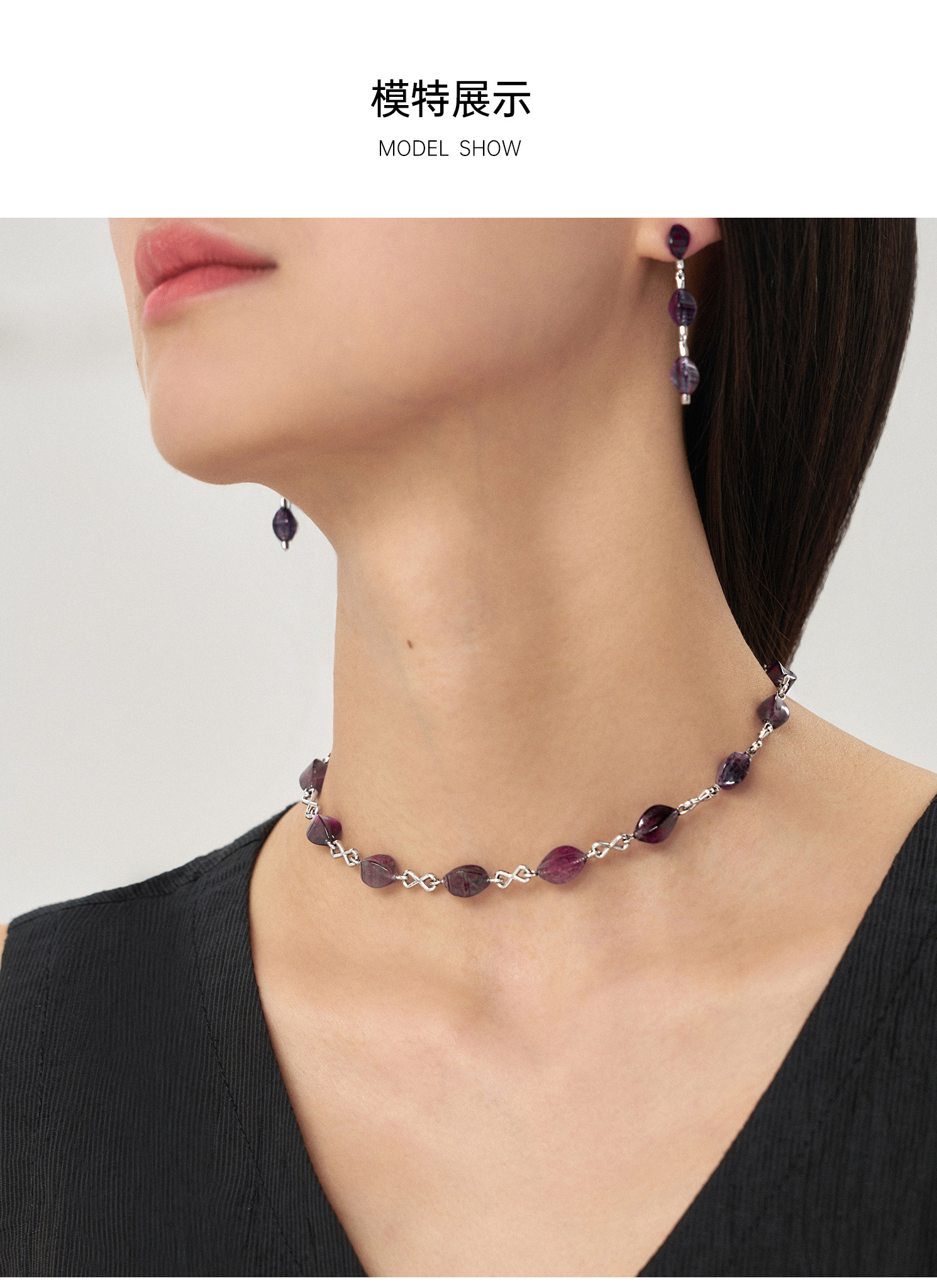 Sudrov Is a Light Luxury Niche Brand with a High-End Feel, Featuring a Crystal Necklace with Purple Natural Gemstones, a Clavicle Chain for Women