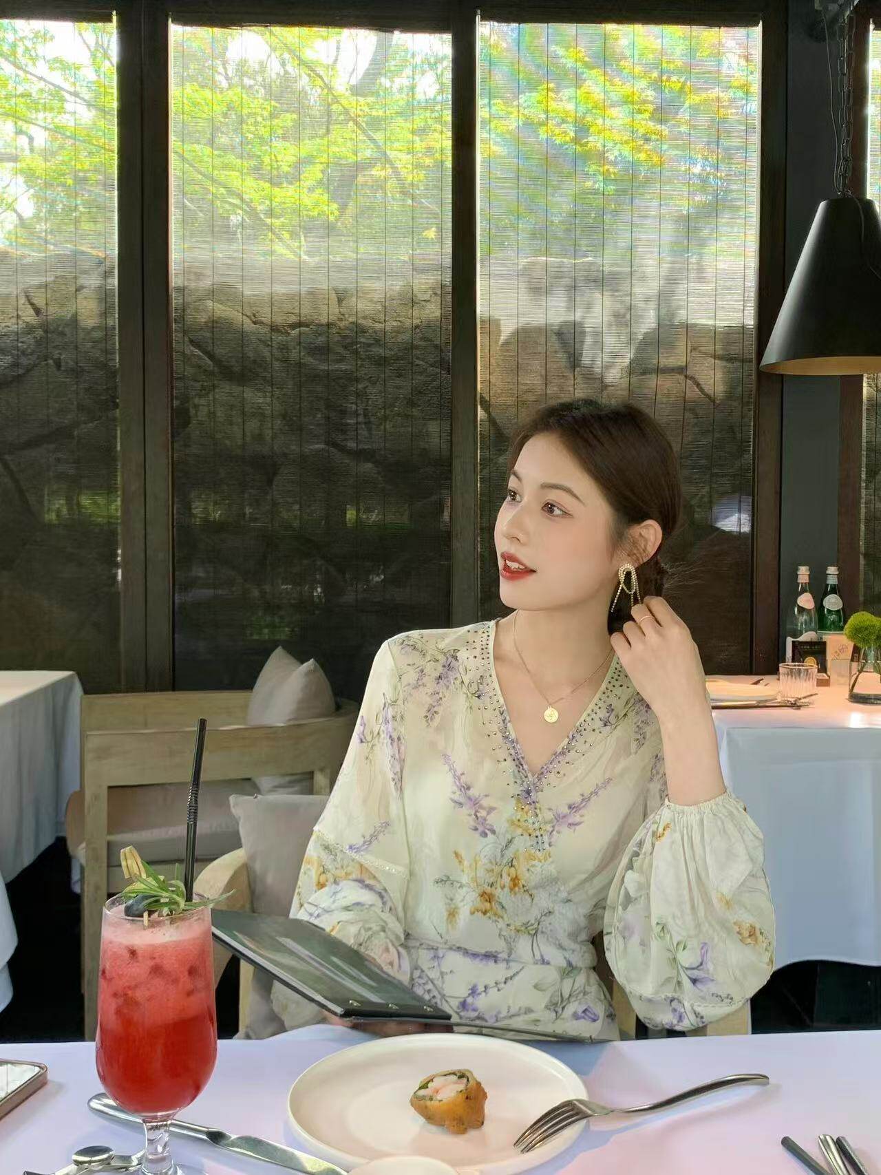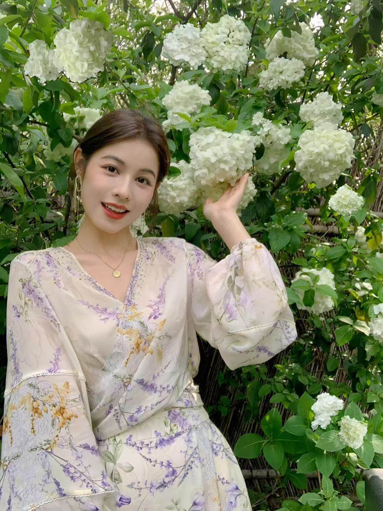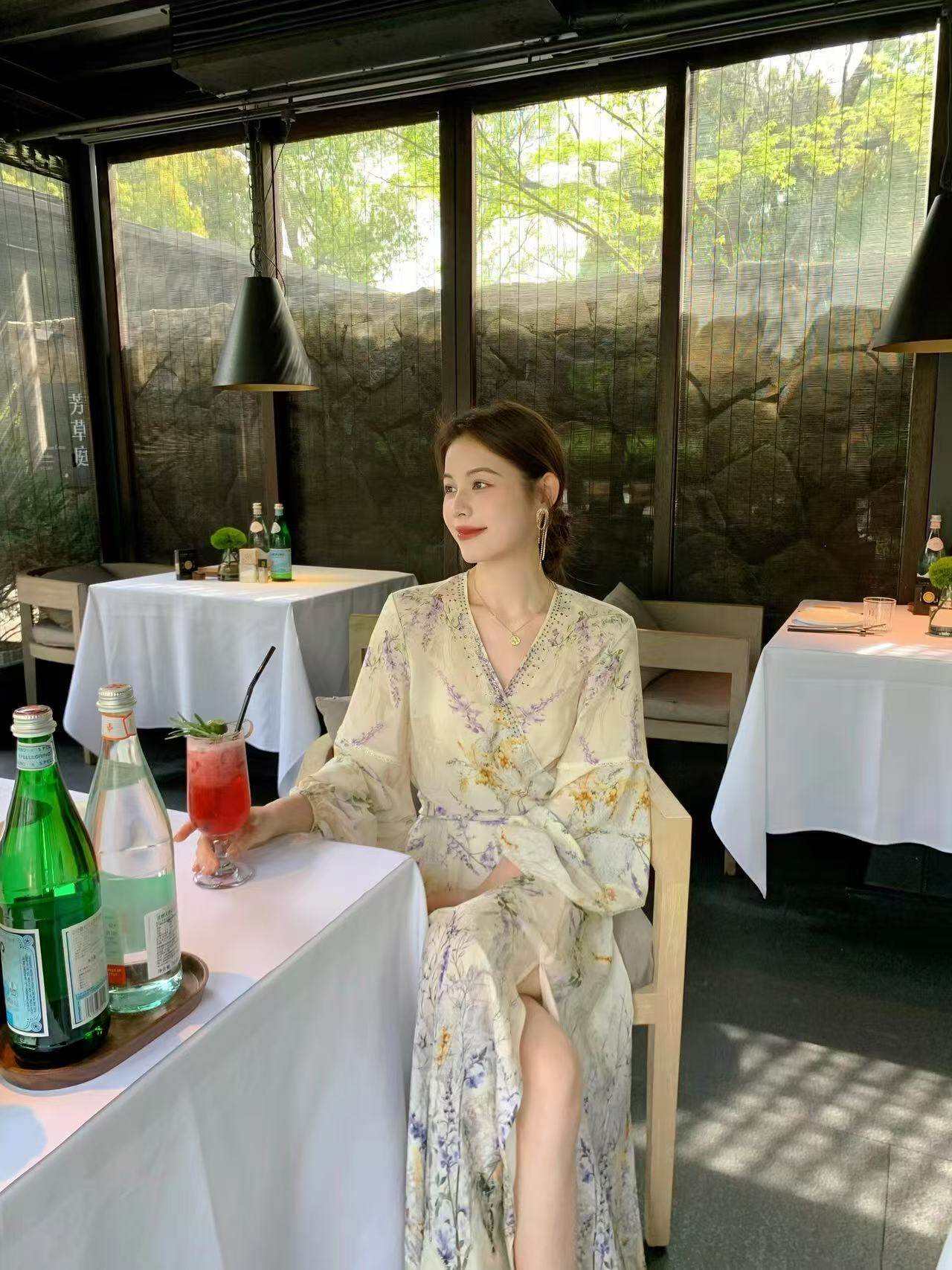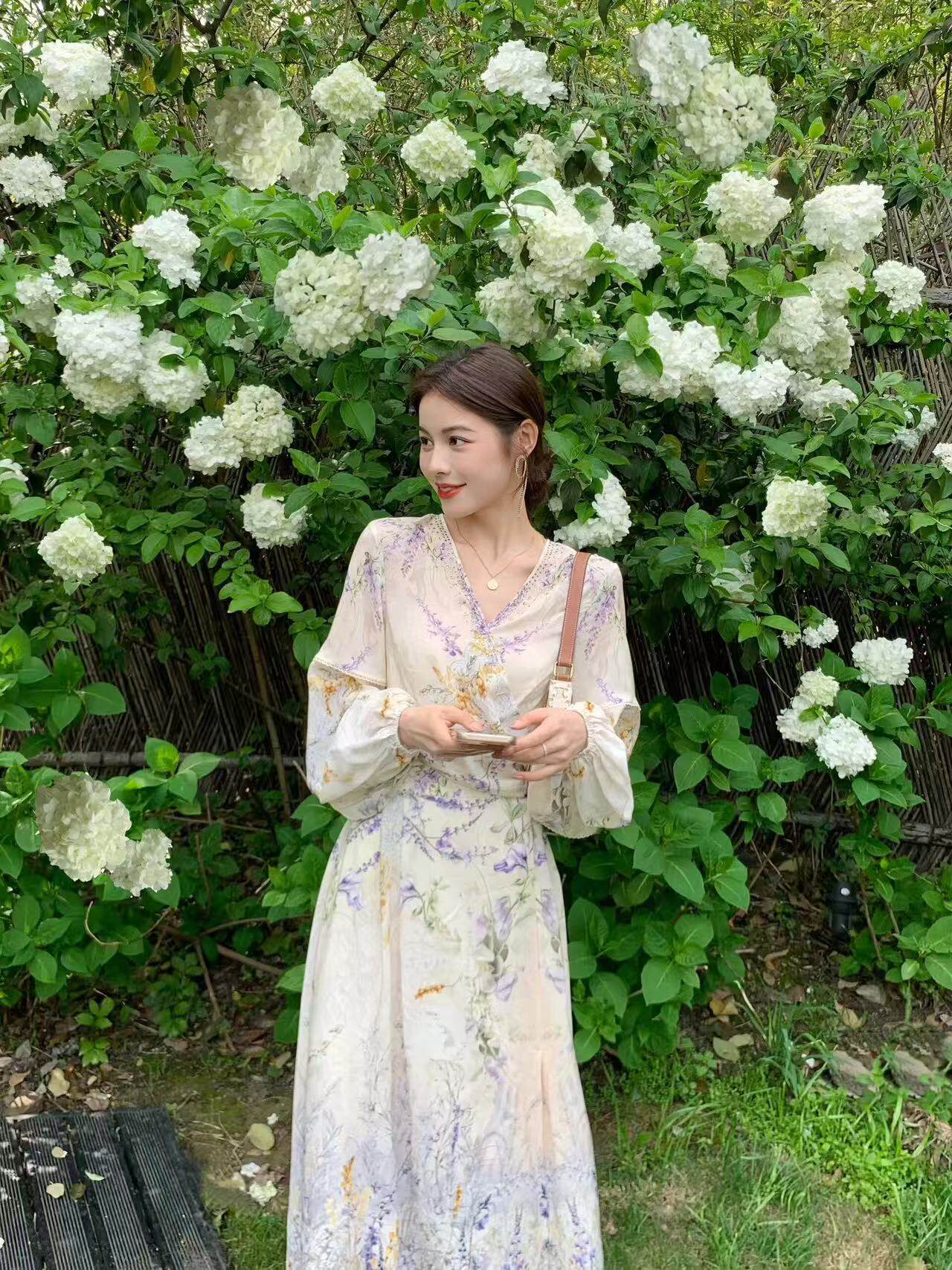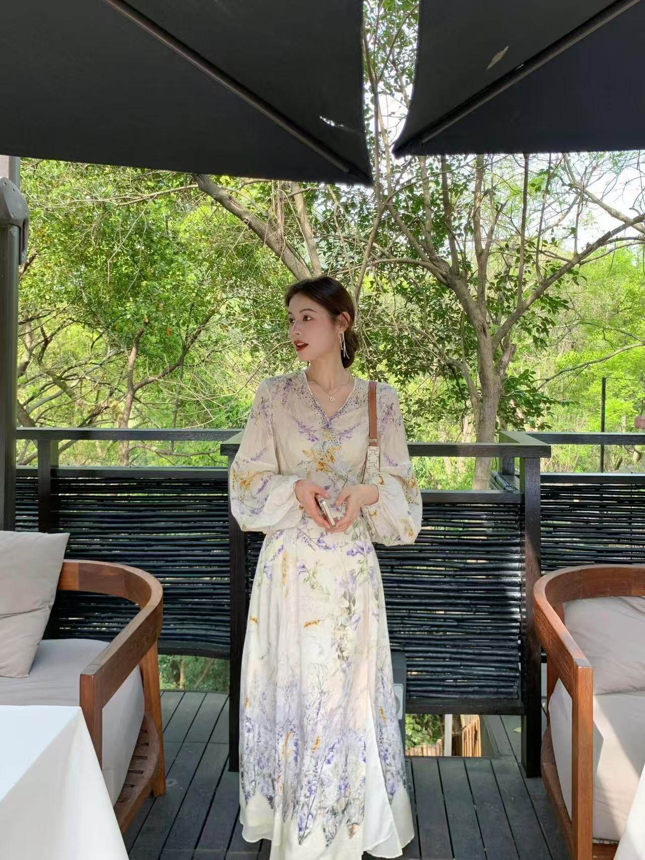 Celebrity Diary Style Long-Sleeved Sun-Protective Floral Dress for Women, Niche Design, High-End Slimming Suit Dress, Long Skirt