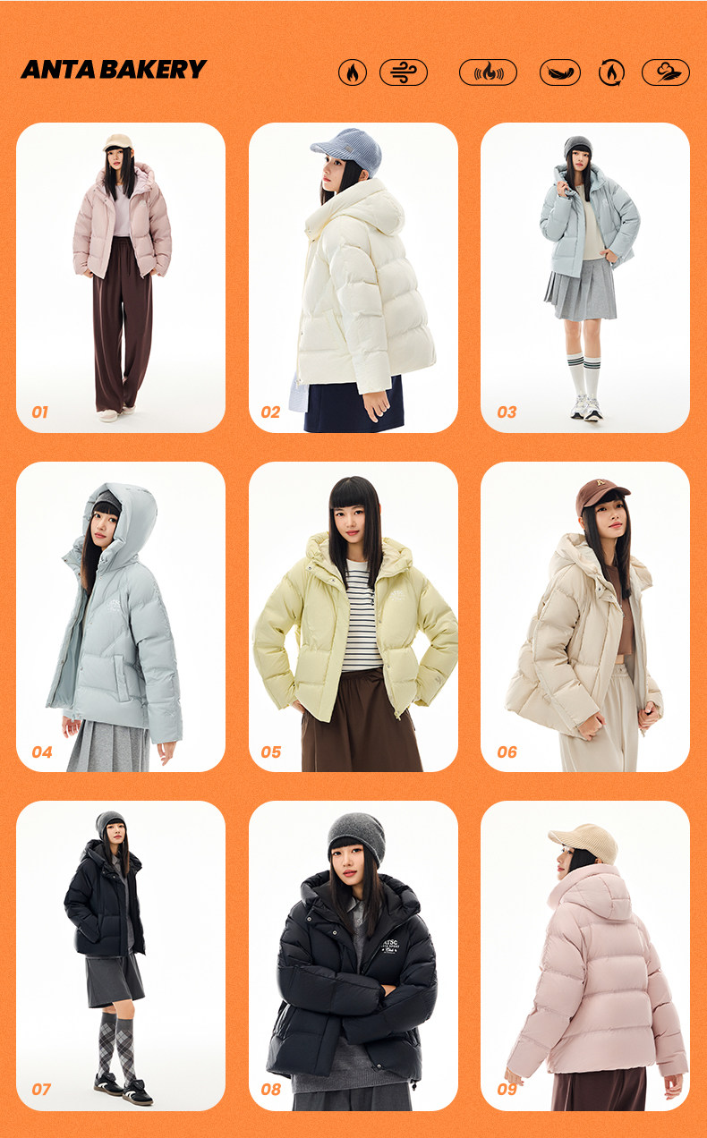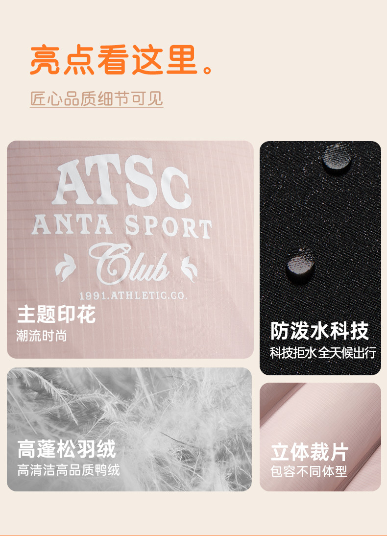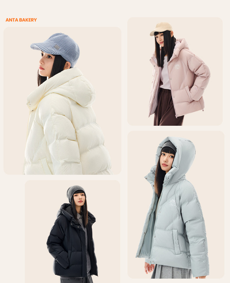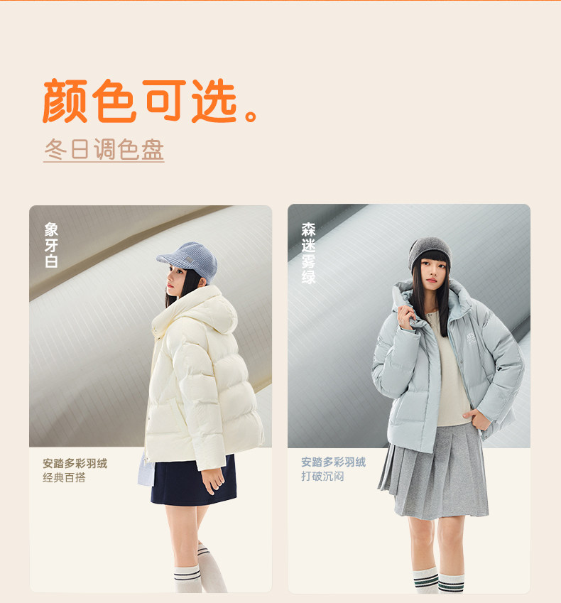 Anta Colorful down Jacket | Water-Repellent Warm Coat for Women Winter Duck down Puffer Jacket Cotton Coat 162548903N