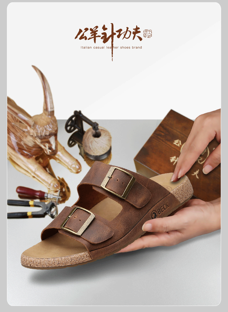 Ram Slippers 2025 Summer New Breathable Genuine Leather Soft Sole Outdoor Casual Shoes Men's Birkenstock Sandals