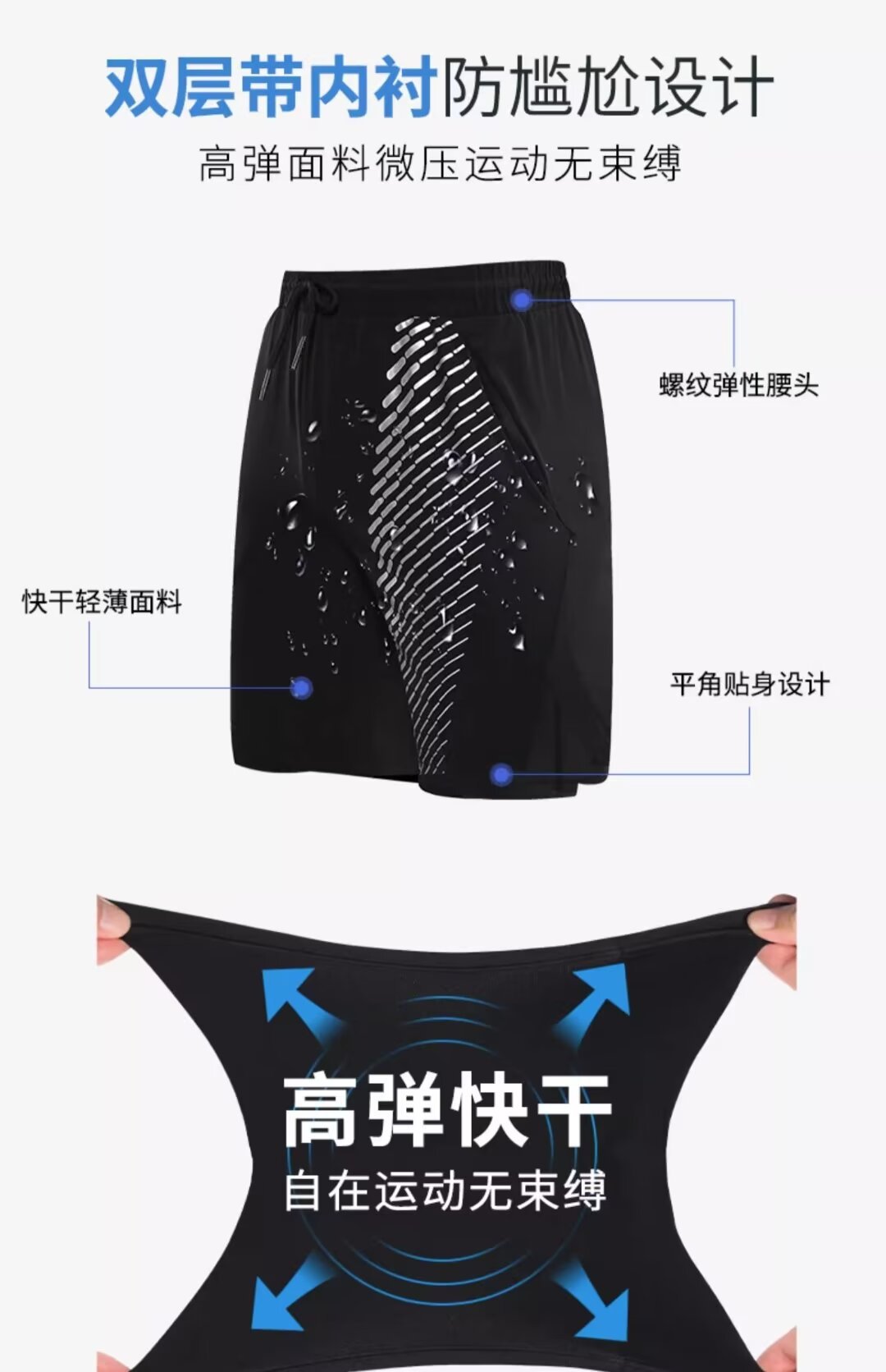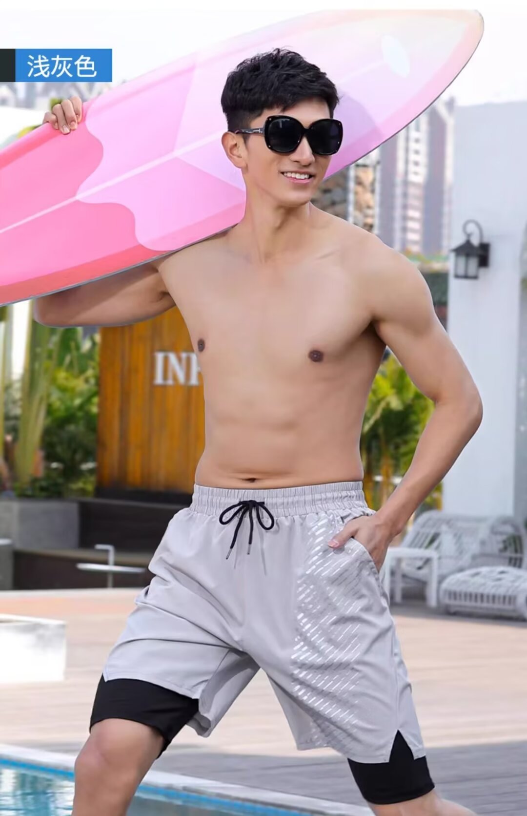 Men's Swimming Trunks Set, Anti-Embarrassment, Double-Layered, Five-Point Lining, Loose, Quick-Drying, Beach Gear, Men's Swimsuit, Swimming Cap