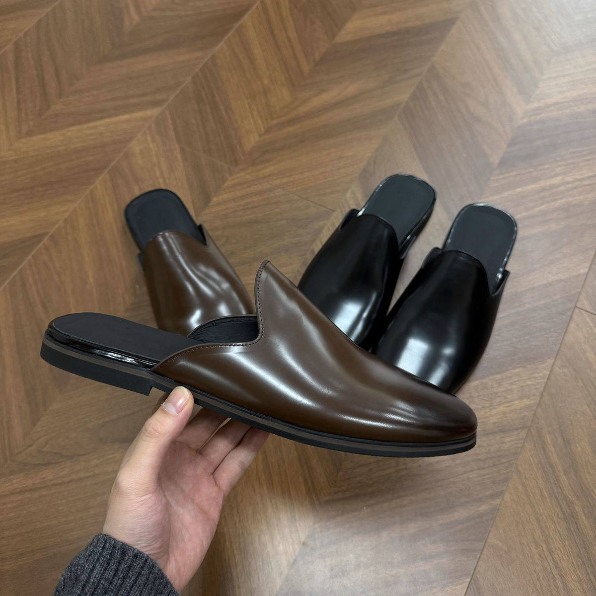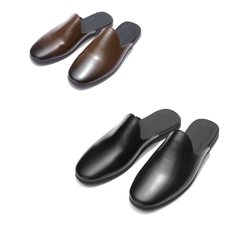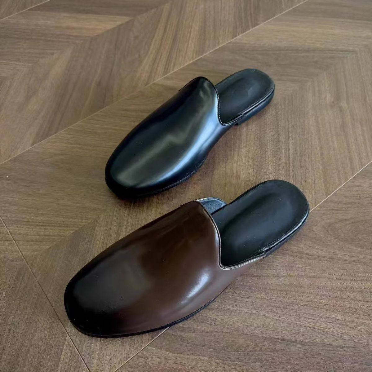 Retro Mules for Couples, Unisex Slip-On Leather Shoes, Outdoor Flat Closed-Toe Slippers, Commuting Half-Slippers, Trendy