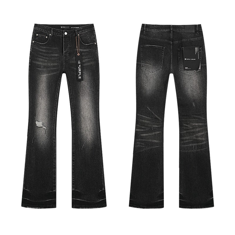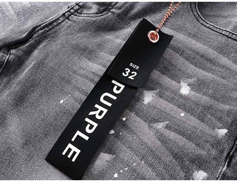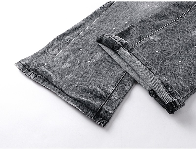 Trendy Purple Brand Vintage Splatter Ripped Jeans High Street Washed Casual Trendy Flared Long Pants for Men
