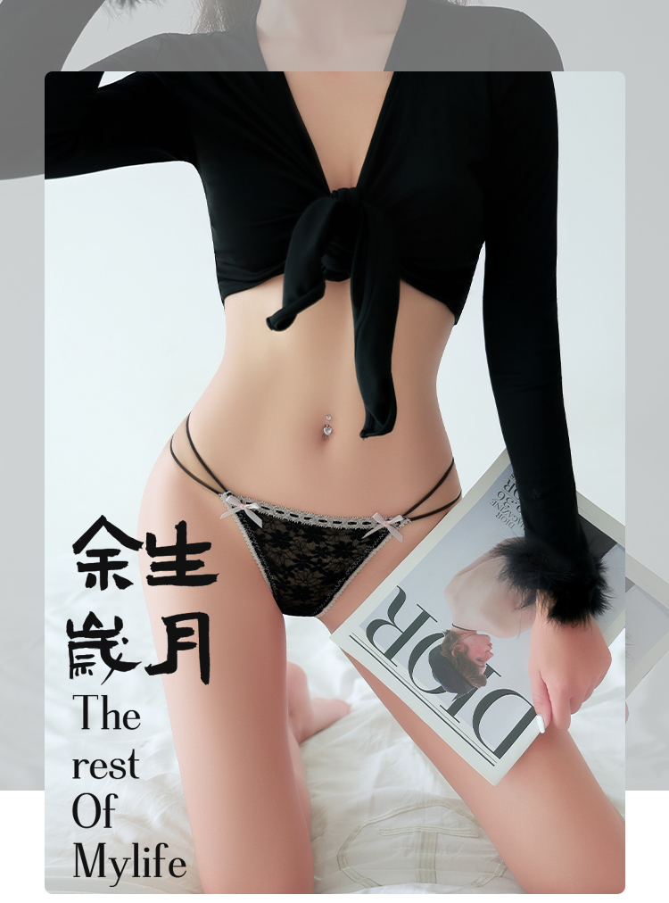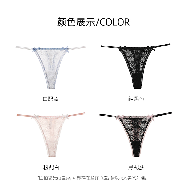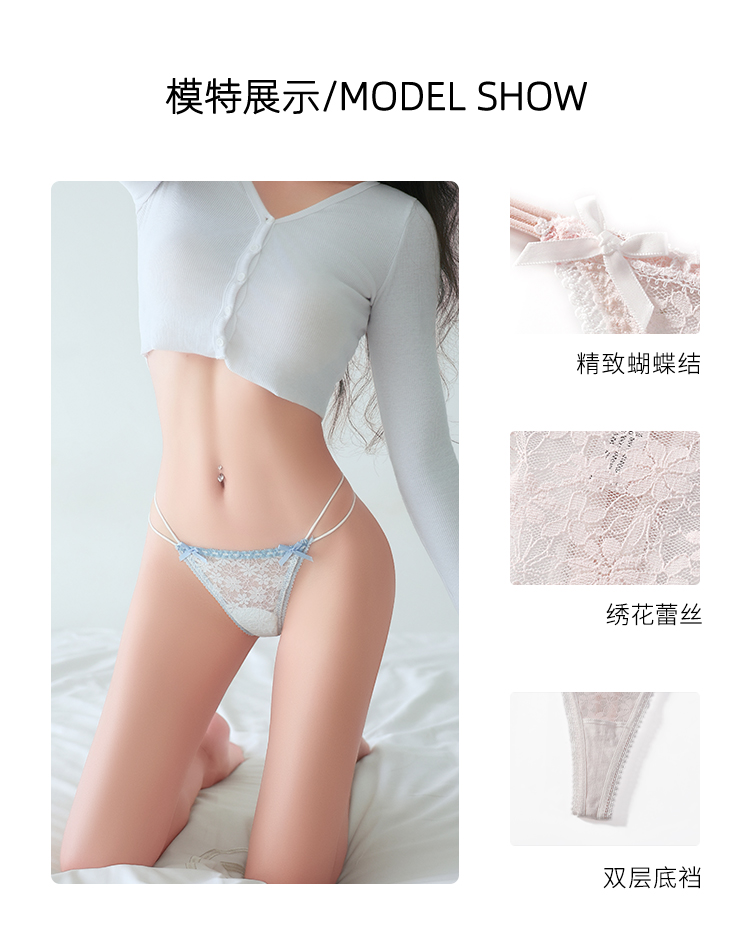 Japanese Style Pure Desire Style Sexy Lace Bow Women's Panties High Slit Thin Strap Pure Cotton Crotch Seamless Thong for Women