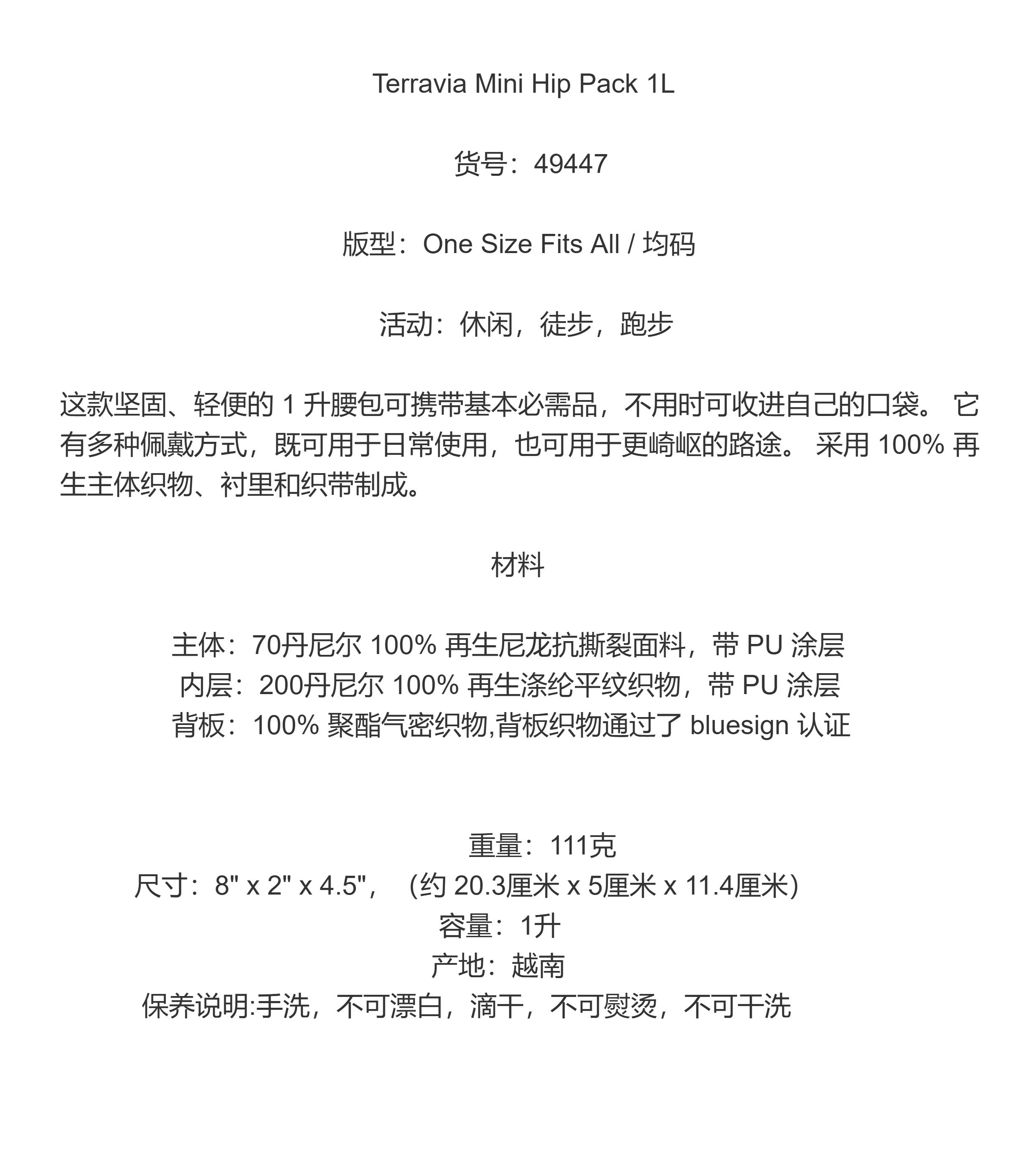 In-Stock Pata Bata Blackhole Mini Pack 1L Ultra-Light Hiking and Running Waist Bag Crossbody Hip Bag