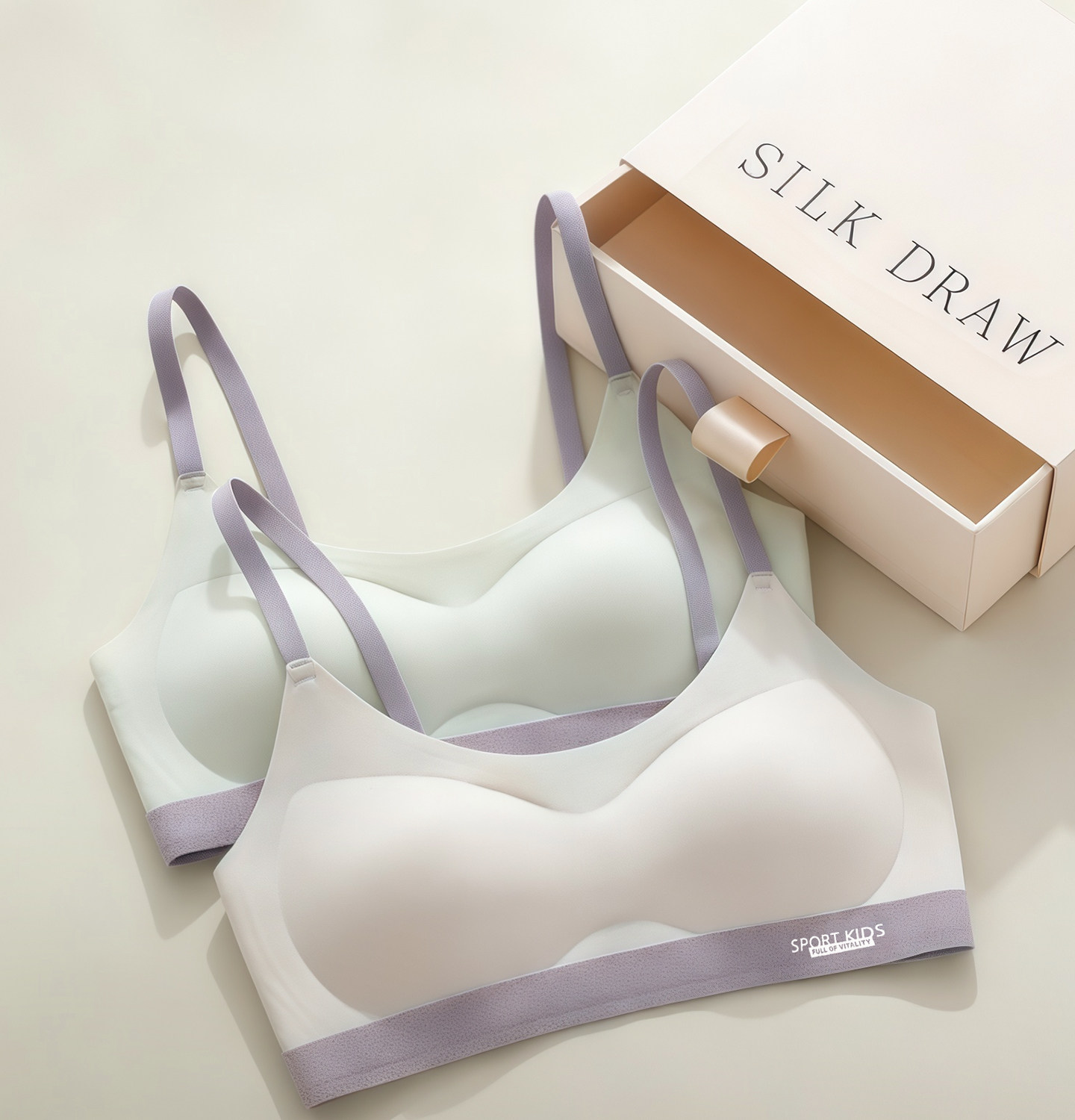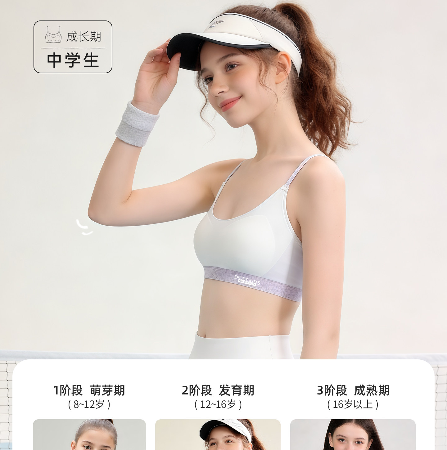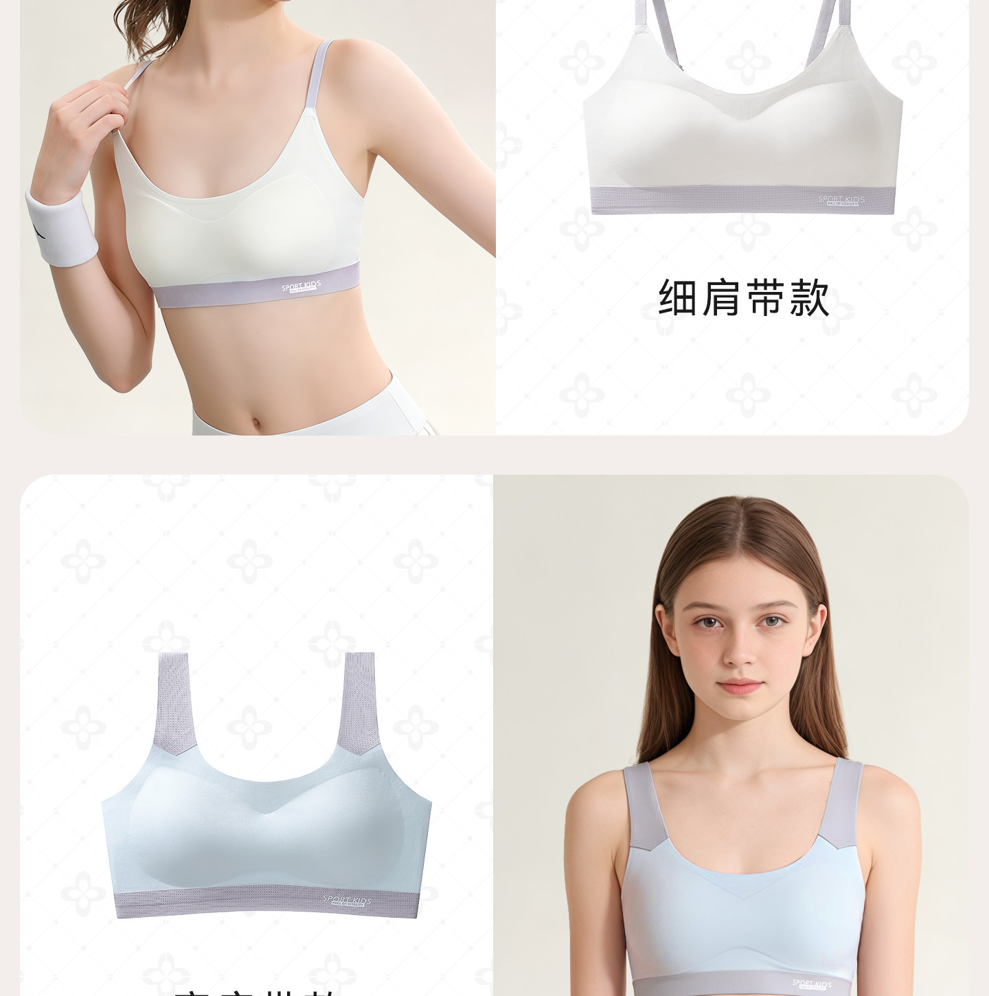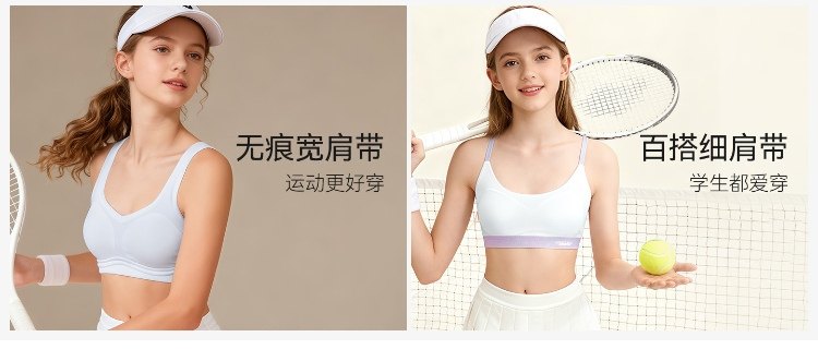 Silk Bra for Girls in the Second Stage of Development, Thin Strap Bra, Girls' A-Class Fixed Cup Camisole