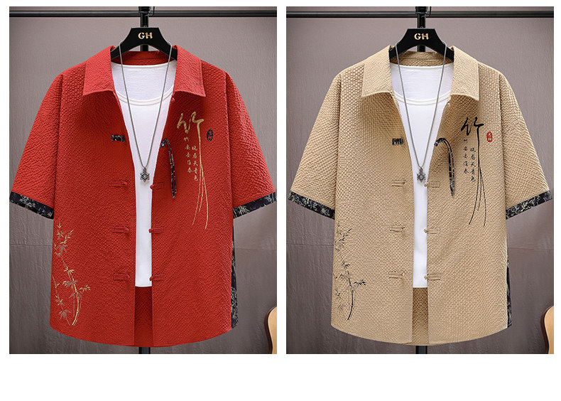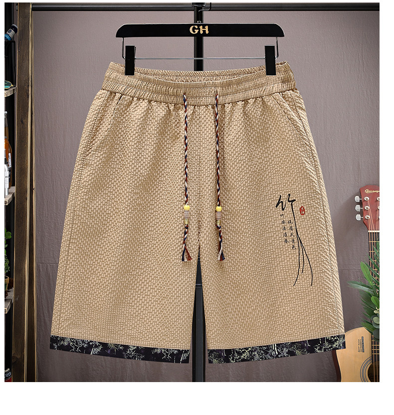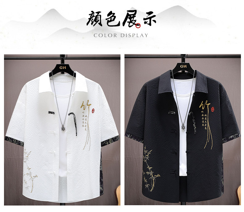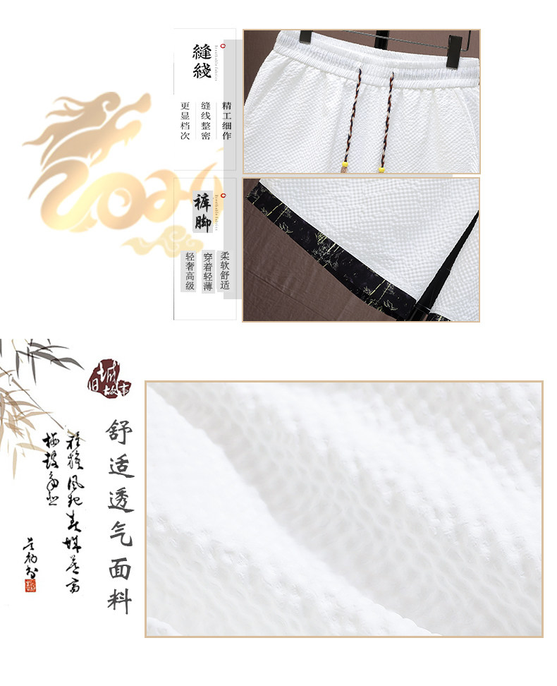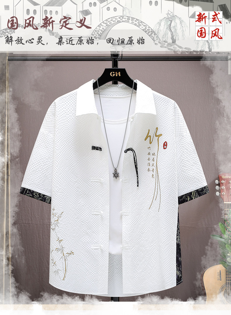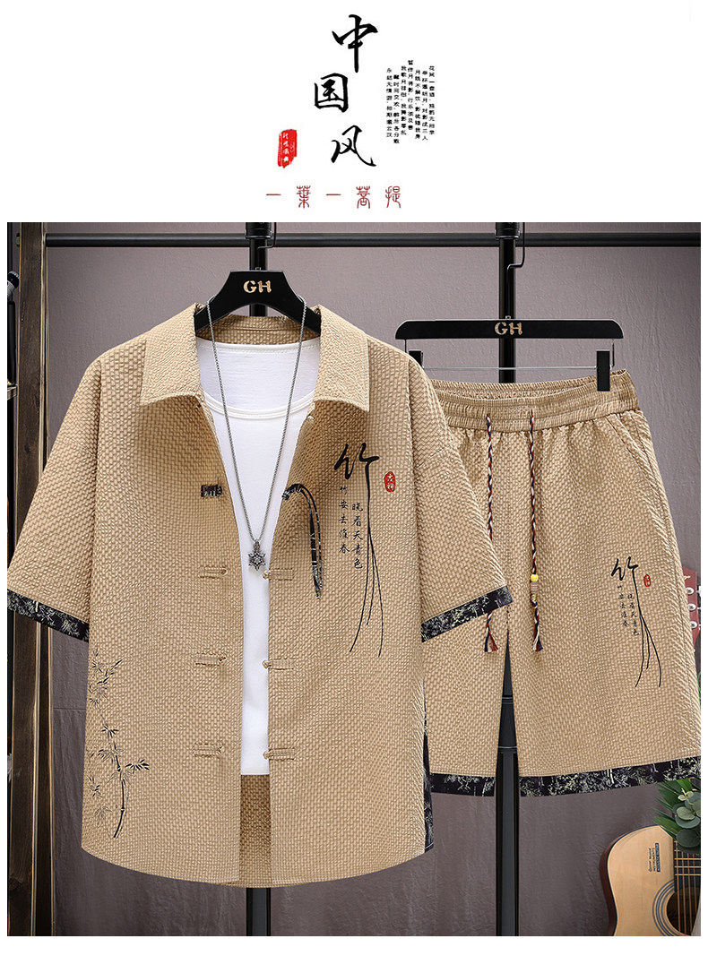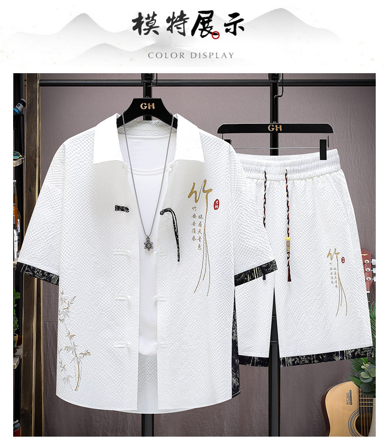 Summer Ice Silk Suit for Men, National Trend Style, Thin, Quick-Drying, New Chinese Style Short-Sleeved Shirt and Shorts, Fashionable and Casual Two-Piece Set
