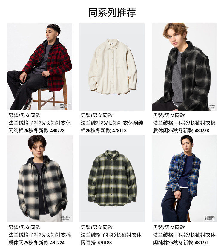 Uniqlo Men's and Women's Flannel Plaid Shirt Long-Sleeved Shirt Thin Jacket 481225