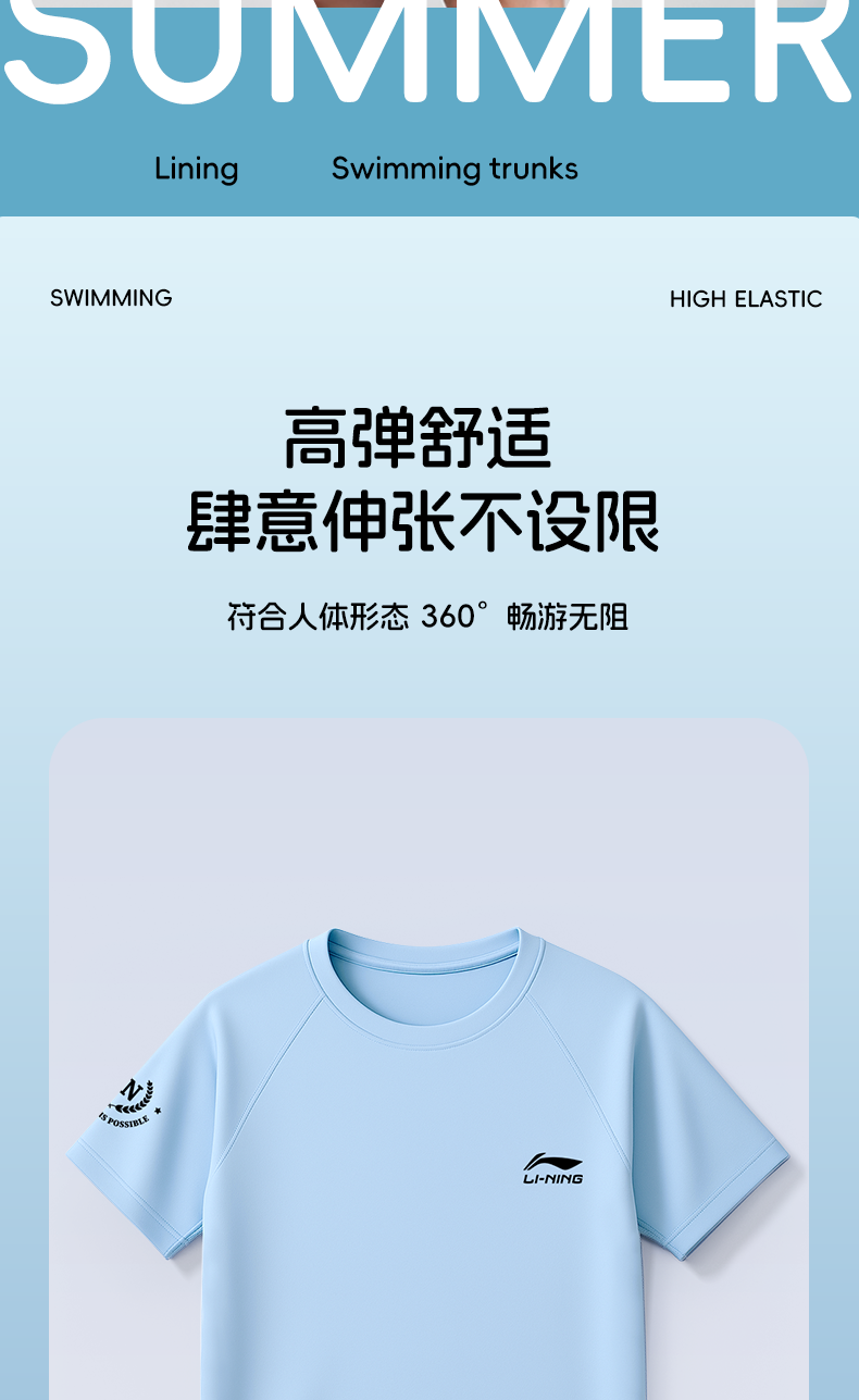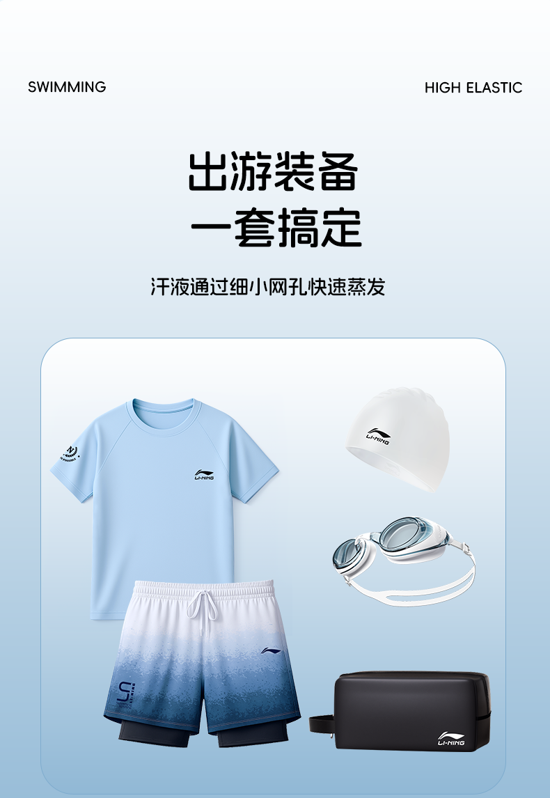 Li-Ning Men's Swimwear Set, Men's Anti-Embarrassment Beach Vacation Swim Trunks, Boys' Youth Swimming Shorts