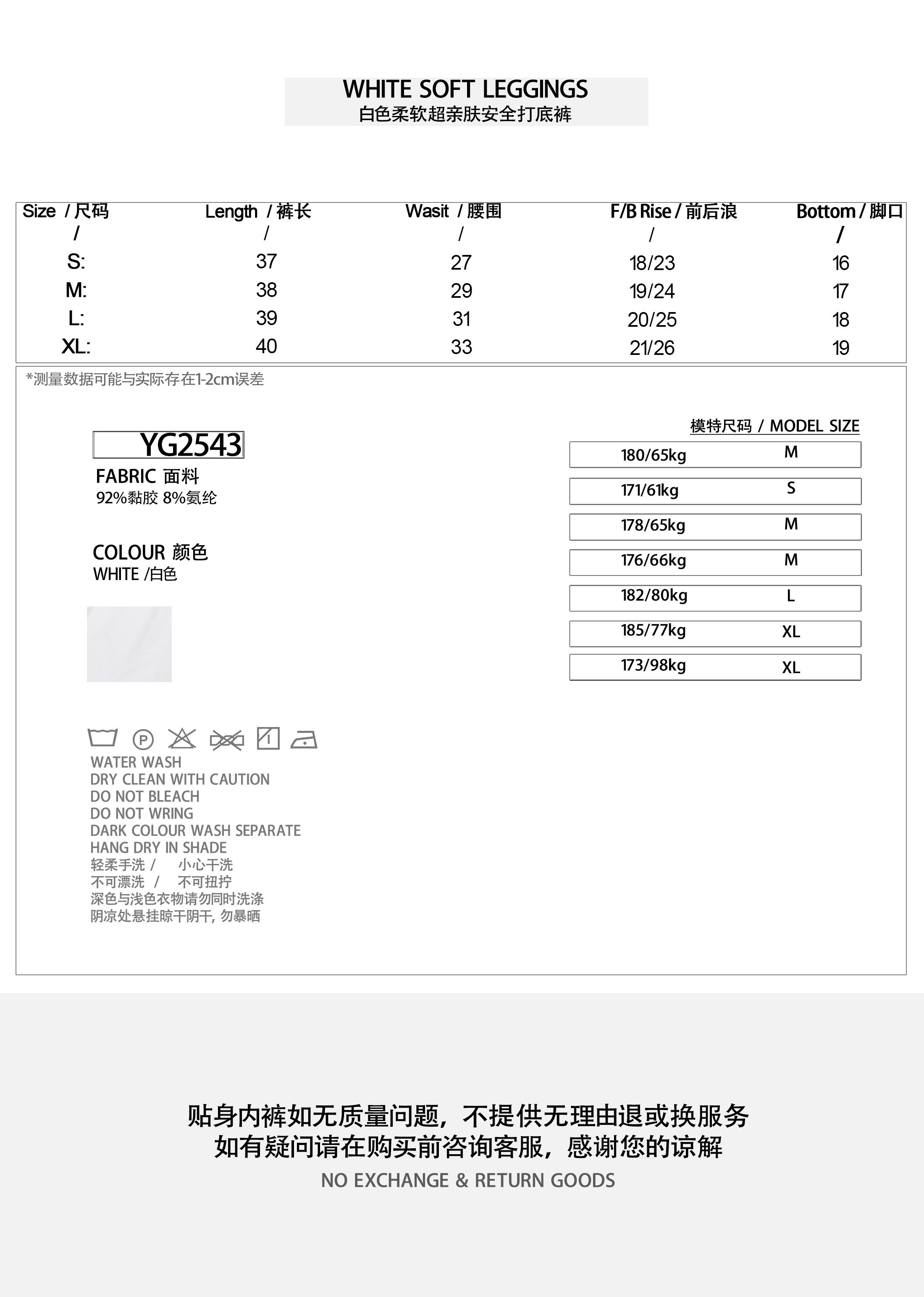 Yongiant White Soft and Skin-Friendly Safety Leggings 2025Ss Yg2543