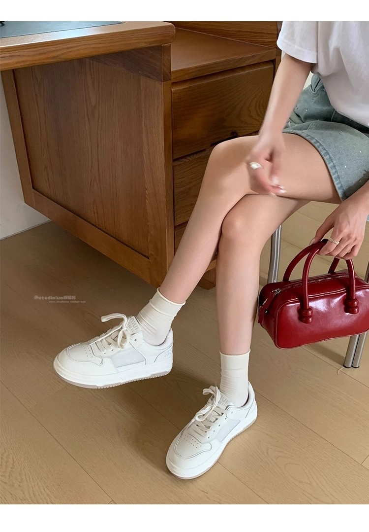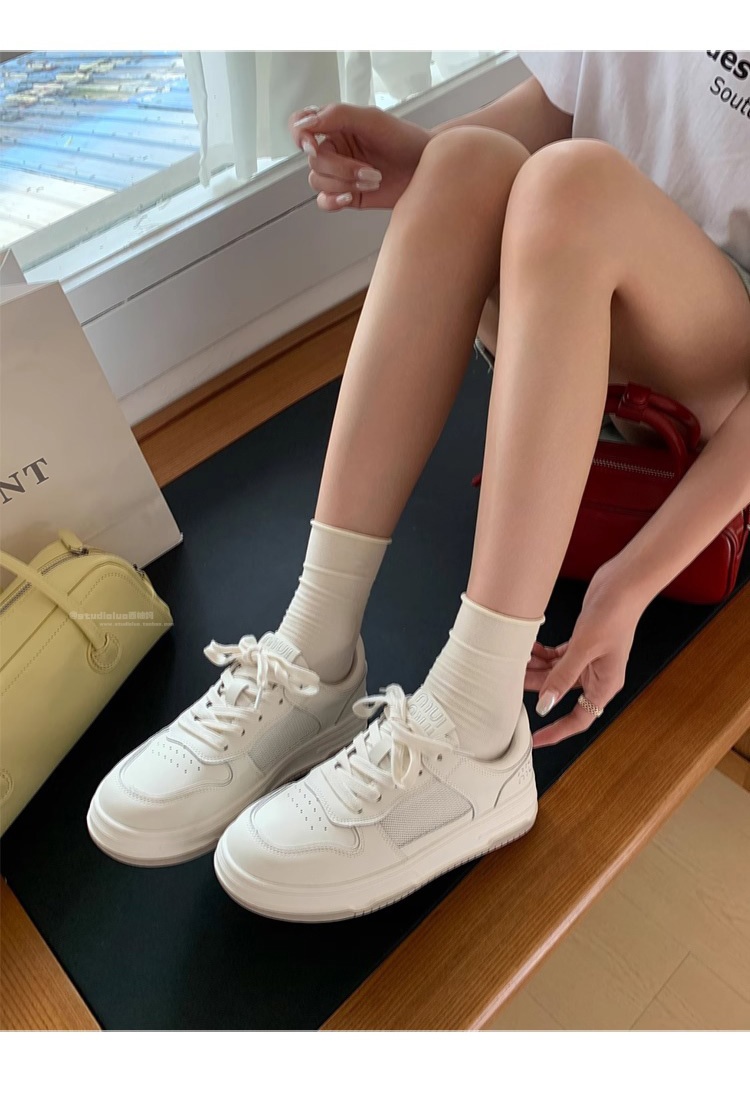 Hong Kong Lightweight Comfortable Thick-Soled White Sneakers for Women 2025 Summer New Trendy Breathable Genuine Leather Stylish Casual Sneakers