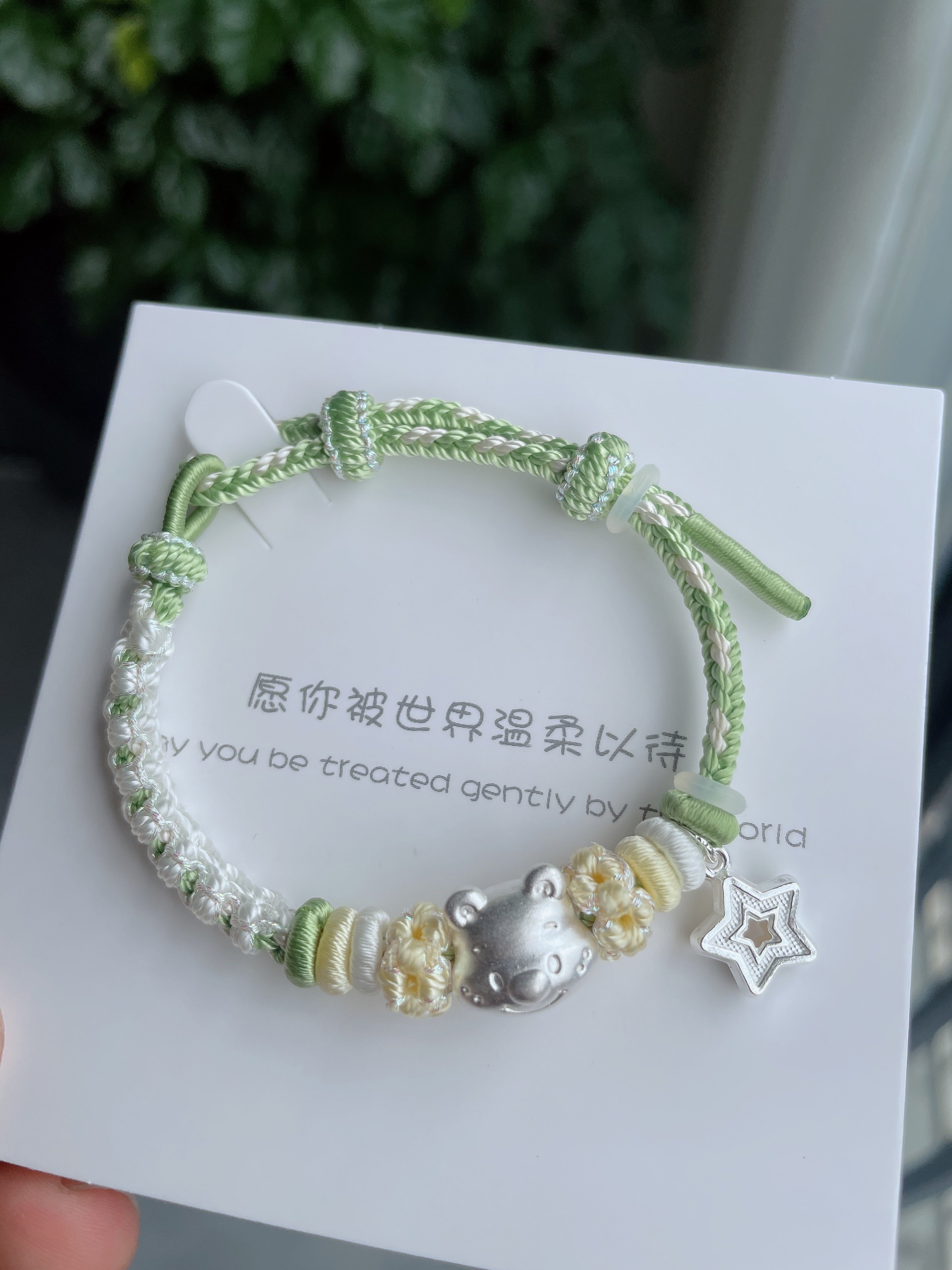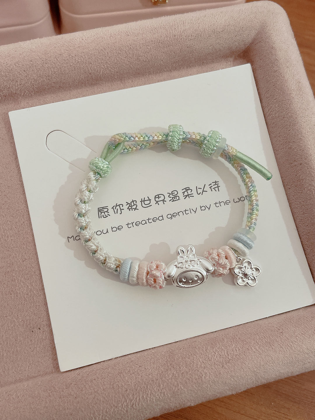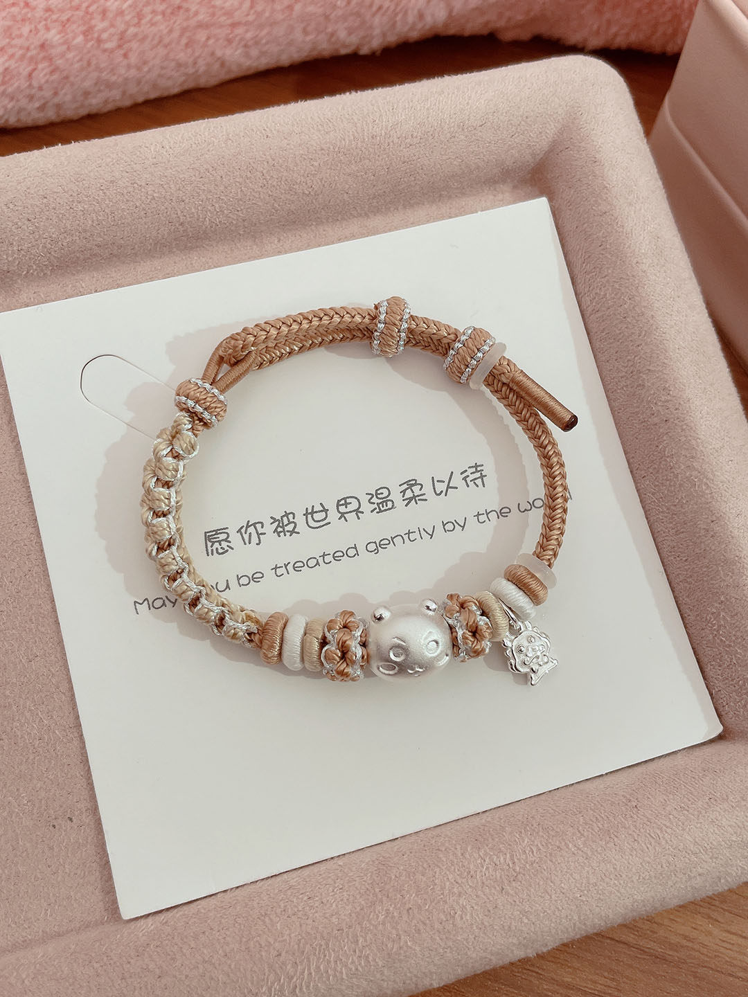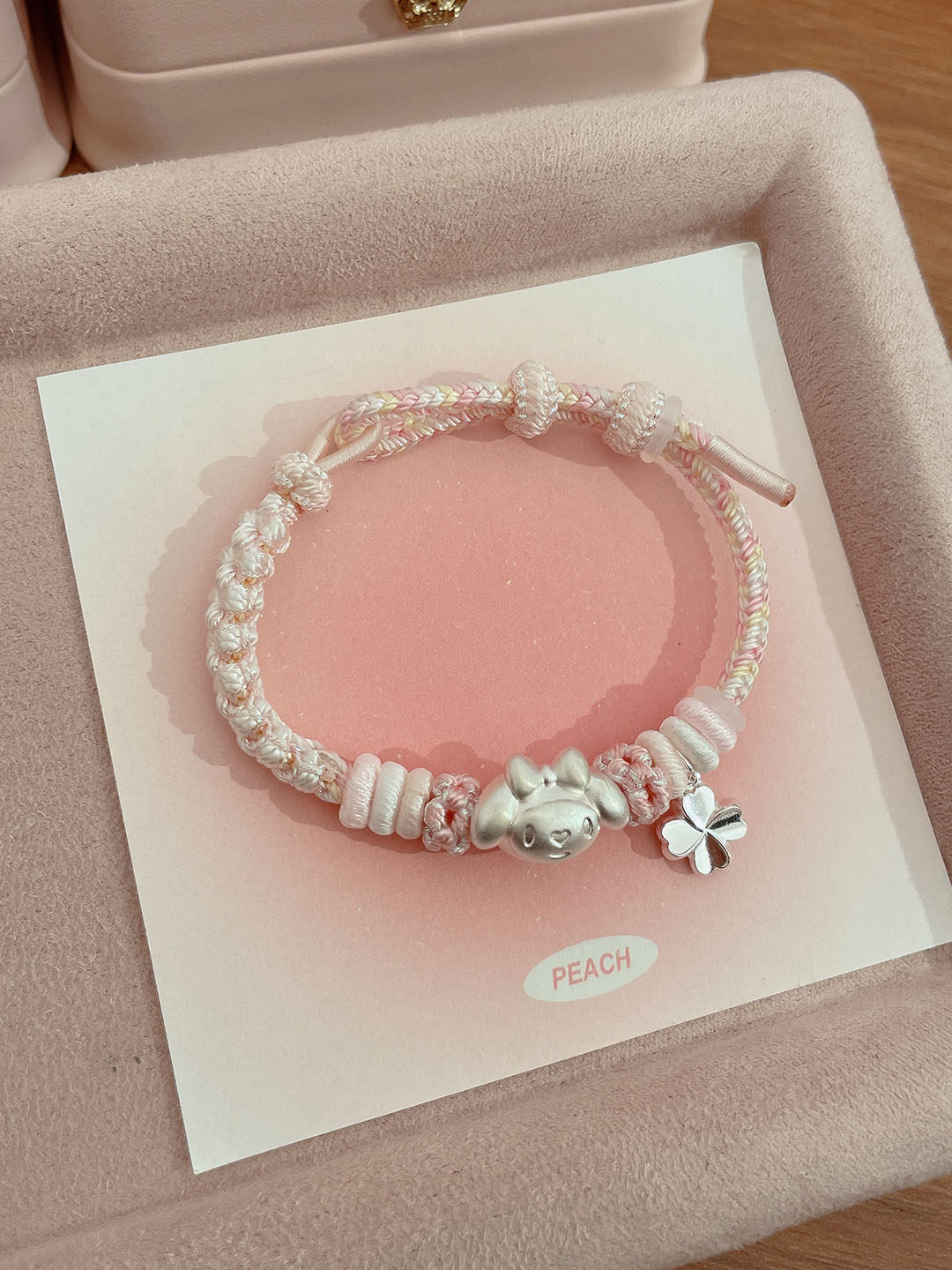 Pure Silver 999 Peach Blossom Knot Bracelet, Pure Silver Kitty Kirby Star Bracelet, Hand-Woven Rope, Gift for Children and Girlfriends