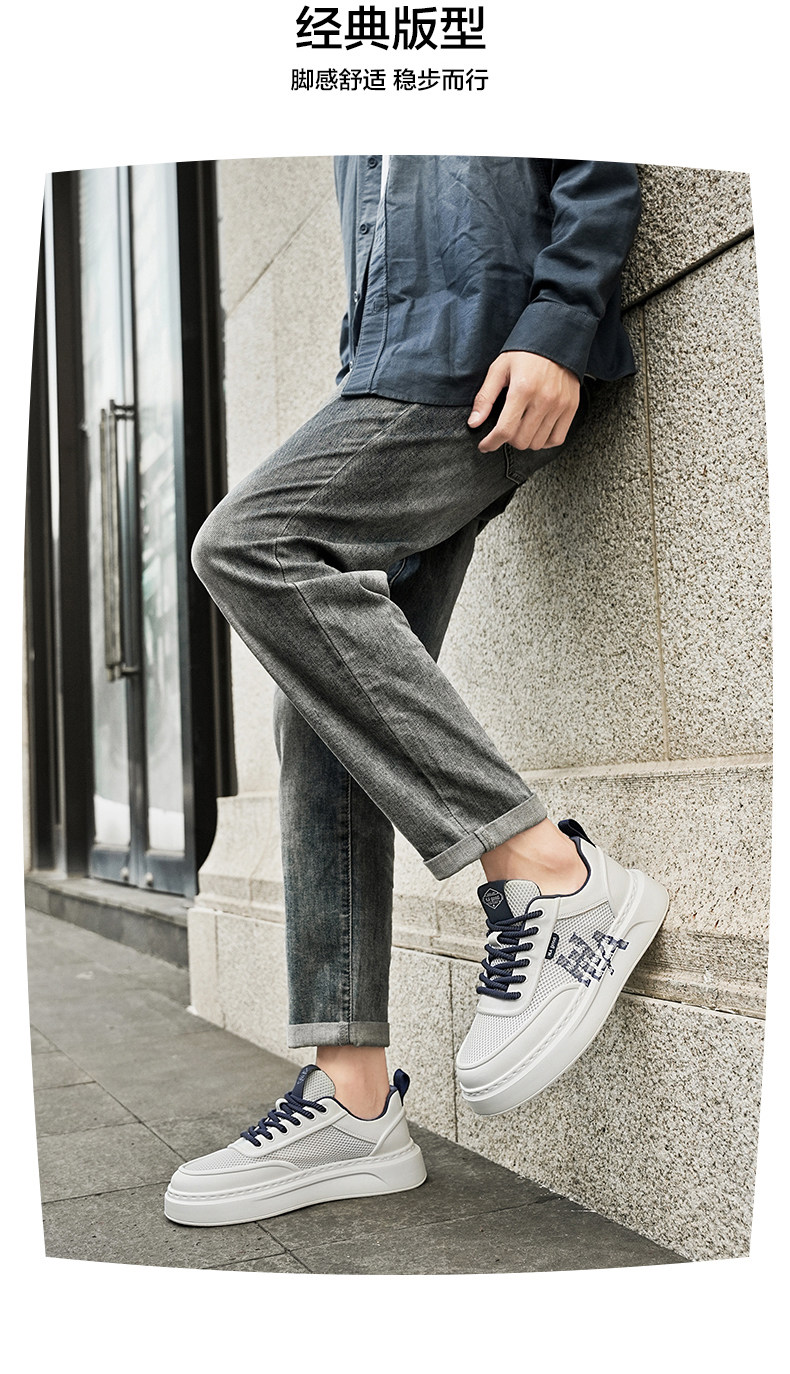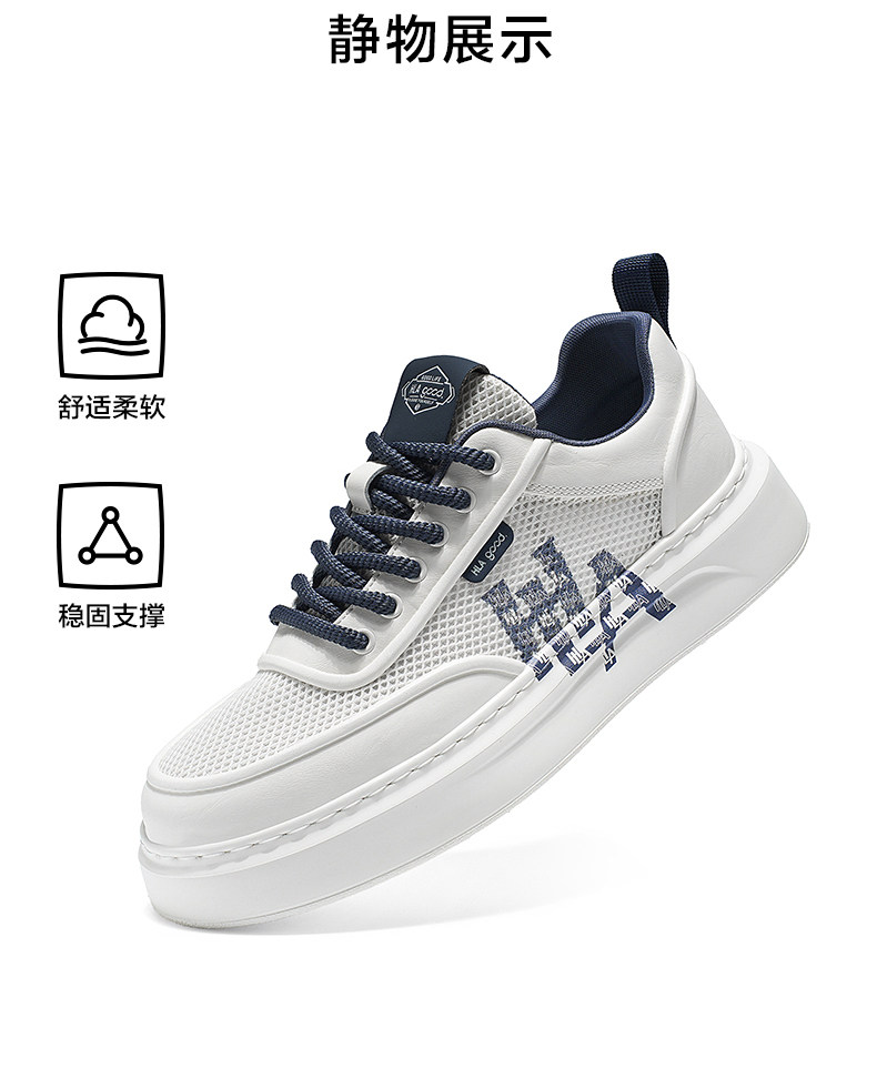 Heilan Home Men's Shoes 2026 New Spring, Autumn, and Summer Mesh Breathable White Shoes Men's Thick-Soled Height-Increasing Casual Sneakers