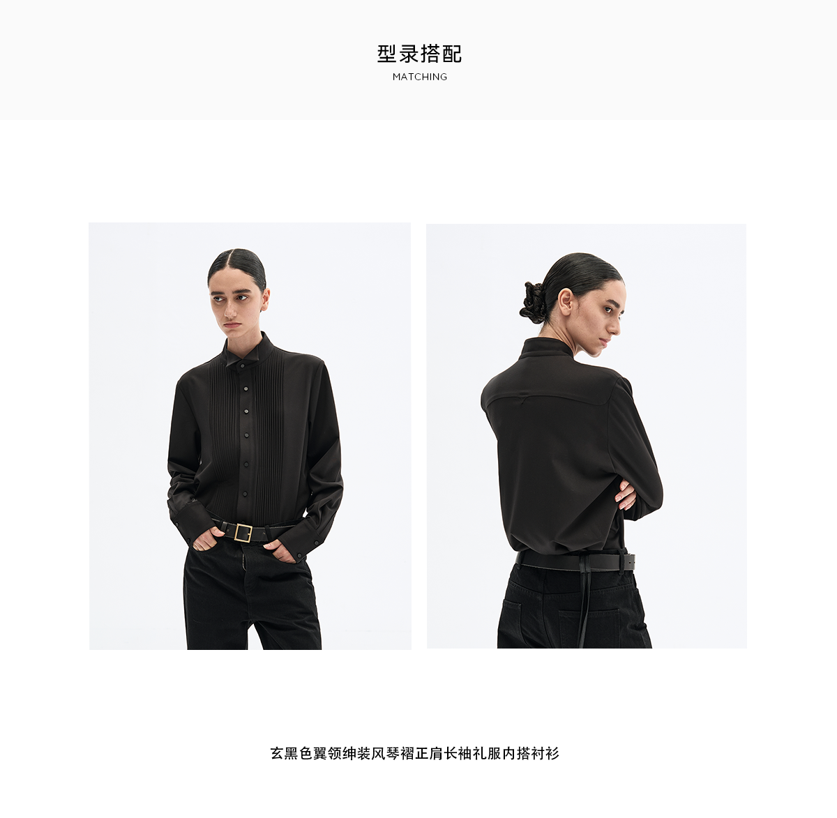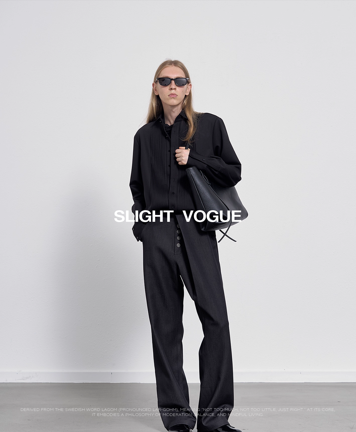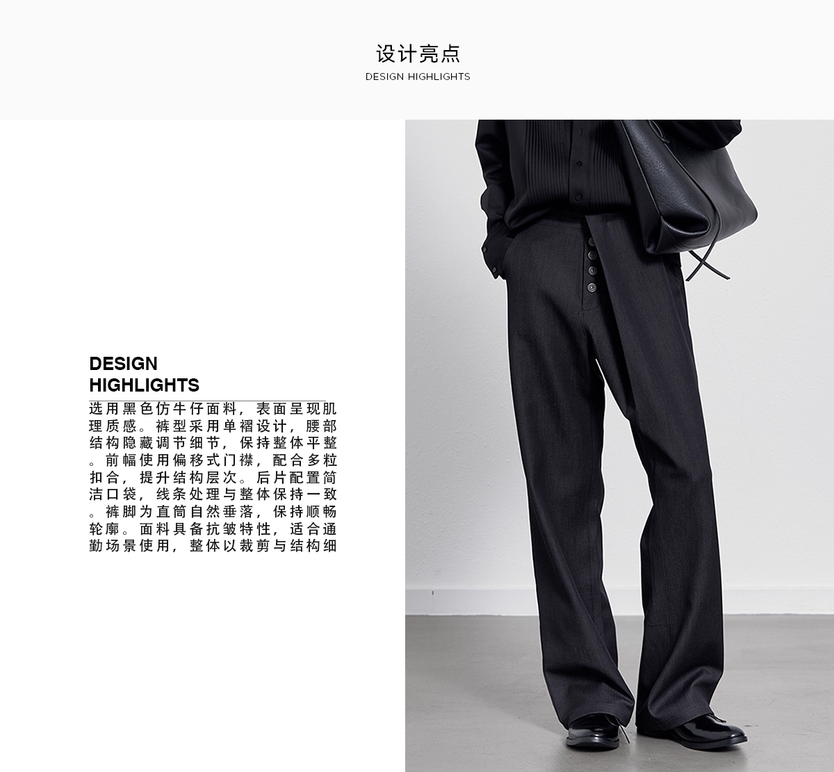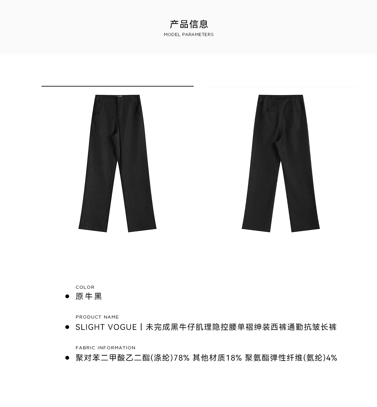 Slight Vogue丨Unfinished Black Denim Texture, Hidden Waist Control, Single Pleat Dress Pants, Wrinkle-Resistant Commuter Trousers