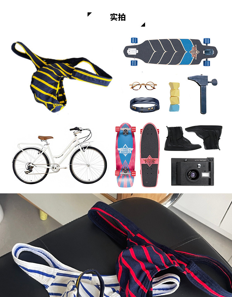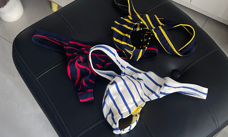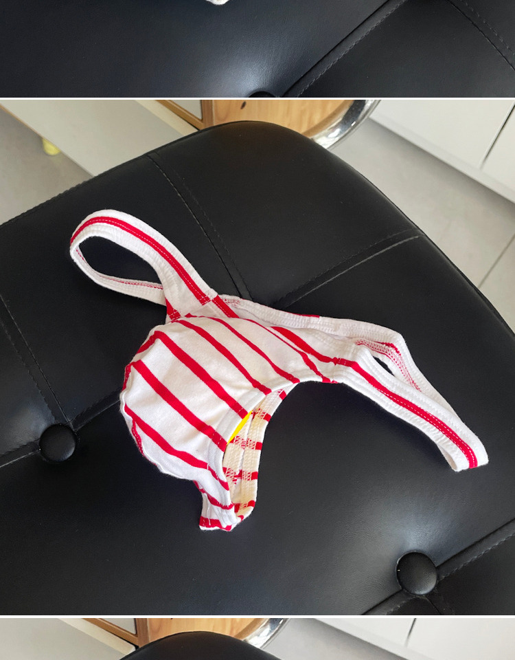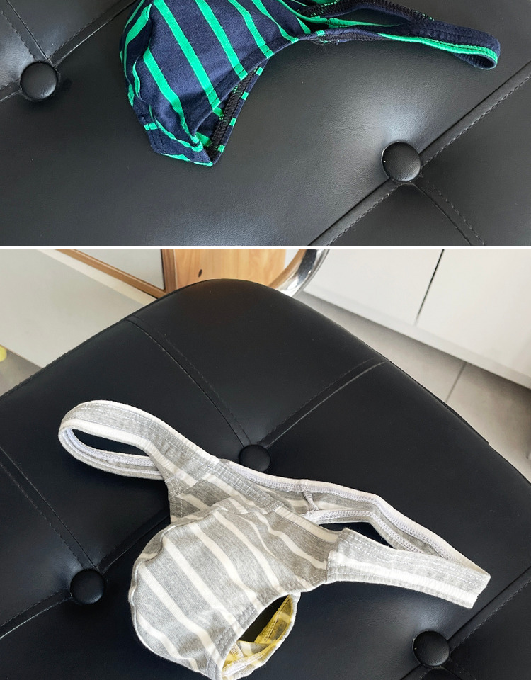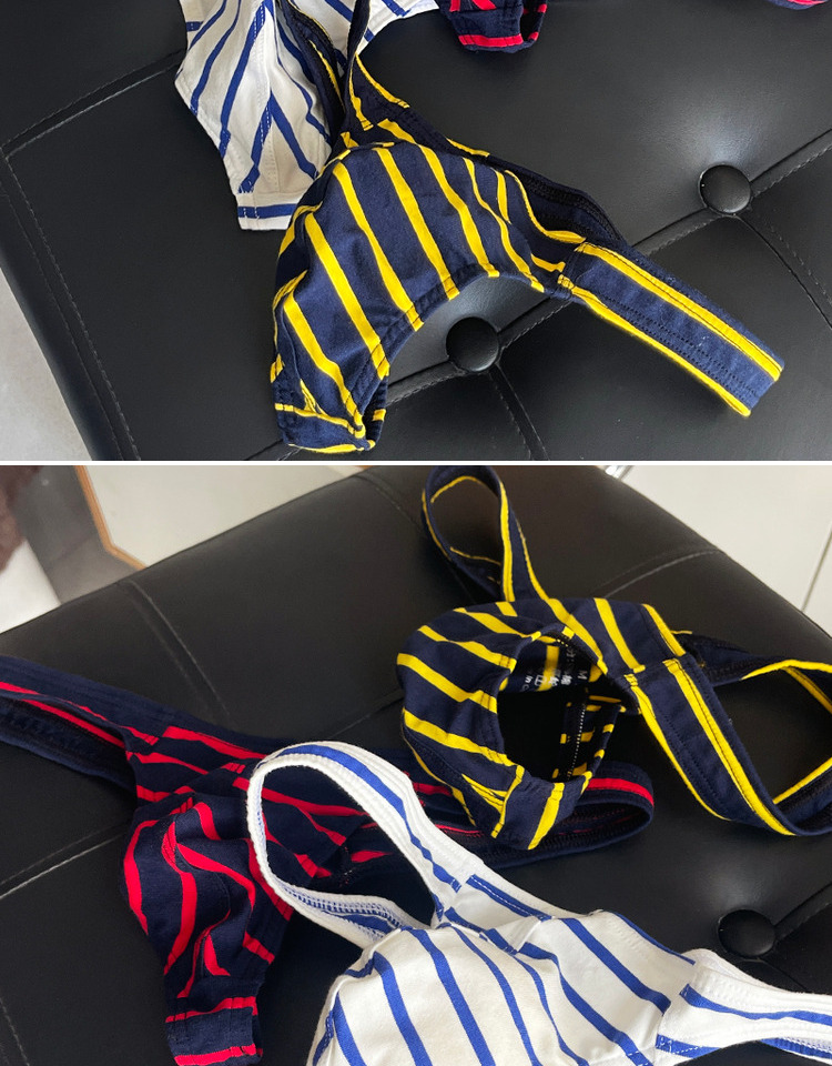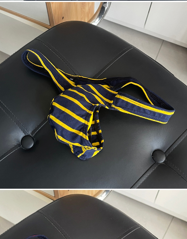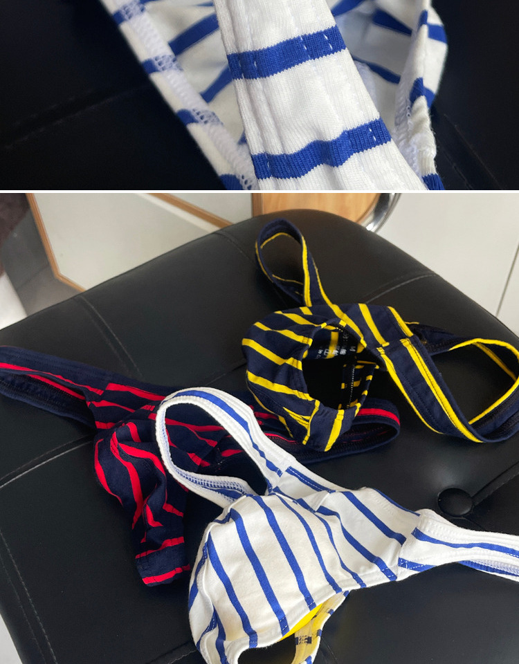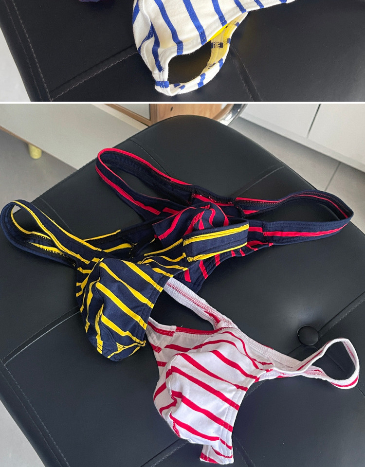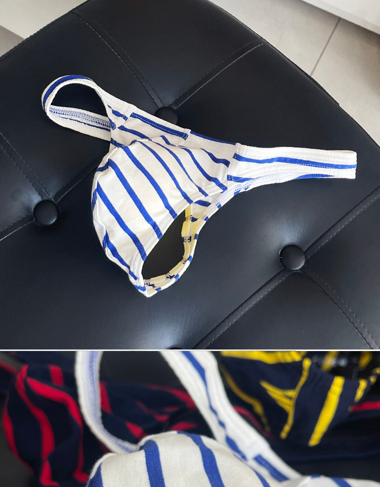 3-Pack of Young Men's Sexy Cotton Striped Thong Underwear, Men's G-String Sports Low-Rise Briefs