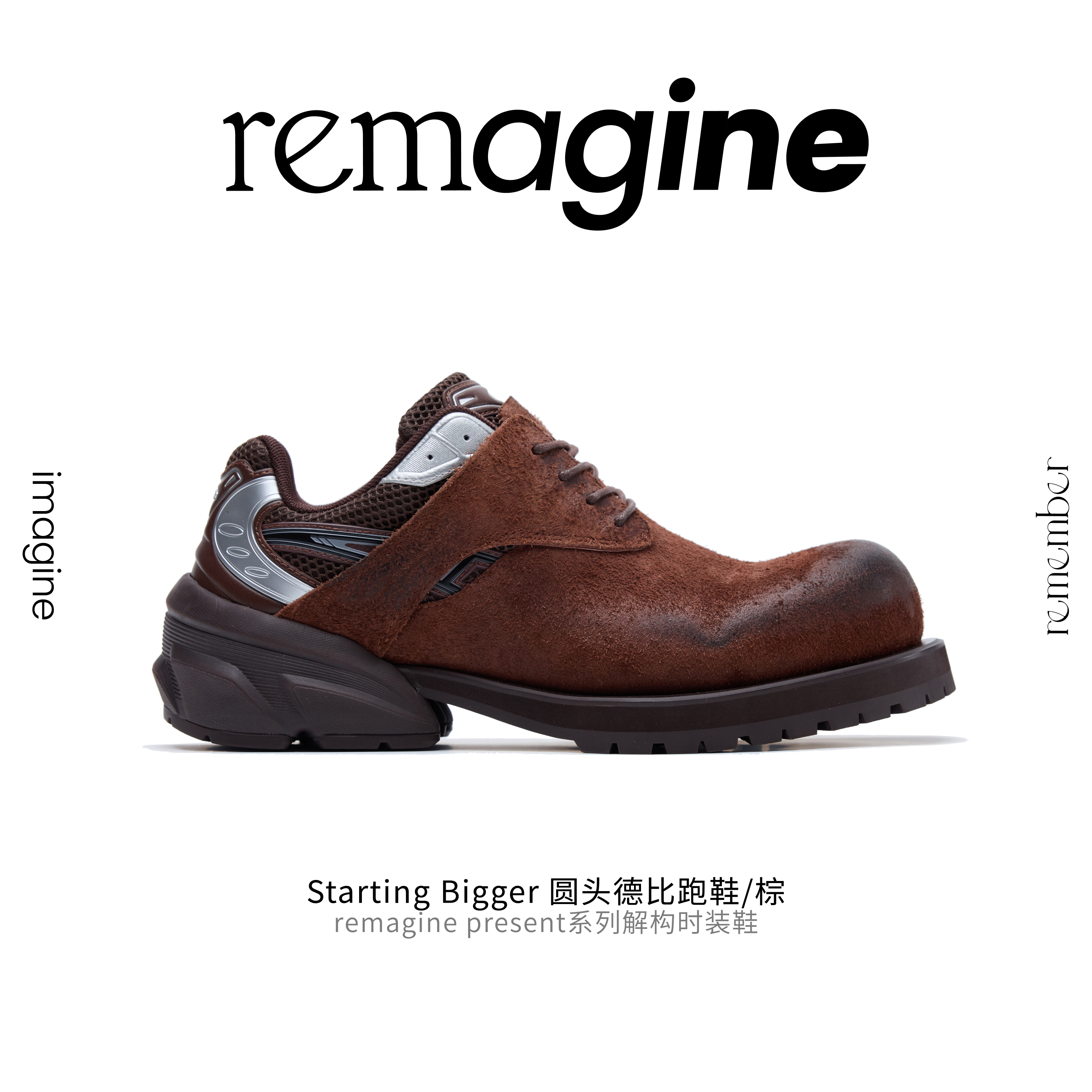 Remagine Starting Bigger - Brown Round-Toe Derby Running Shoes