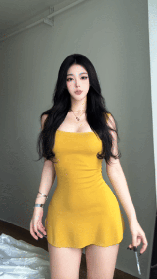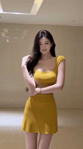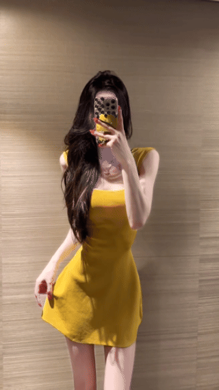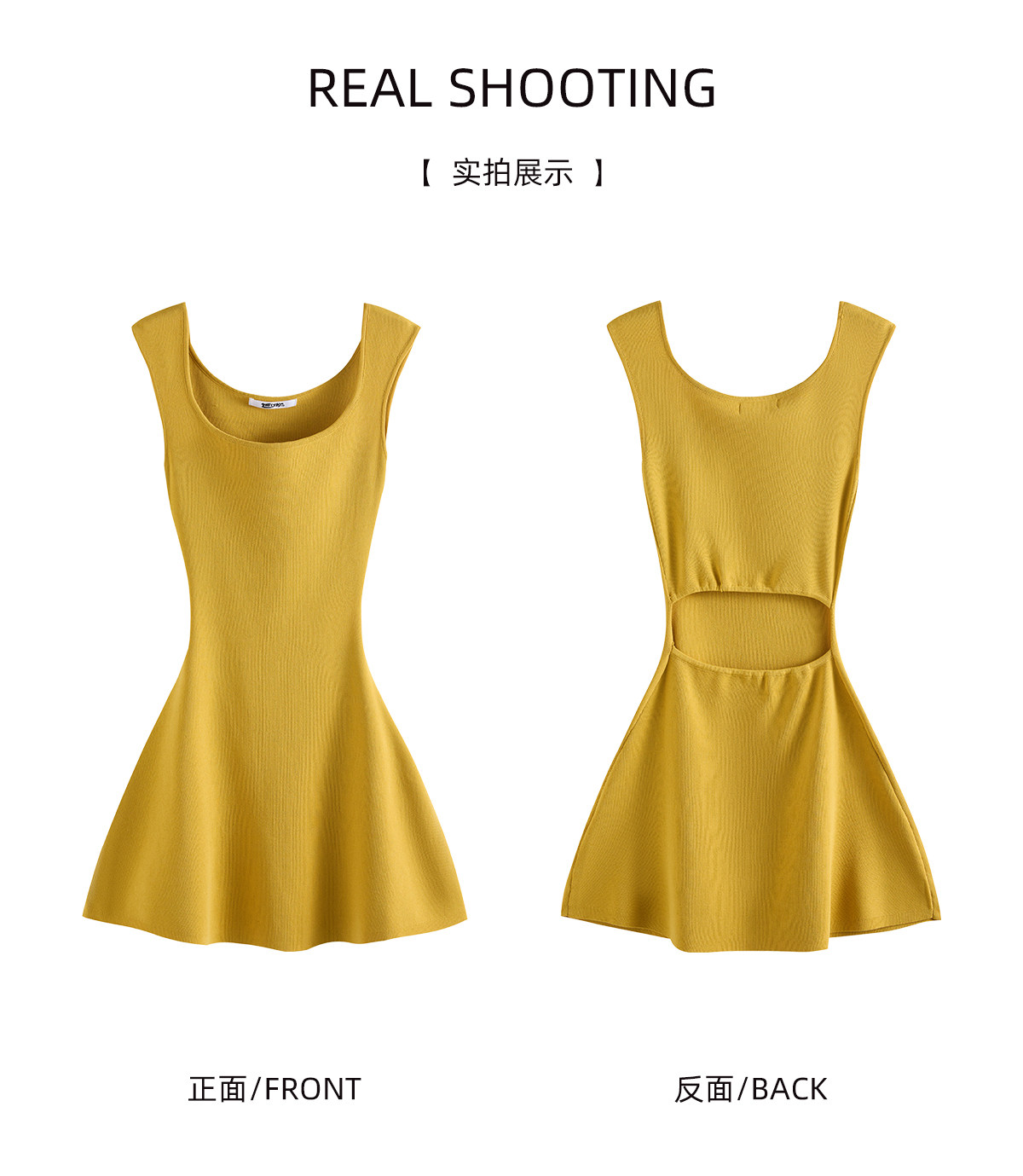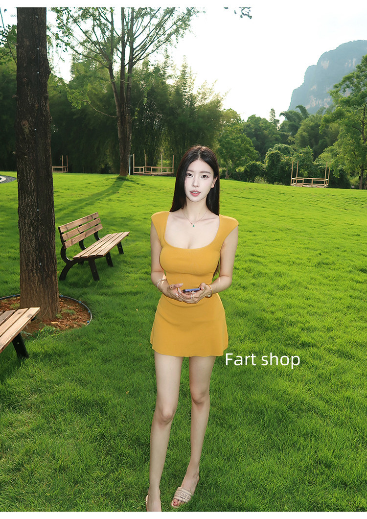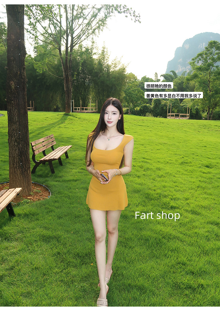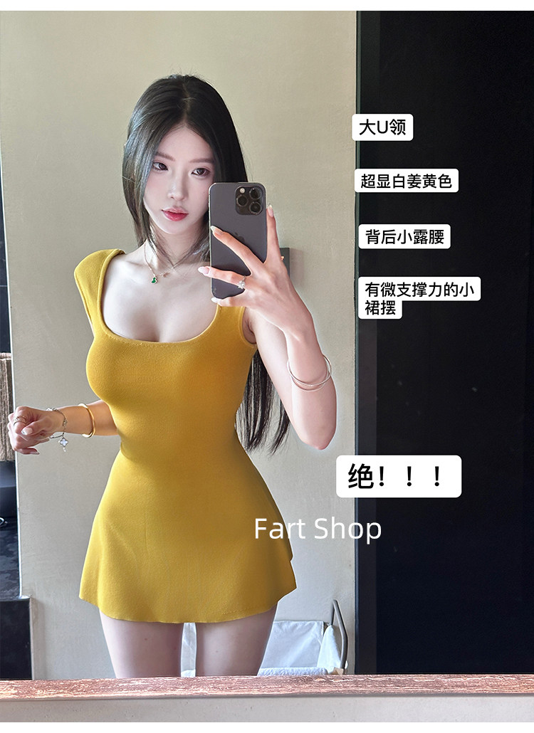 【Fart Shop】Turmeric Pure Elegance Style U-Neck Sleeveless Slim Fit American Sweet and Spicy Waist-Cinching Dress