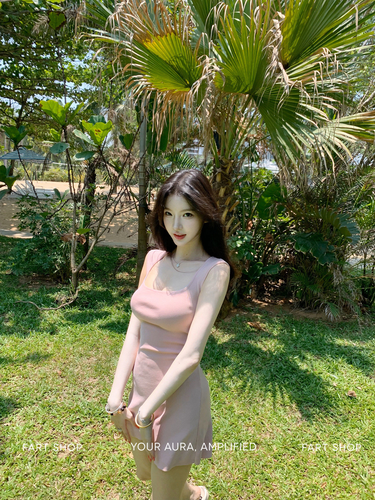 【Fart Shop】Ginger Yellow Pure and Alluring Style Dress, Slim-Fitting and Flattering, American Sweet and Spicy Cinched Waist Dress