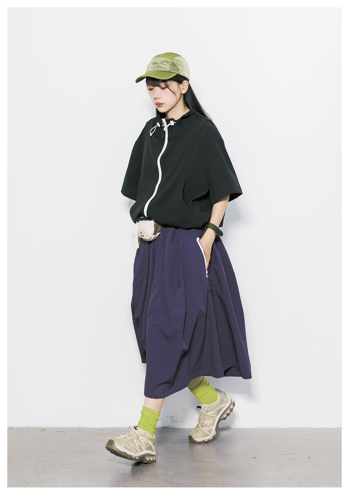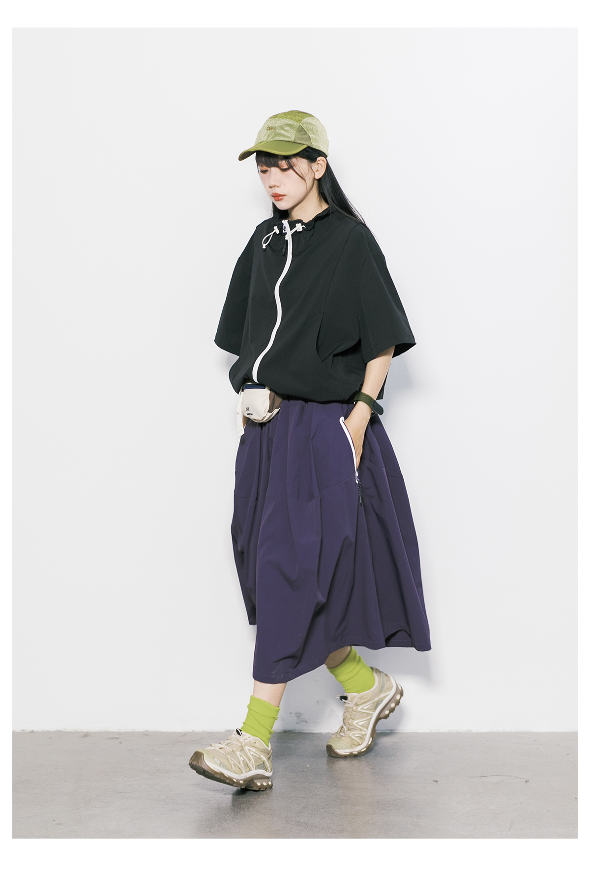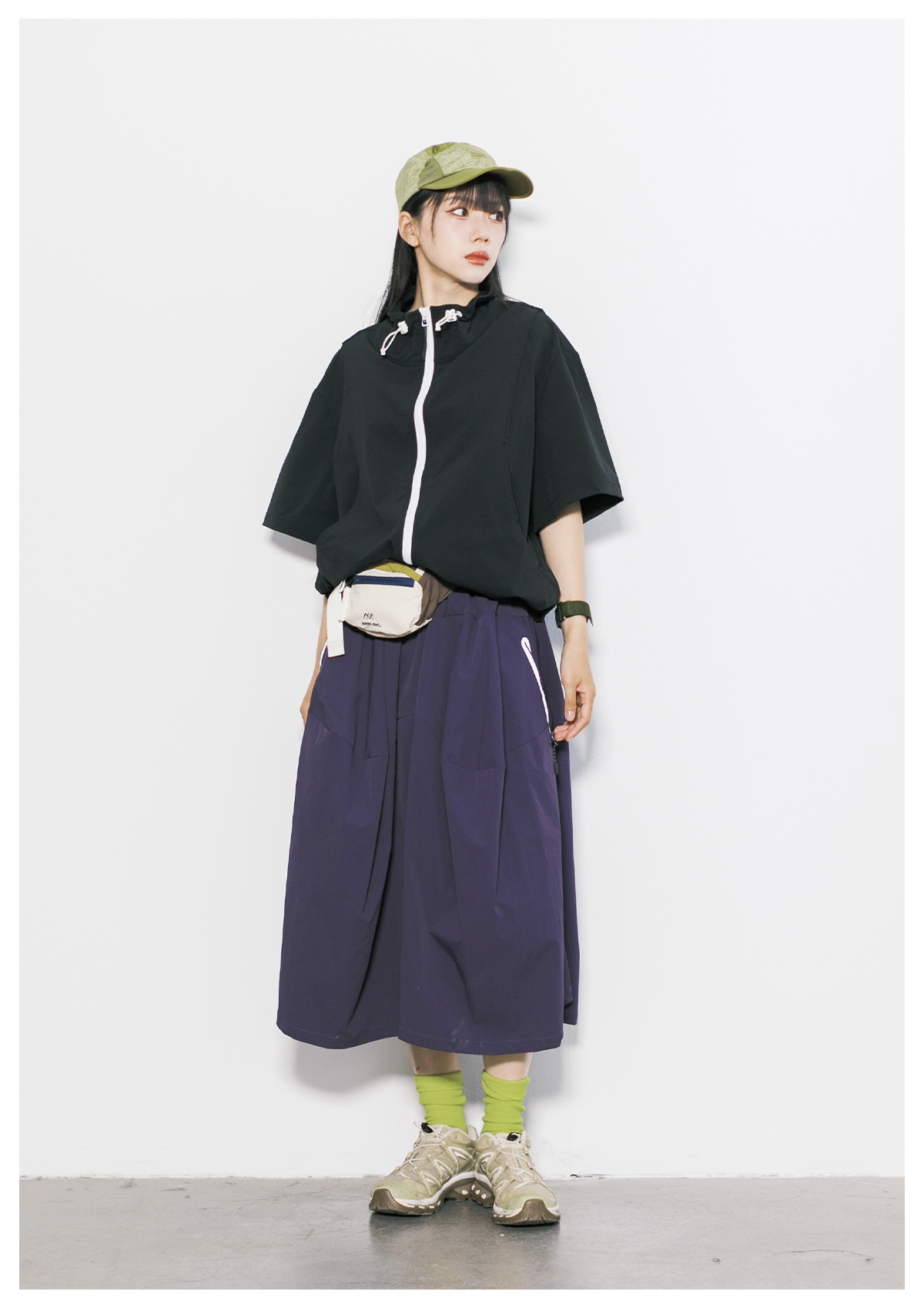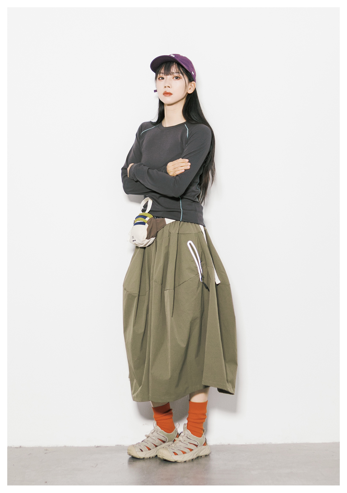Rcdb Mountain-Style Outdoor Quick-Drying Workwear Half-Skirt for Women, Summer Loose-Fitting Sports Flared Umbrella Skirt, A-Line Long Skirt
