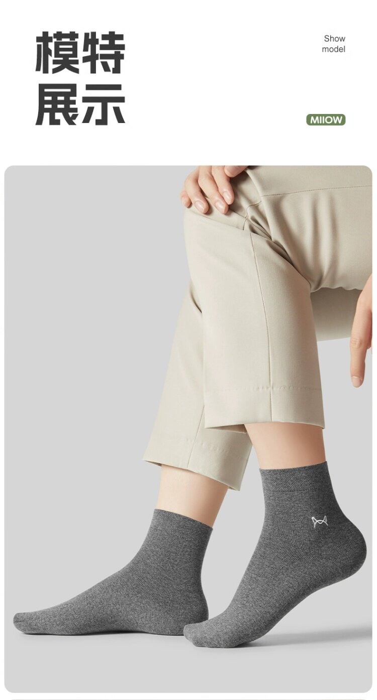 Catman Men's Socks Pure Cotton Mid-Calf Socks Sweat-Absorbent and Odor-Resistant 7A Antibacterial Men's Style 2026 New Popular Summer Thin Style