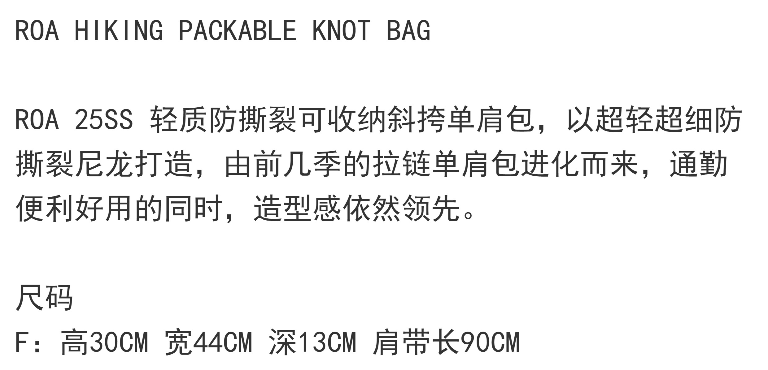 In Stock ROA HIKING PACKABLE KNOT BAG Lightweight Storage Crossbody BAG 25SS