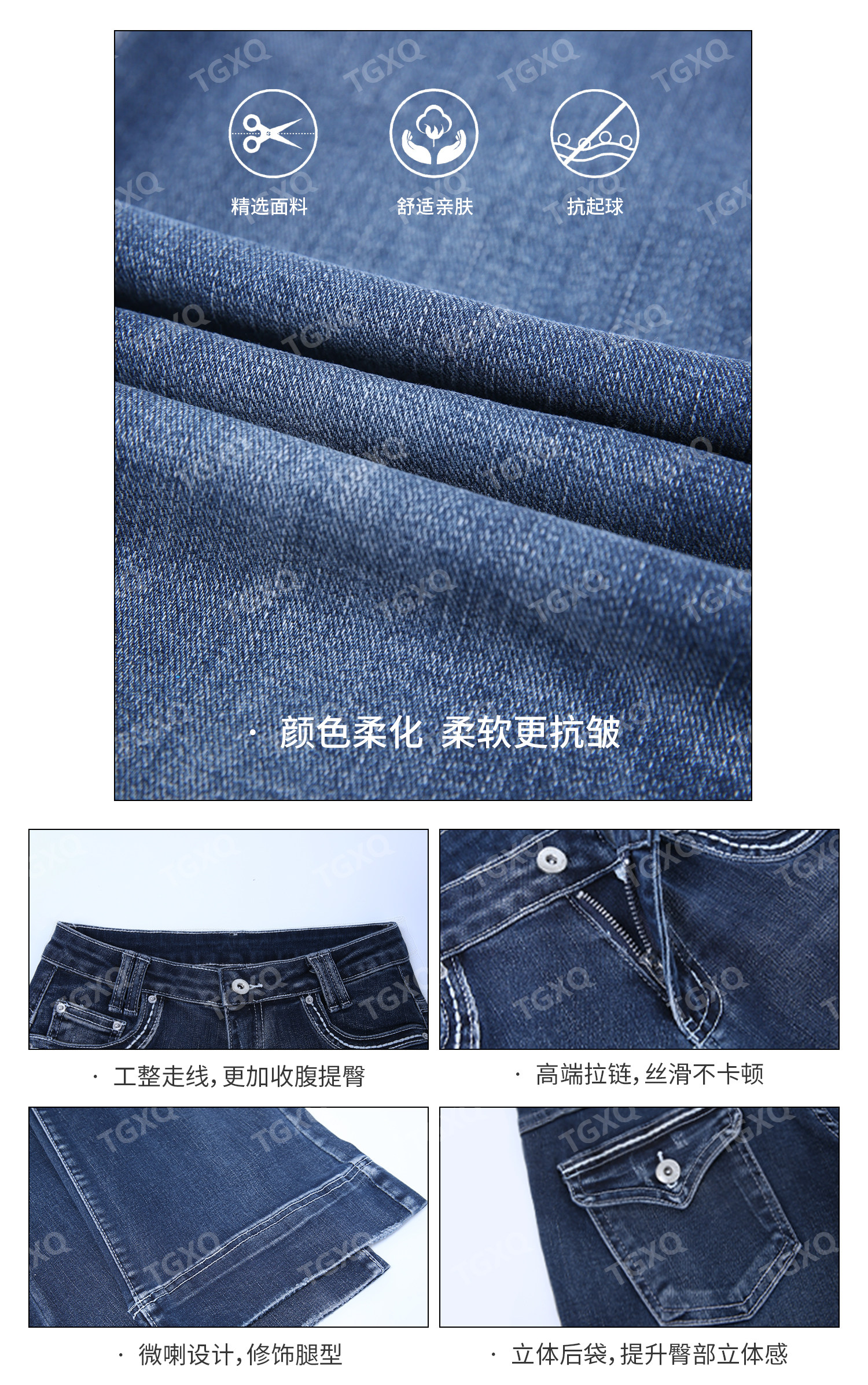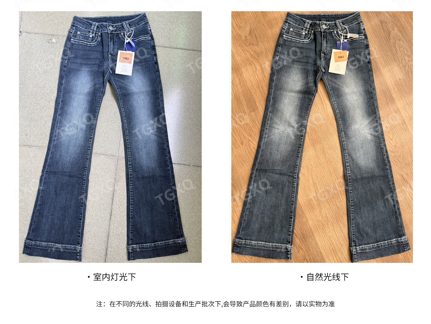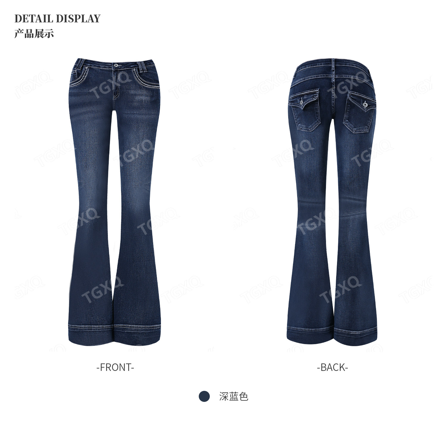 Tgxq American-Style Women's Jeans 2026 New Vintage Washed Blue Floor-Length Slimming Hot Girl Stretchy Low-Waist Flared Pants