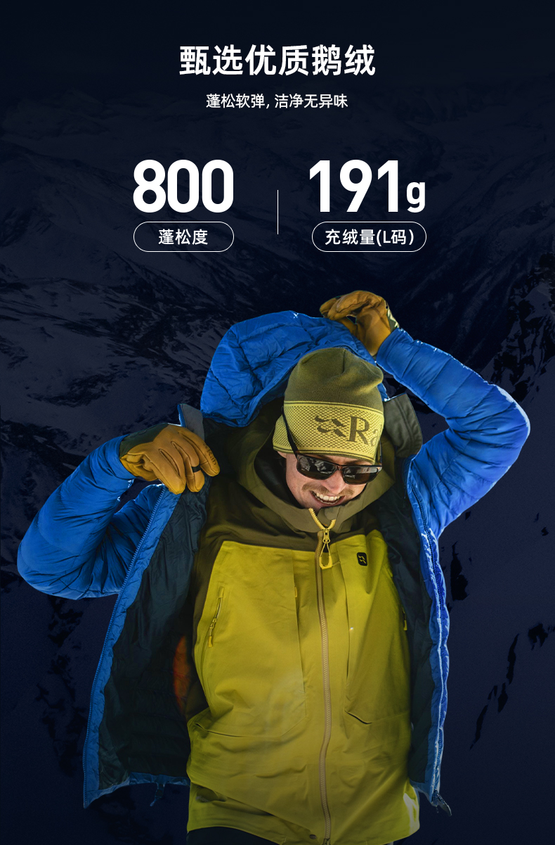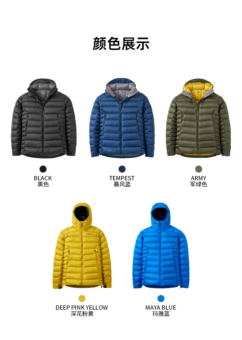 Rab Ruipo Electron Pro Autumn and Winter Men's 800 Fill Power Lightweight Warm Goose down Hooded down Jacket Qdb-81