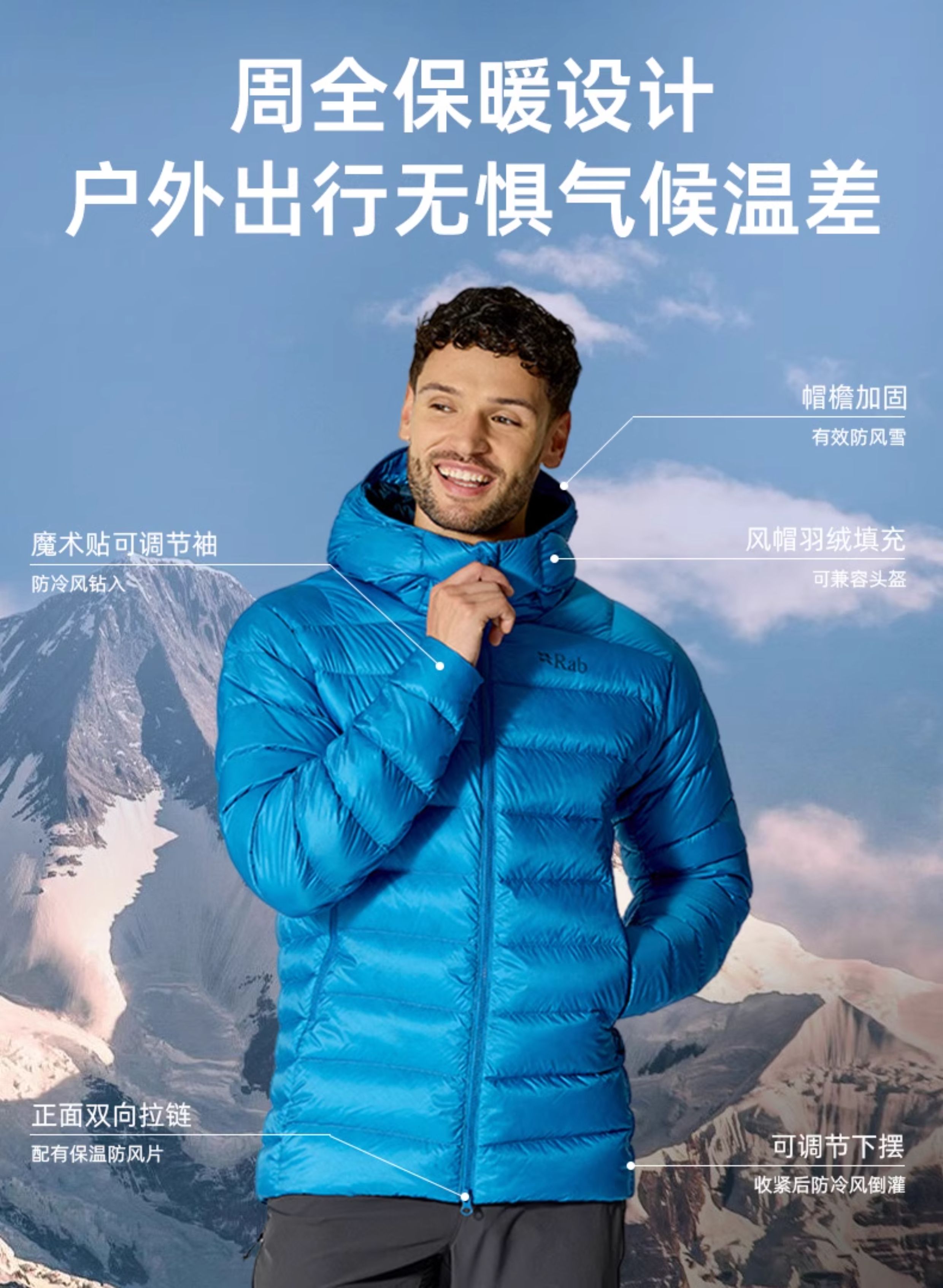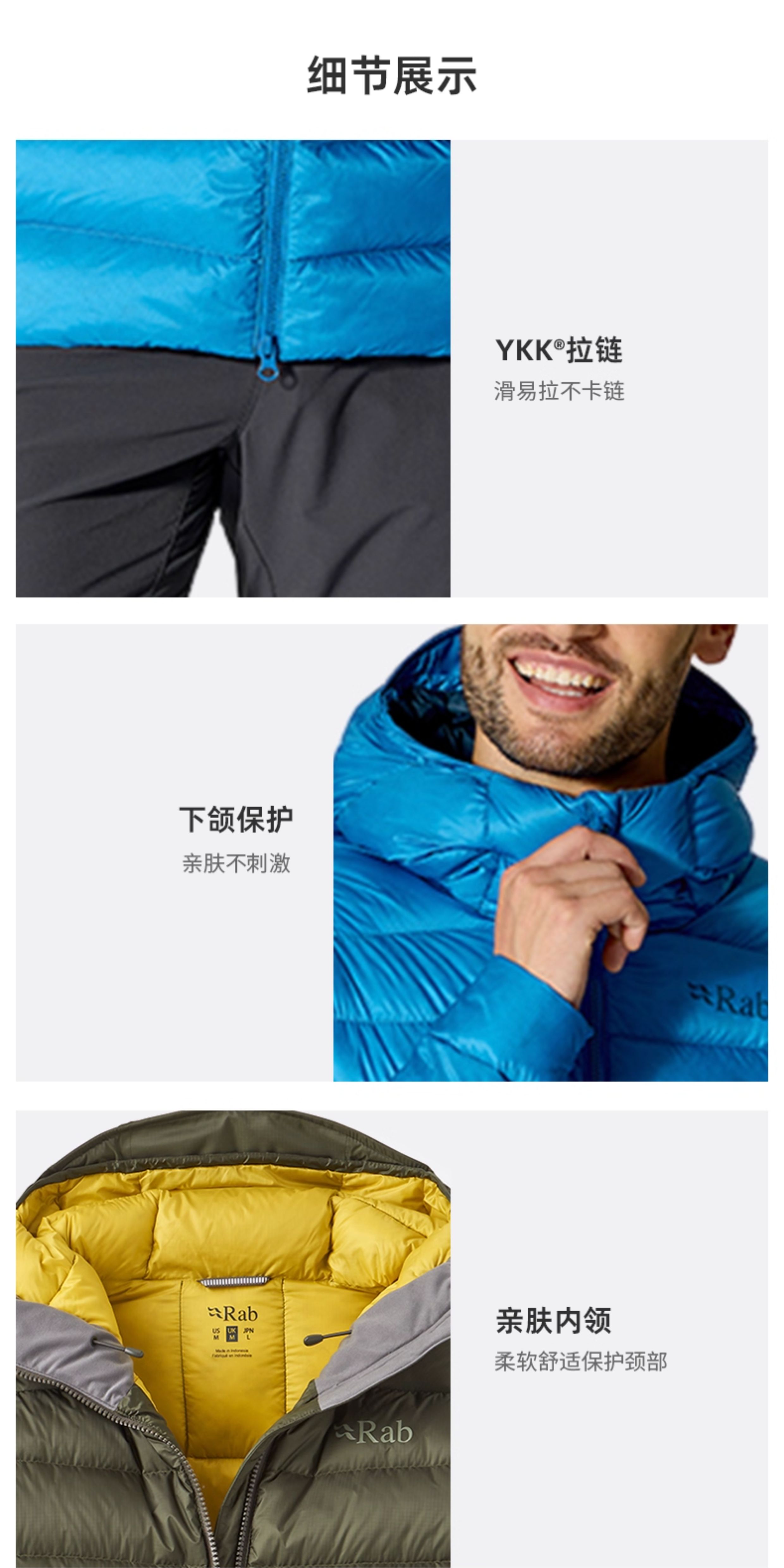 RAB Rui Po Electron Pro Fall and winter Men 800 canopy lightweight Heattech goose down hooded Down jacket QDB-81