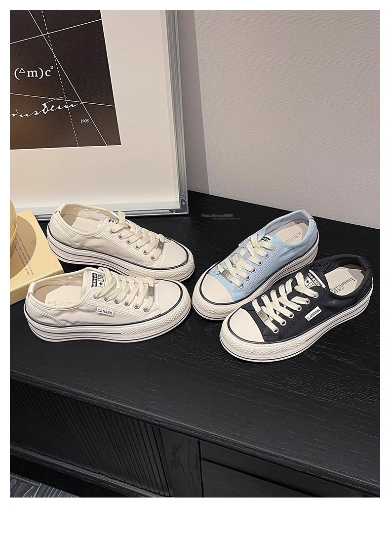 Hong Kong Niche Versatile Thick-Soled Canvas Shoes for Petite Women 2025 Summer New Casual Breathable Soft-Soled White Shoes