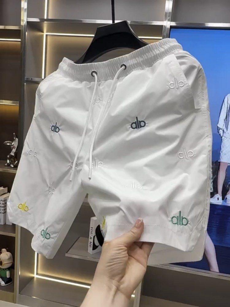 Trendy Brand Ice Silk Quick-Drying Shorts for Men, Suitable for Outdoor Wear in Summer 2026, New European Style Embroidered Loose-Fitting Five-Point Pants for Men