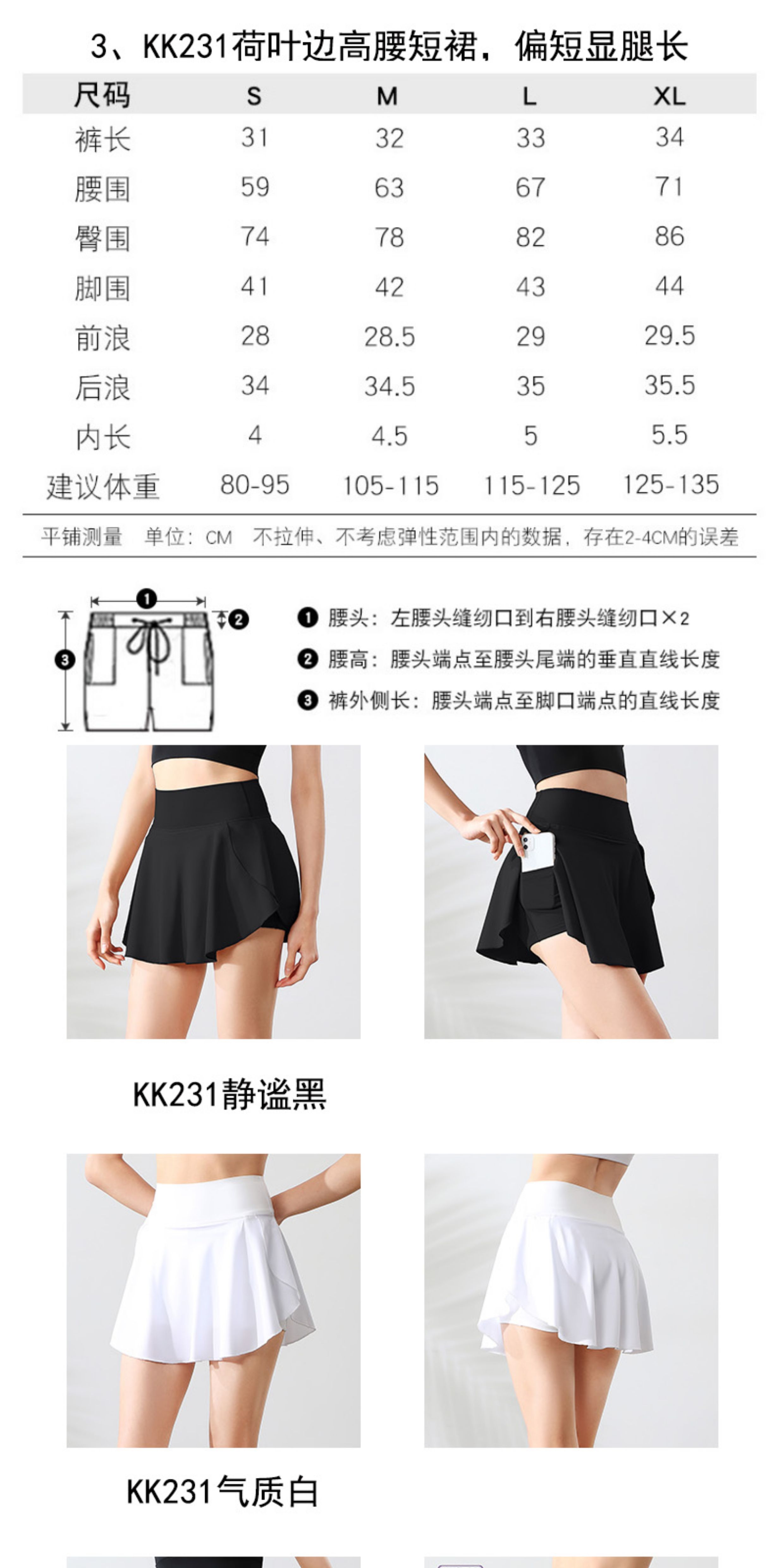 Sports Outdoor Short Skirt to Prevent Exposure, New Tennis Skirt, Yoga Quick-Drying A-Line High-Waisted Sun Protection Skirt with Lining