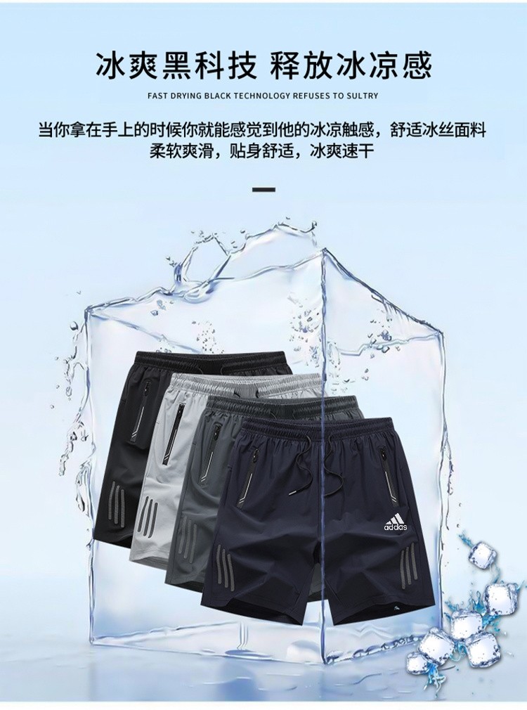 Official Genuine Summer New Men's Shorts Ice Silk Quick-Drying Loose Basketball Shorts Five-Point Shorts with Zipper Pockets Breathable