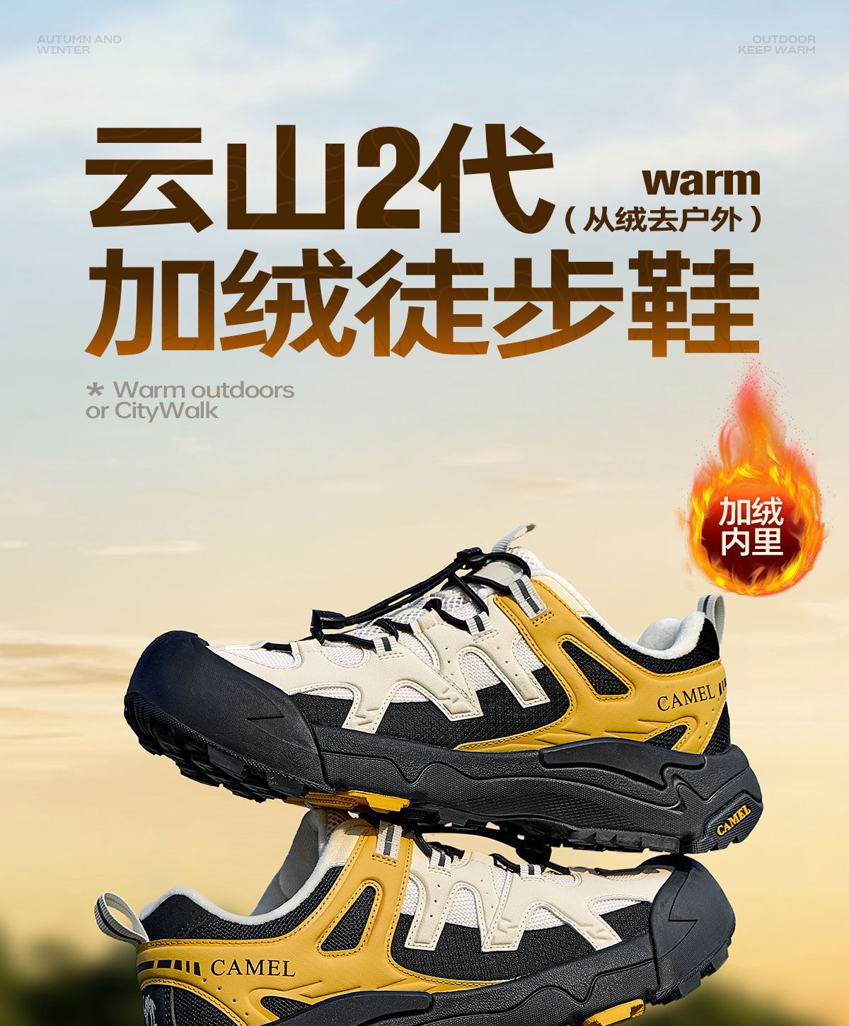 [Same Style as Wang Junkai] Camel Cloud Mountain 2Nd Generation Winter Men's Shoes, Warm Sports Hiking Shoes, Outdoor Trekking Shoes for Women