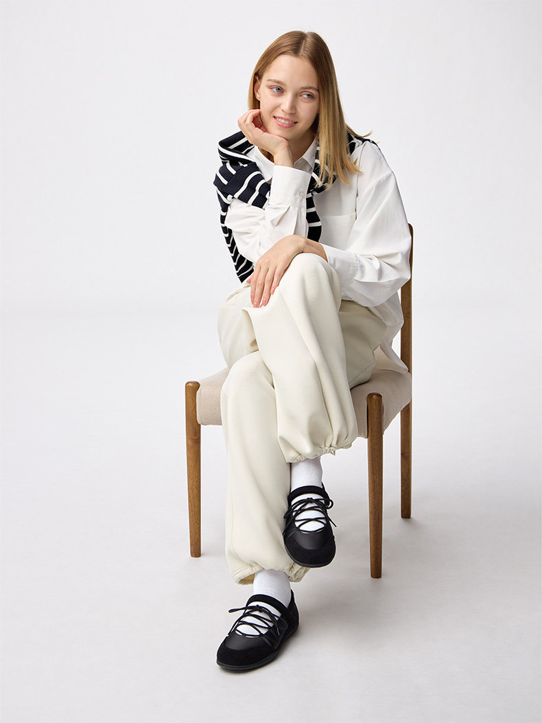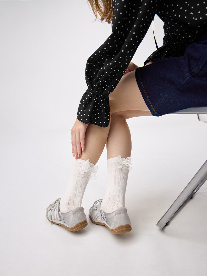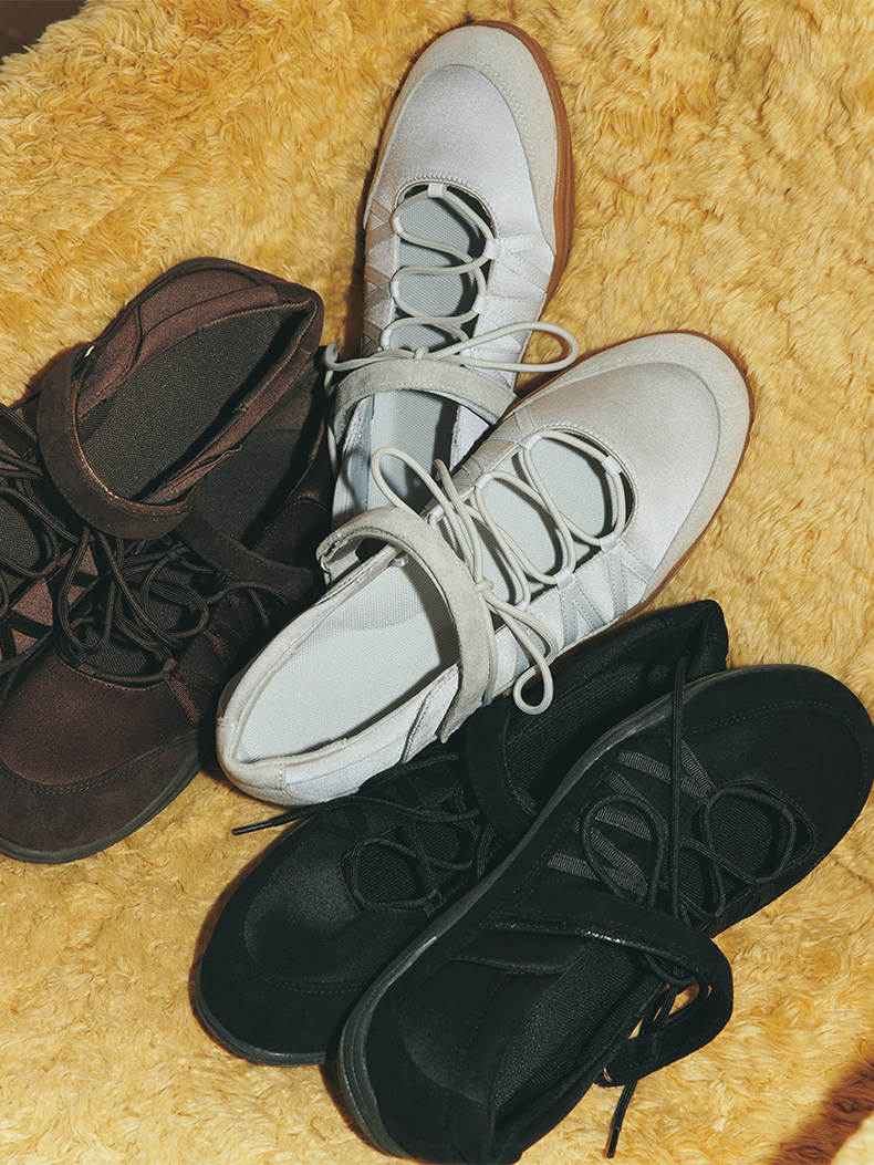Gu Excellent Lace-Up Ballet Casual Shoes Flat Shoes Water-Resistant Autumn 2025 357744/Spring 2026 360270