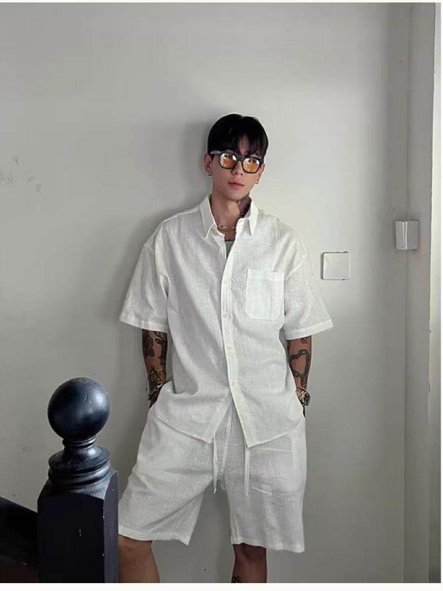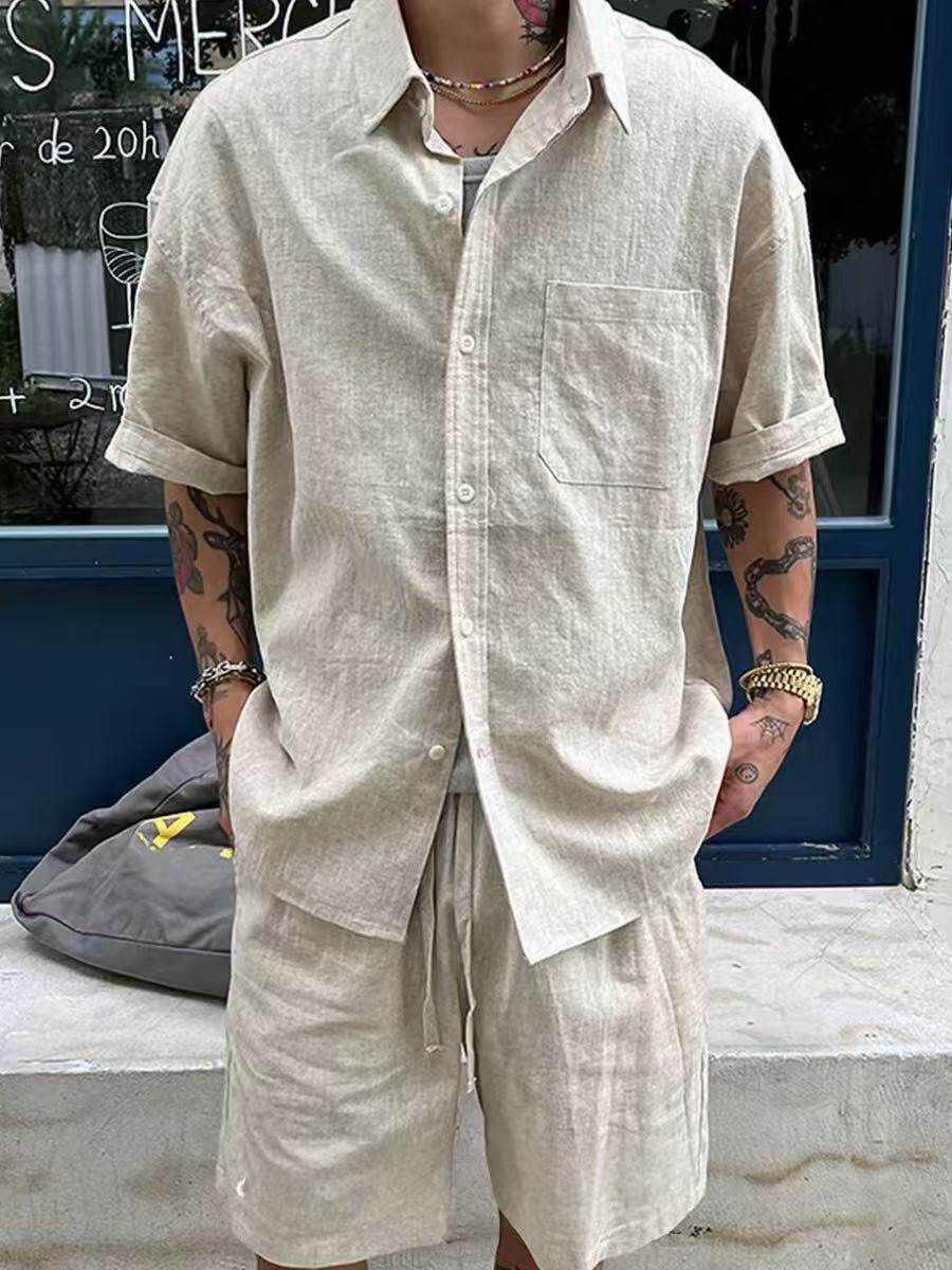 Old Money Style, Lazy and Relaxed Vibe, Retro Linen Suit for Men, Summer Cool and Handsome Shirt and Shorts Set