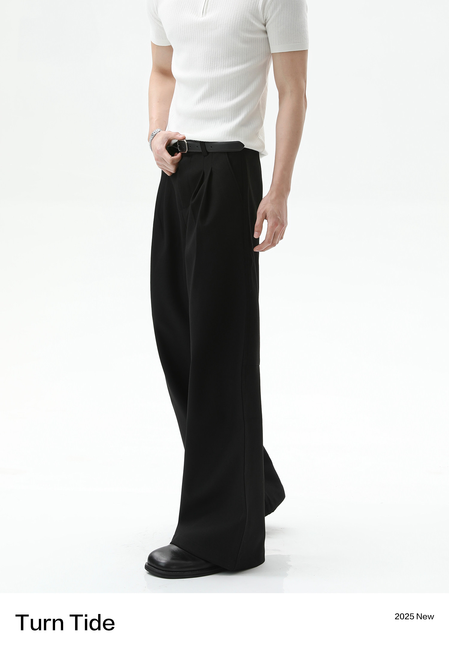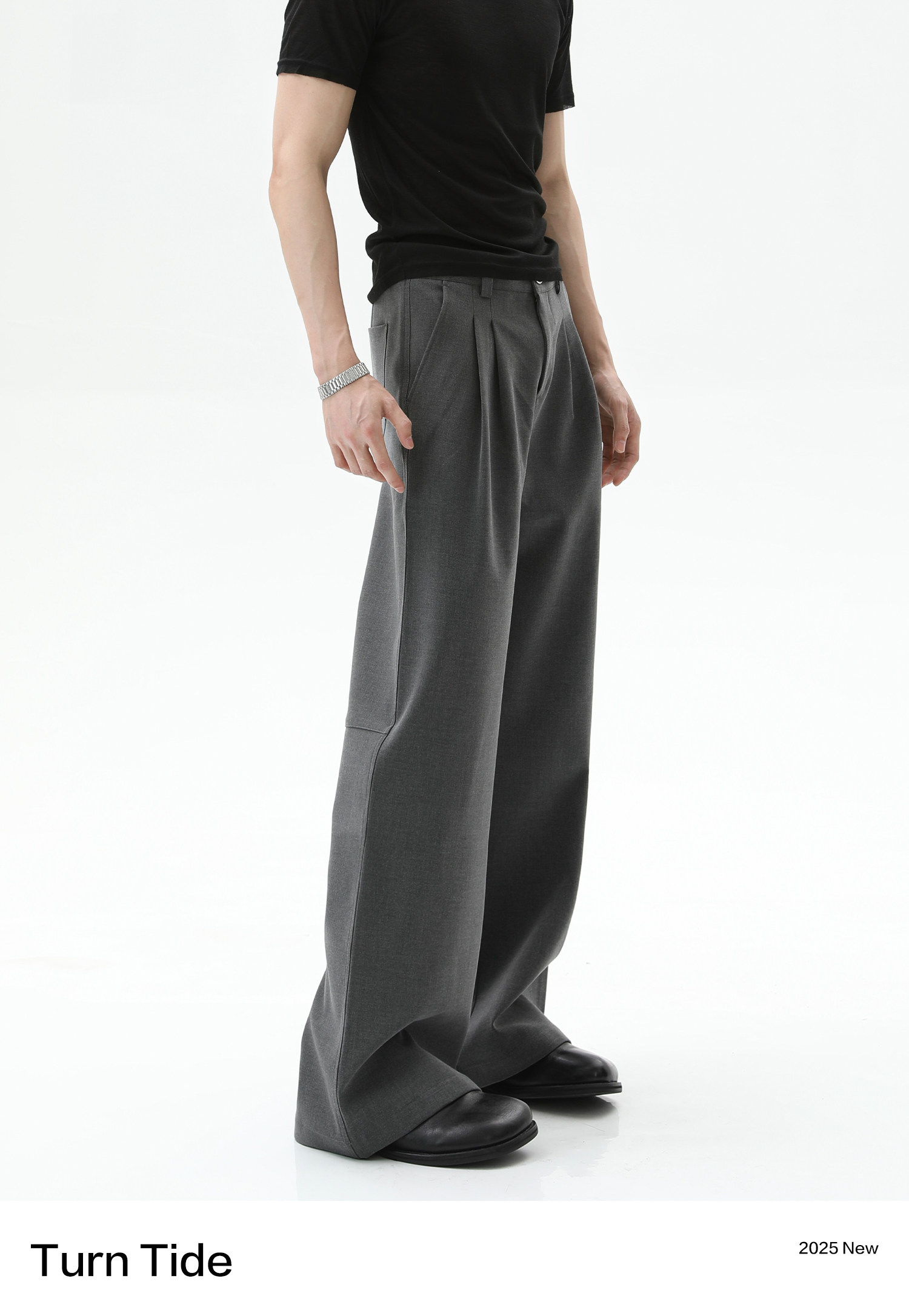 Turntide Niche High-End Three-Dimensional Tailored Straight-Leg Dress Pants for Men, Summer Split Design, Commuter Wide-Leg Trousers