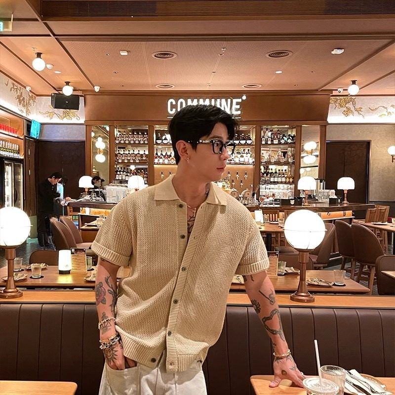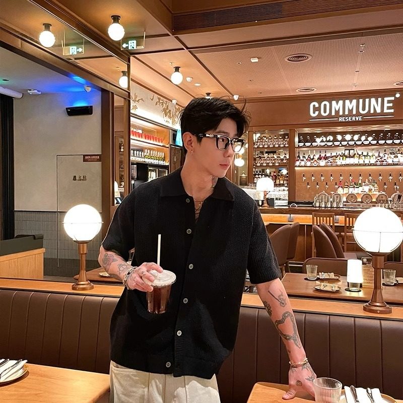 American-Style Hollow-Out Knit Short-Sleeve Shirt for Men, Summer Old-Money Style, High-End Feel, Half-Sleeve Cleanfit Shirt Jacket, Trendy