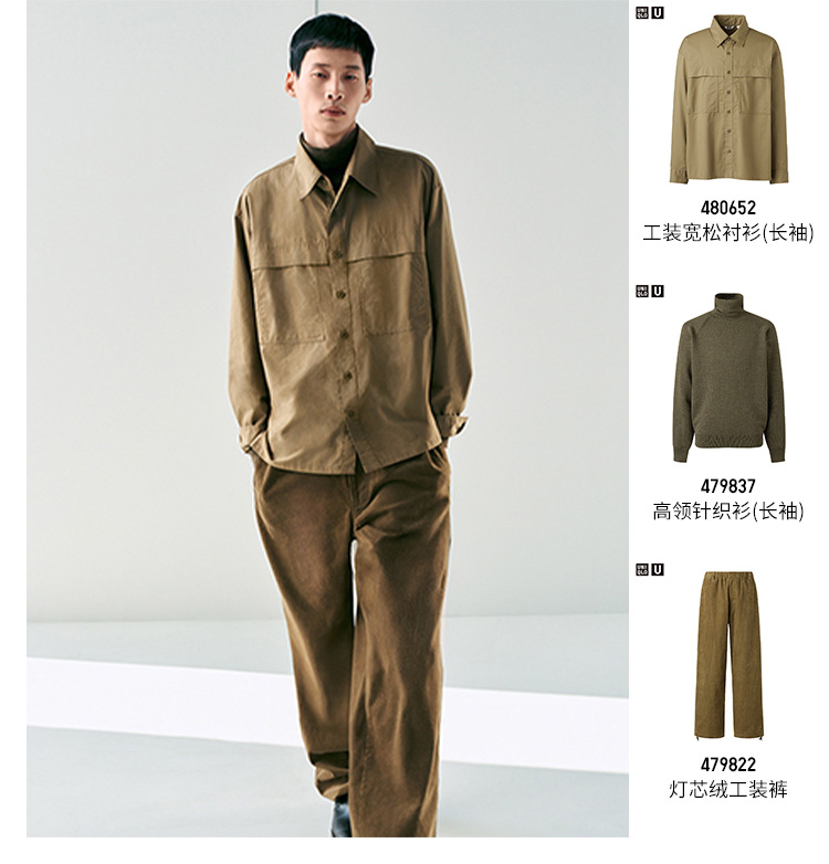 UNIQLO Cooperation Men's Women's parka Loose Shirt Long sleeves Casual Shirt 25 Fall and winter New arrival 480652