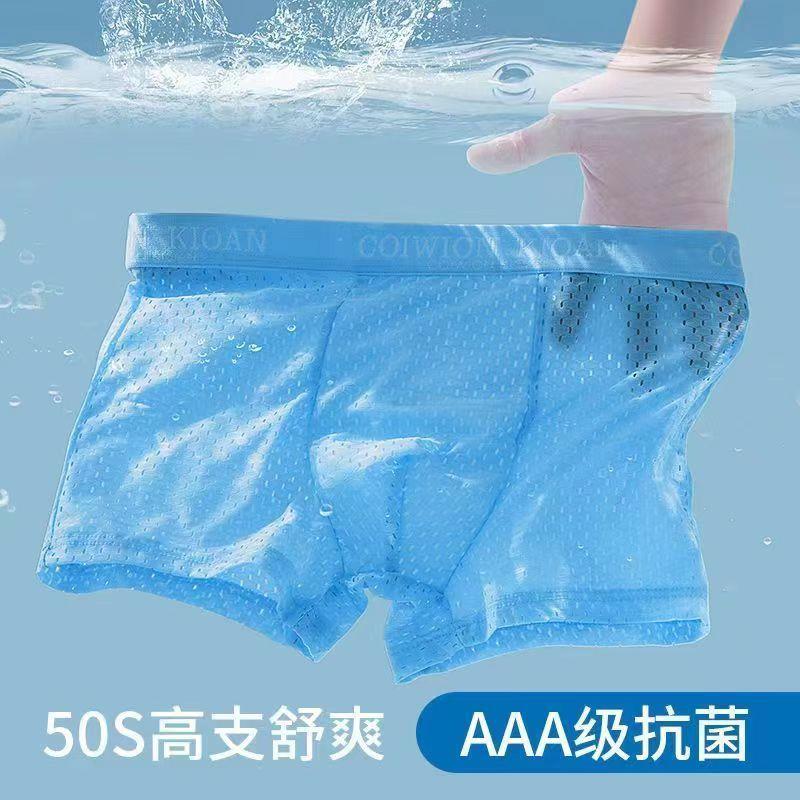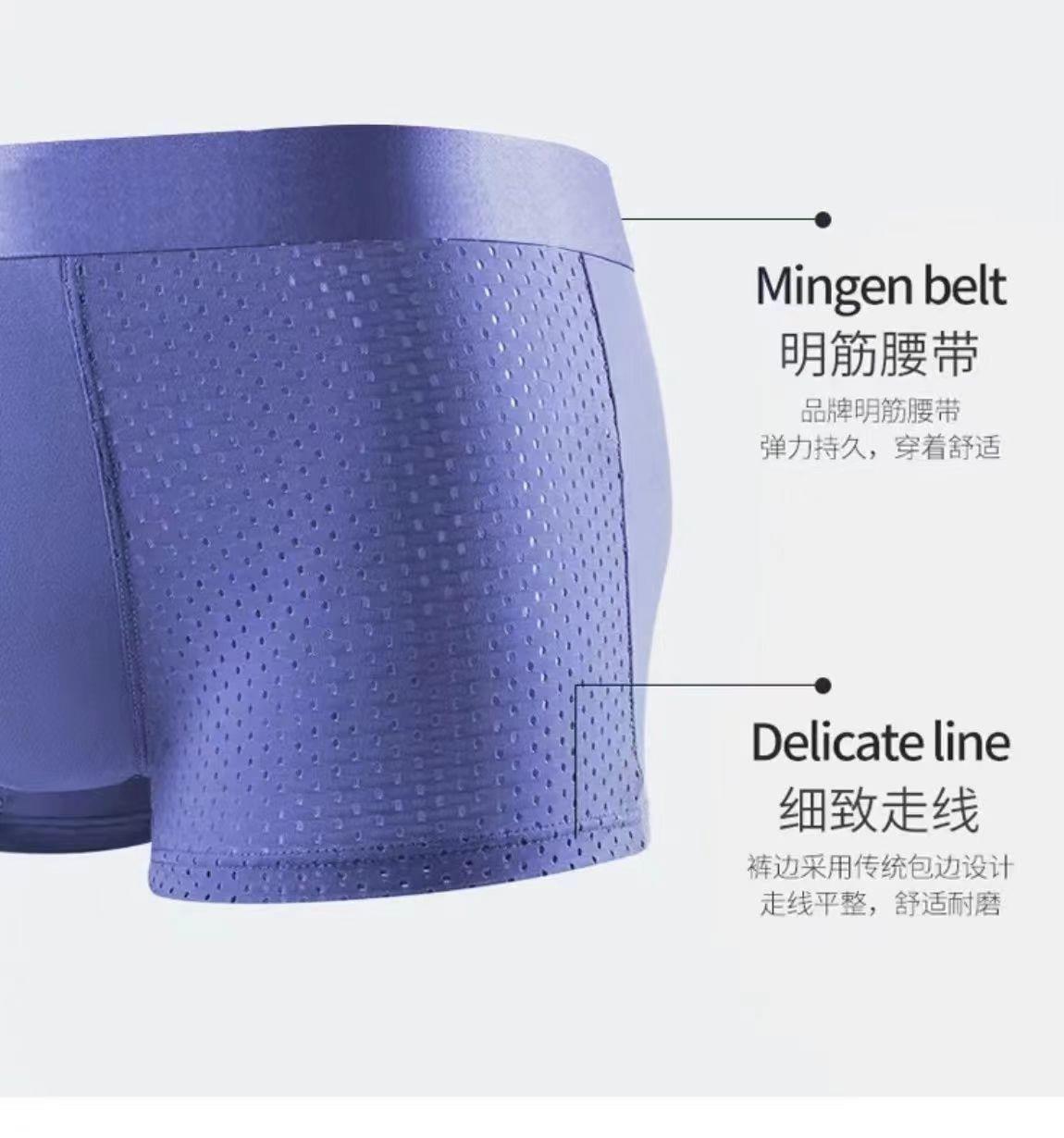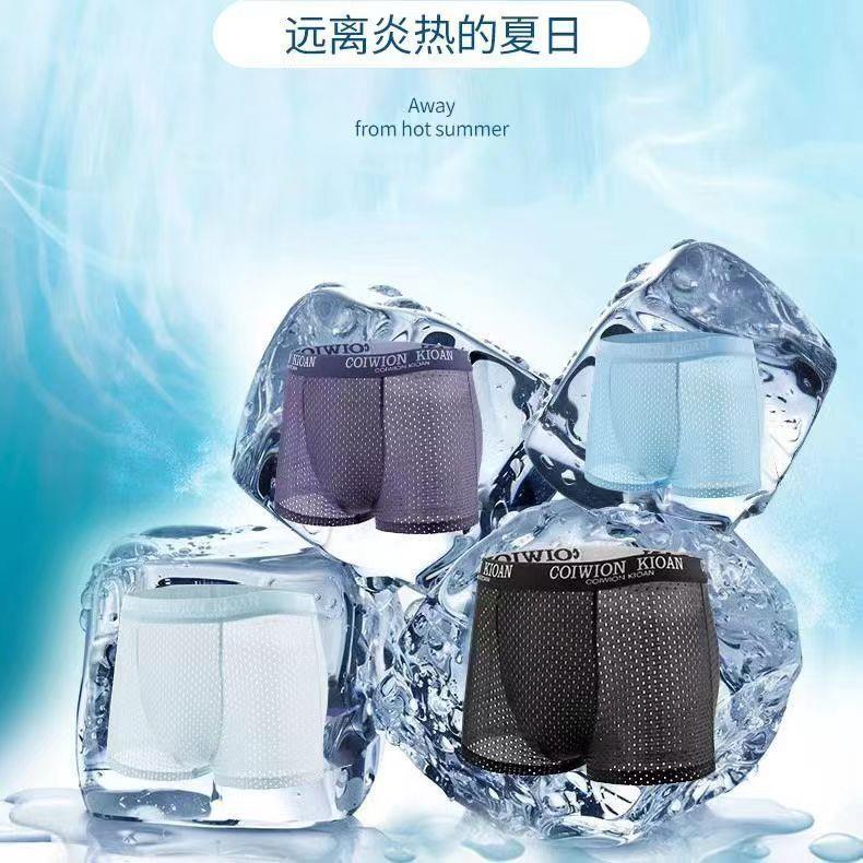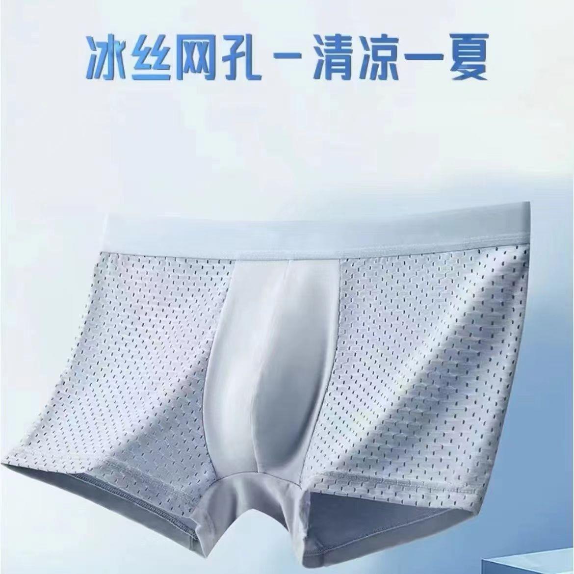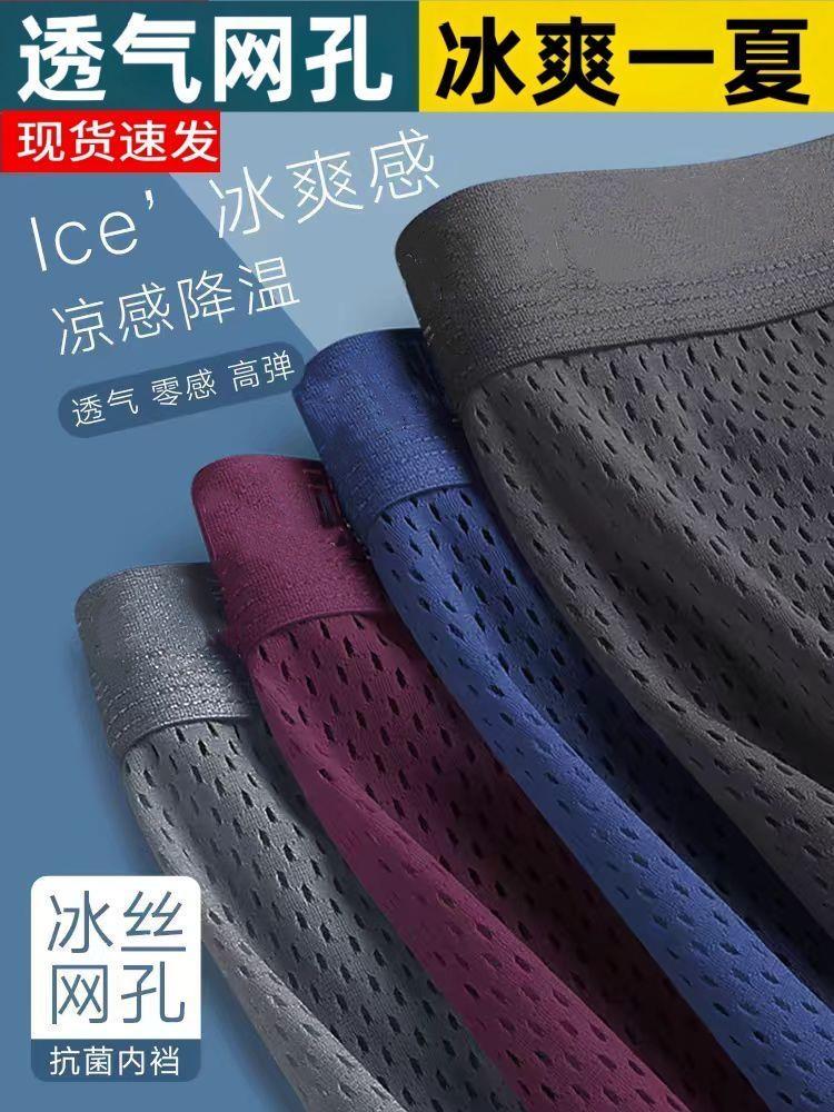 Men's Summer Underwear, Ice Silk Mesh Large Size Boxer Briefs, Breathable Mesh Thin Silky Boxer Briefs