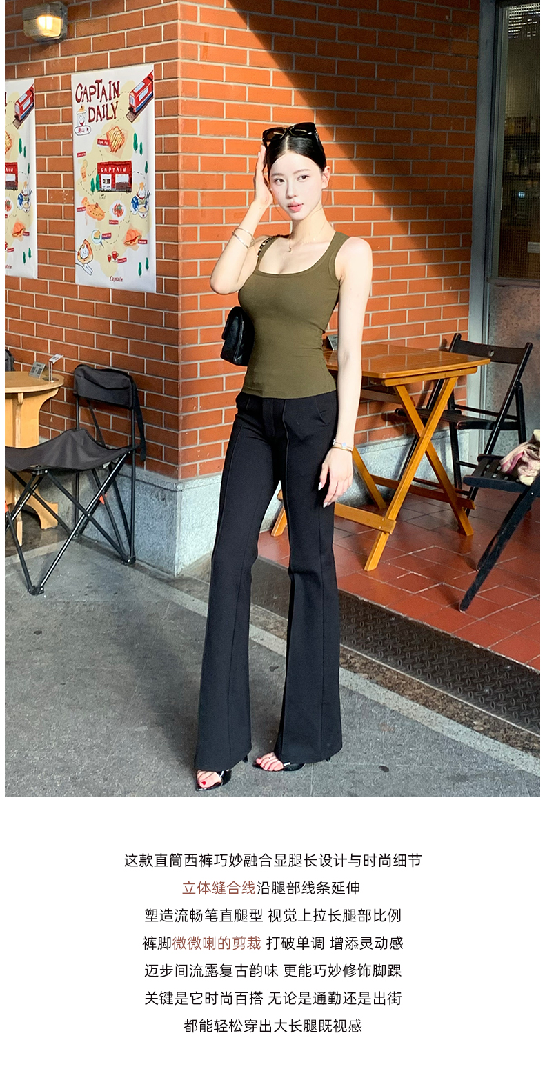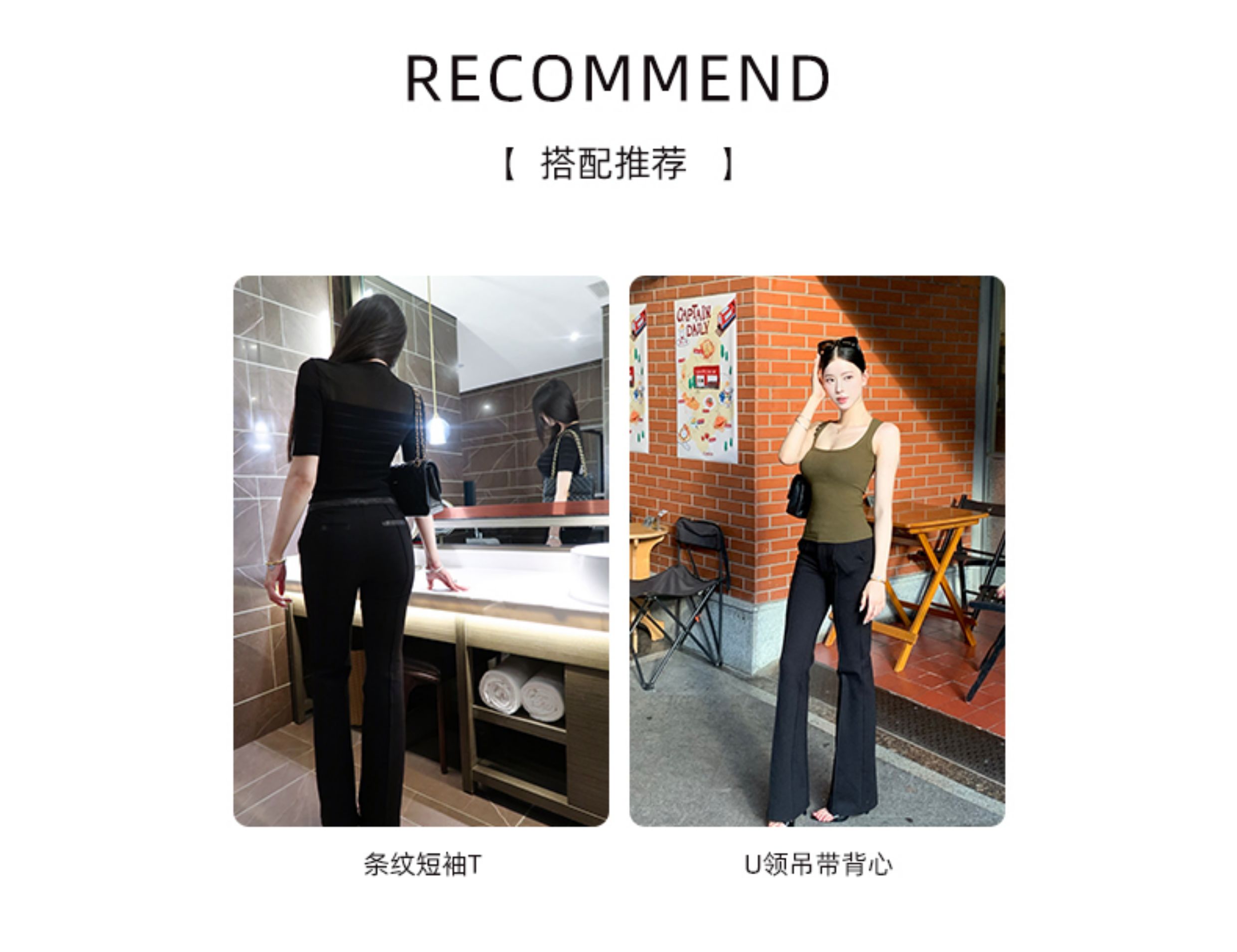 【Fart Shop】 "Leg-Enhancing" Flared Pants, Mid-Waist, Three-Dimensional Cut, Stretchy, Slim-Fit Black Long Pants for Women