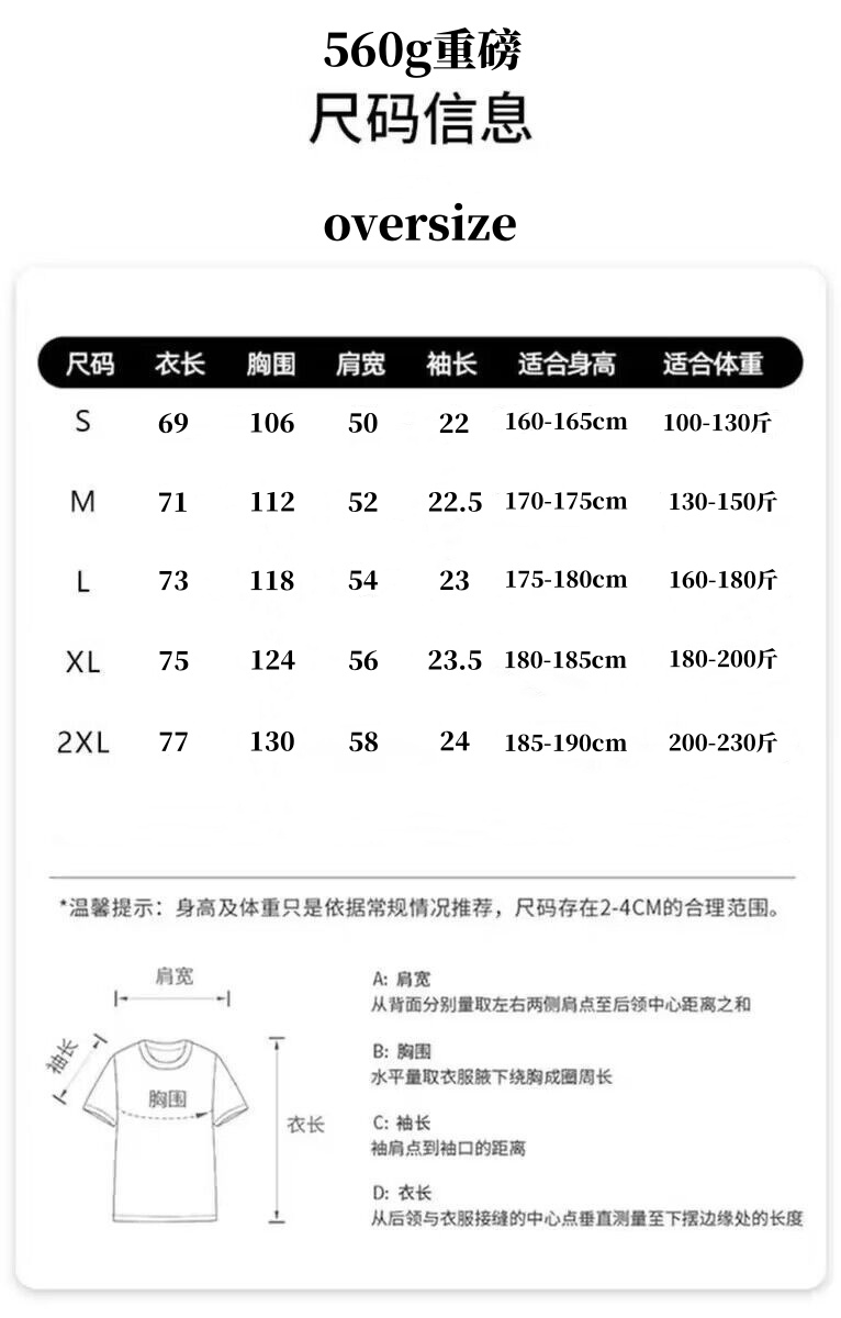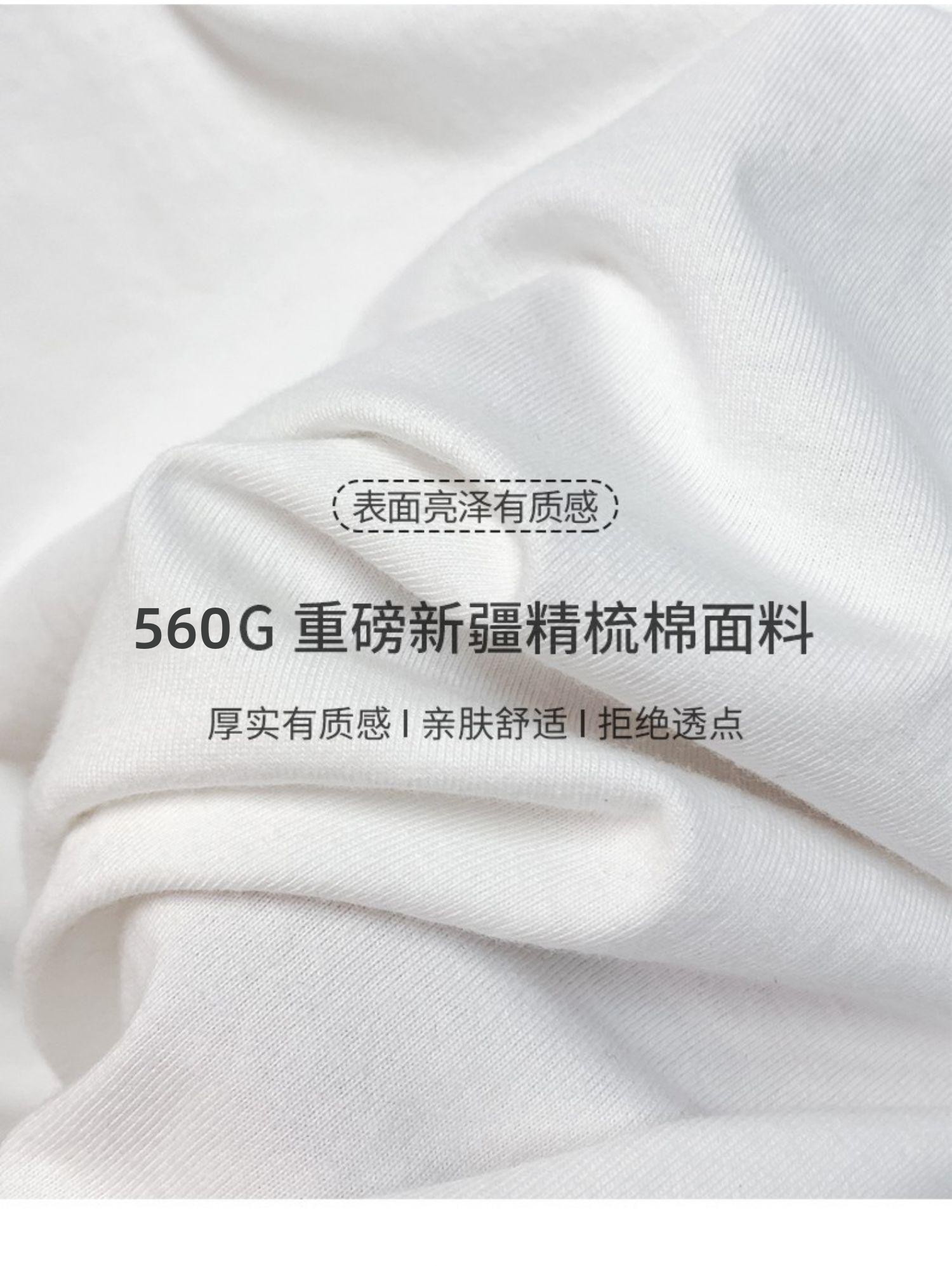 Pure White 560g Heavyweight T-Shirt, Pure Cotton, Thickened Ribbed Neckline, Short Sleeves, Oversize Trendy Brand, Three-Needle Half-Sleeve
