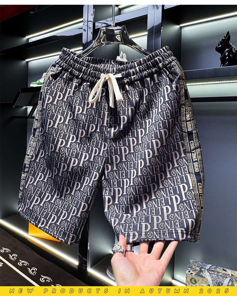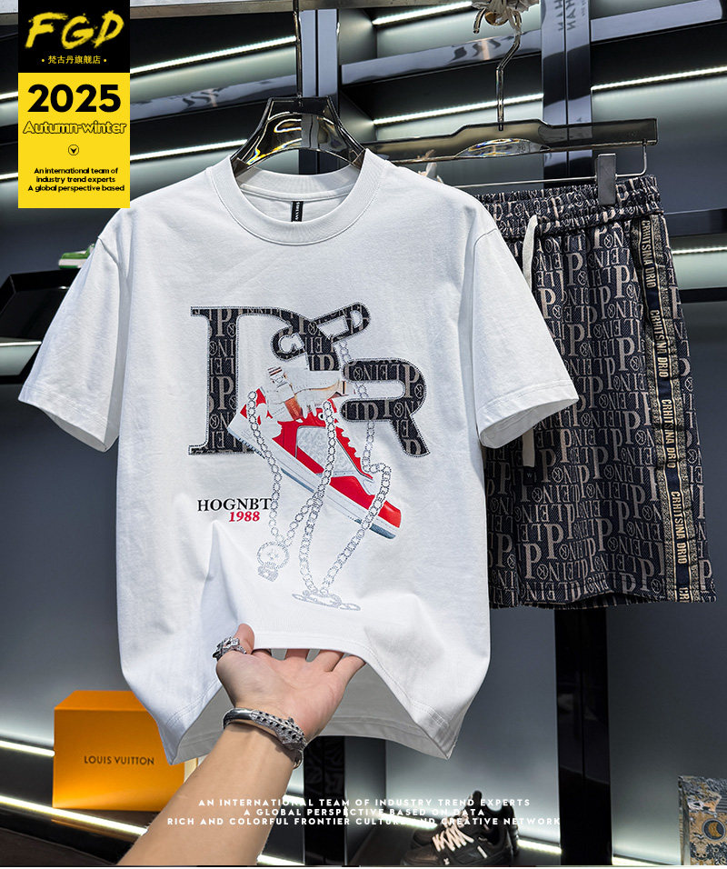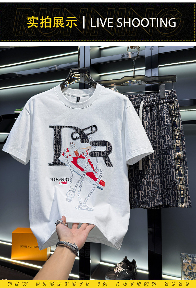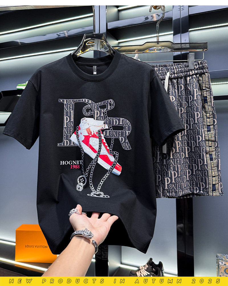 European Style Men's High-End Rhinestone Short-Sleeve Shorts Casual Suit 2025 New Summer Men's Fashion Two-Piece Set