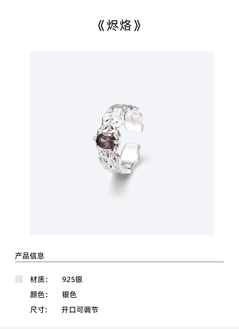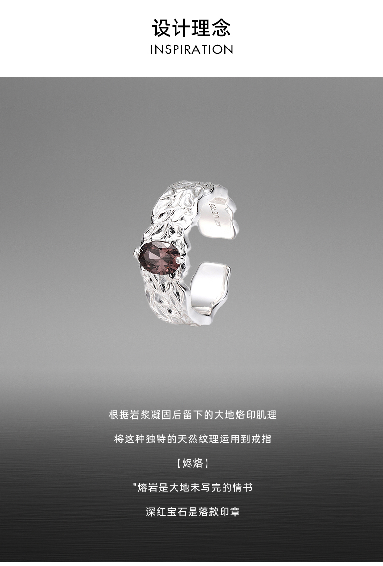 Urbane Ease Original [Flaming] Lava Texture 925 Sterling Silver Niche High-End Open Ring for Men and Women