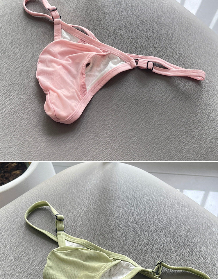 3 Pairs of Large Pouch Men's Thongs, Separate Pouch, Young Men's Thong Underwear, Sexy T-Back, Adjustable Waistband, Ice Silk High-Elastic Briefs