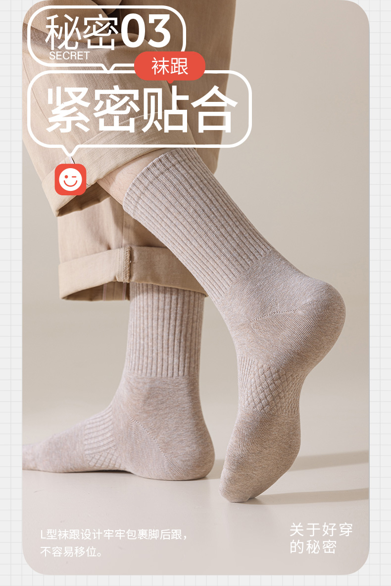 Jiaodian Men's Pure Cotton Thickened Autumn and Winter New Mid-Length Non-Slip Sweat-Absorbent Breathable Antibacterial Seamless Socks