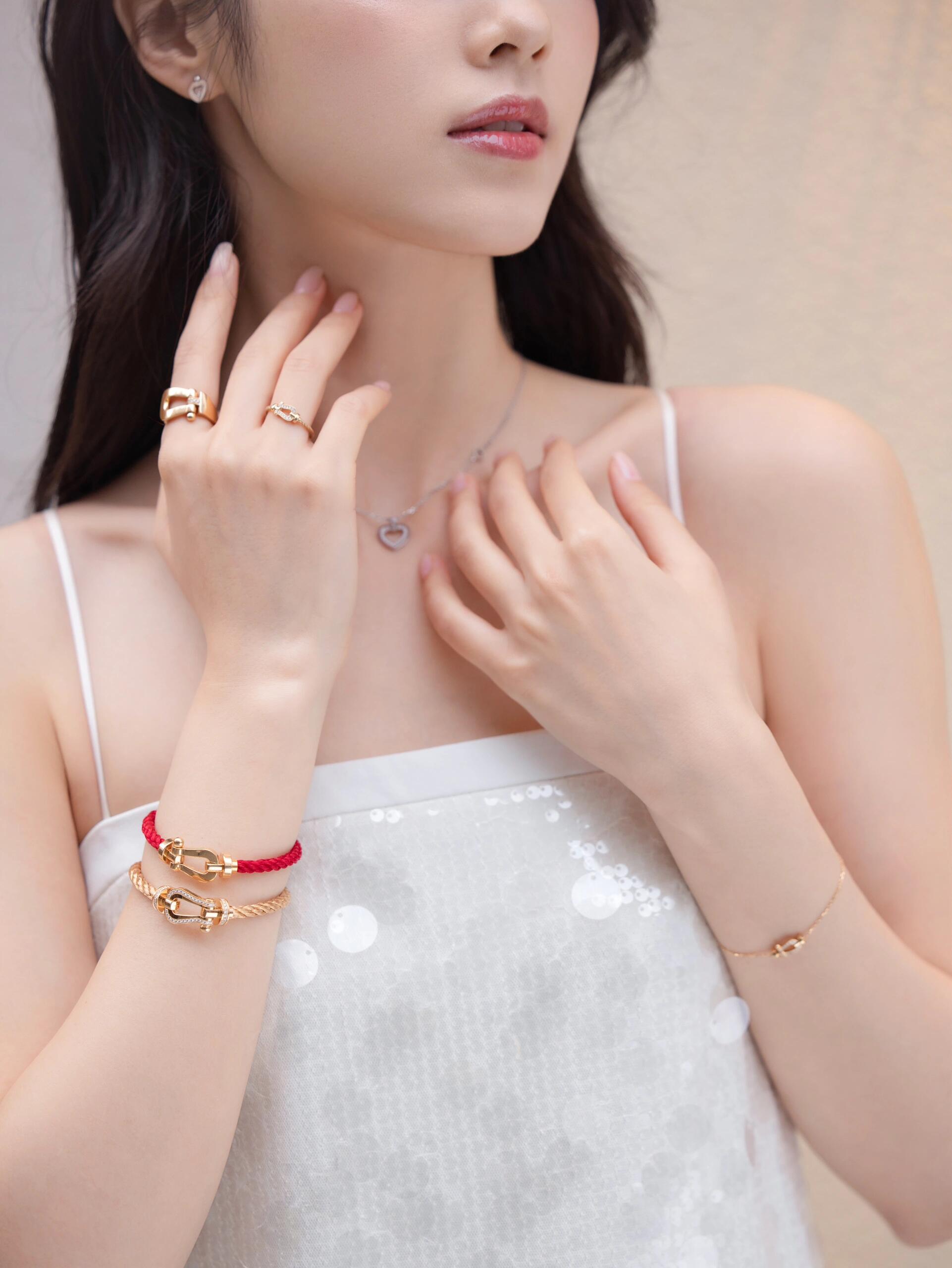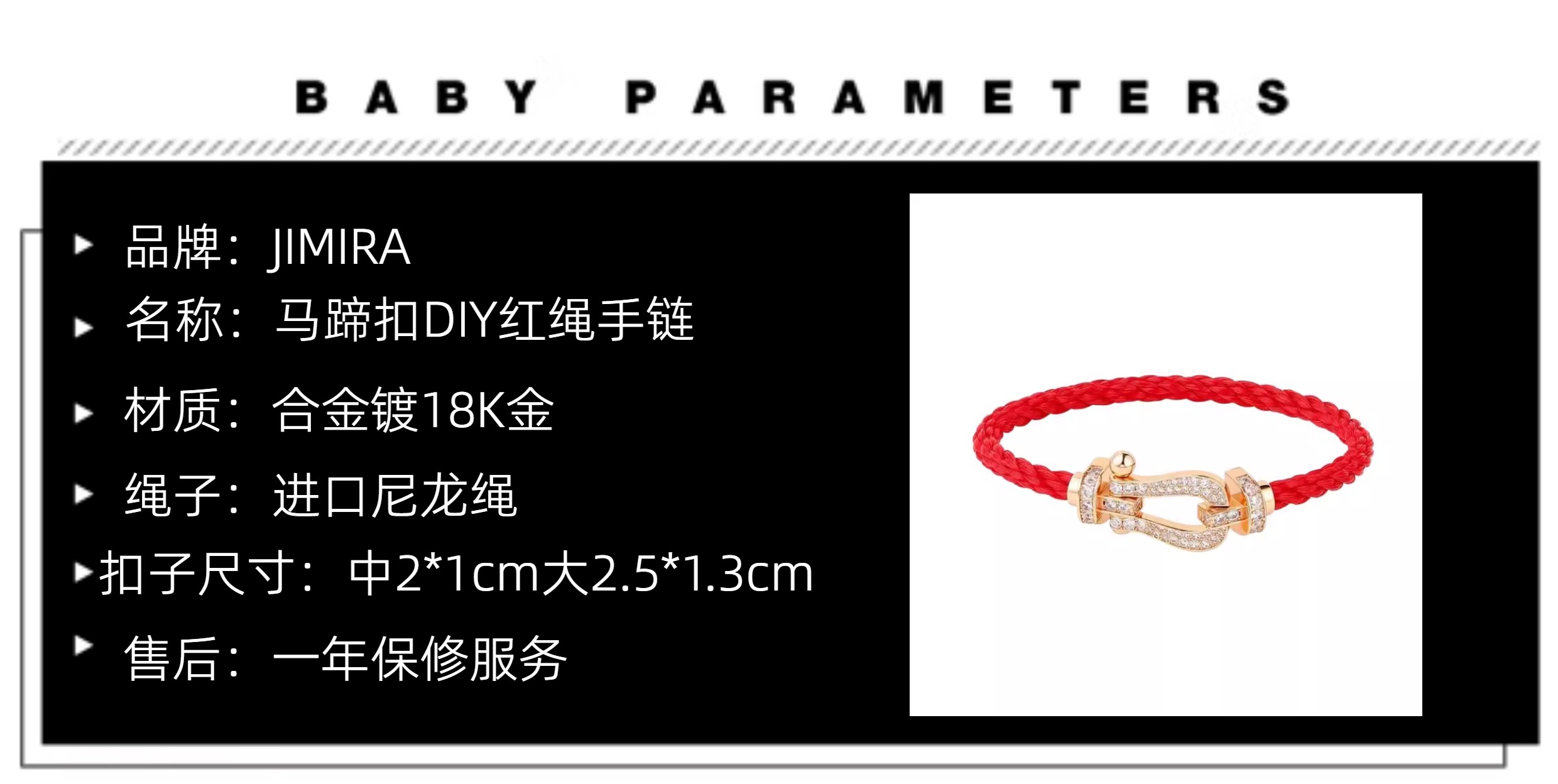 Hong Kong Horseshoe Buckle High-End Red String Full Diamond Bracelet Couple Style Unisex Bangle 18K Rose Gold Birth Year Luck Charm