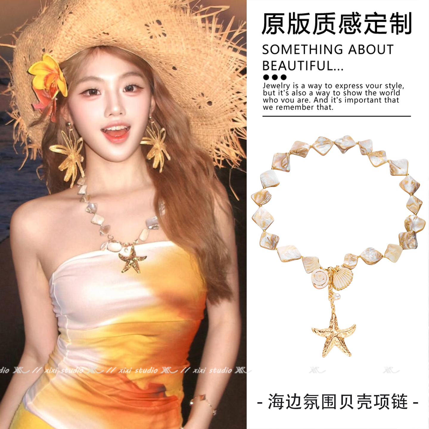 Beach Vacation Style Shell and Starfish Necklace 2025 New Island Style Atmospheric Choker Niche Collarbone Chain