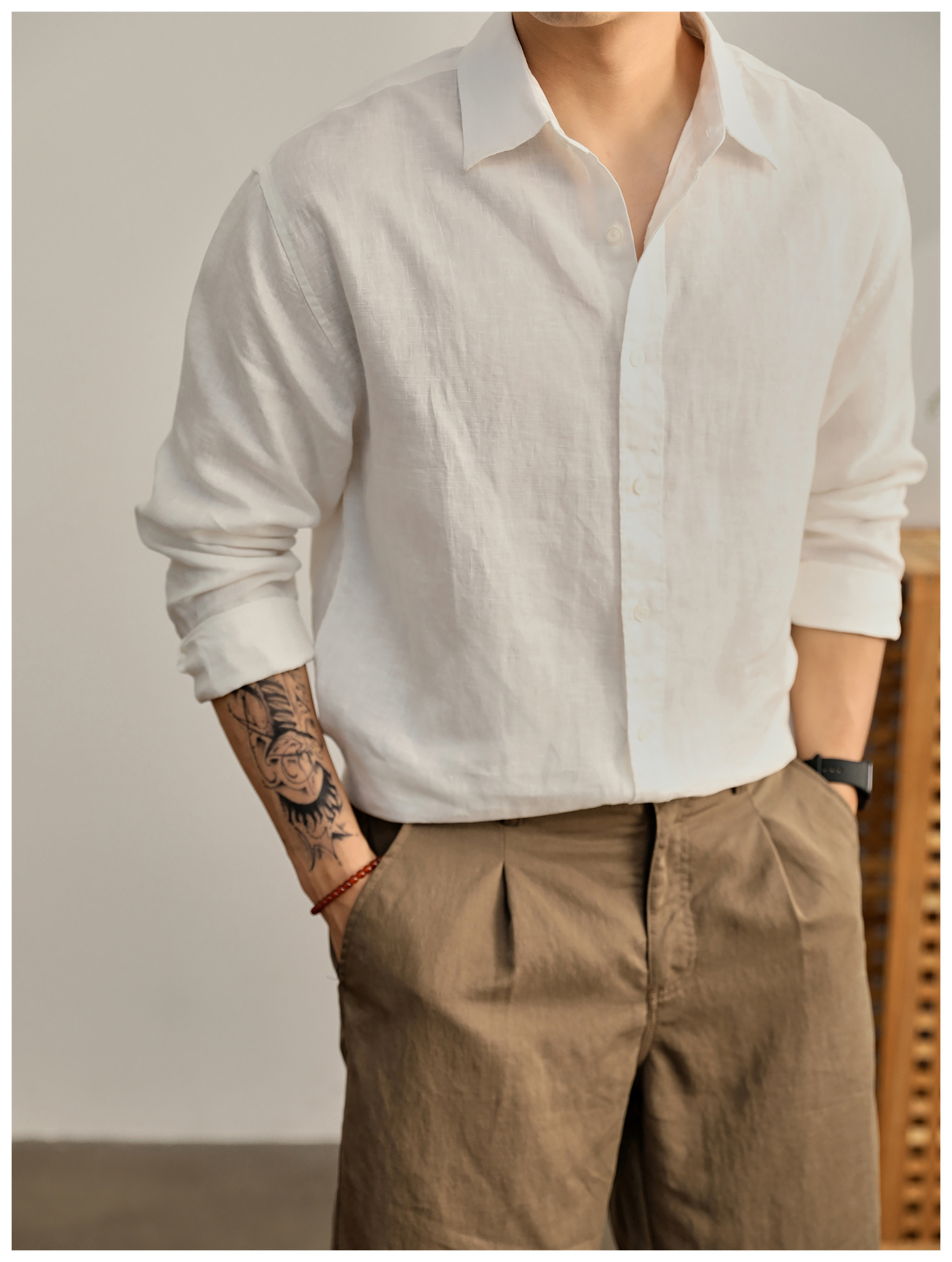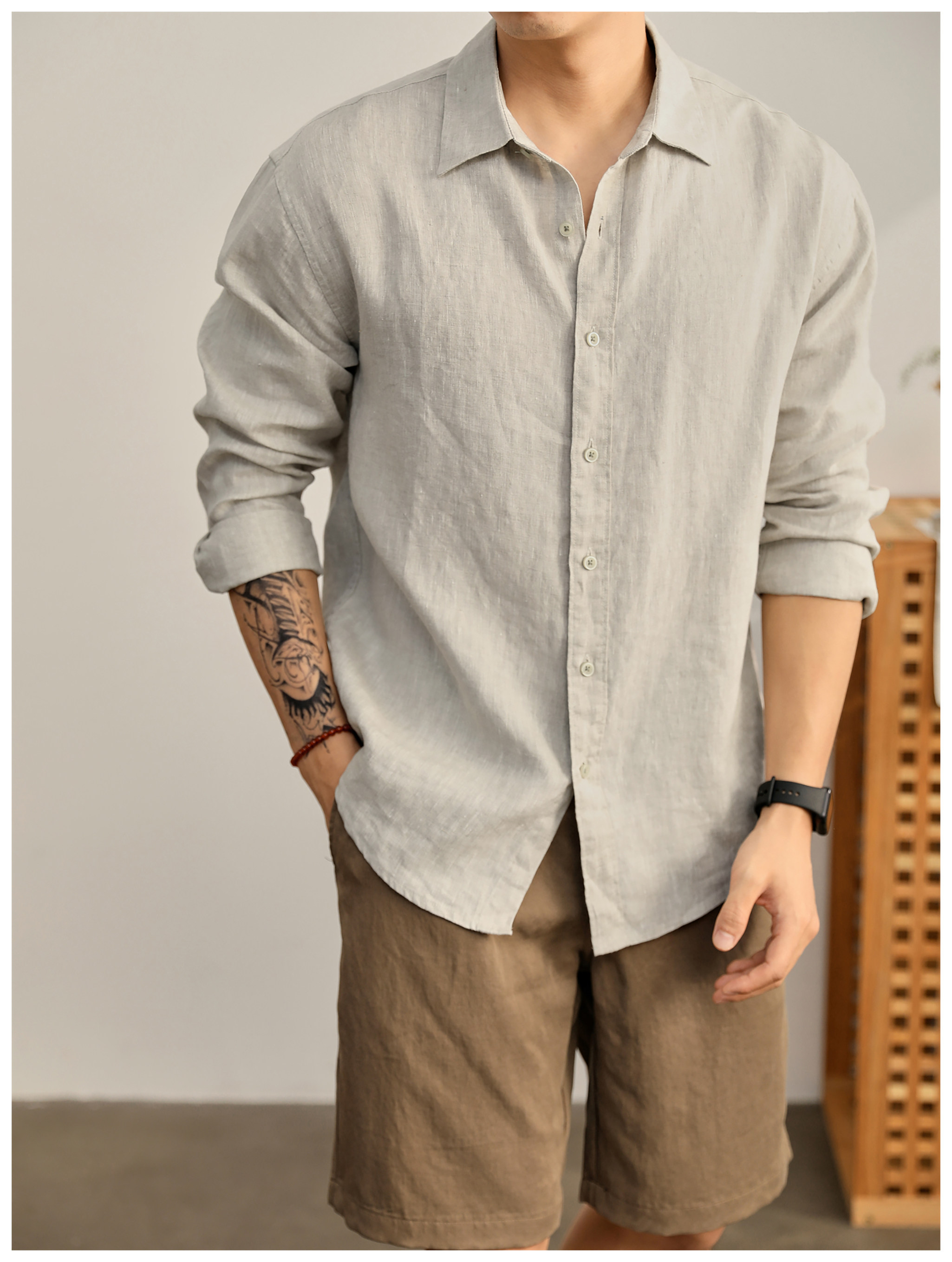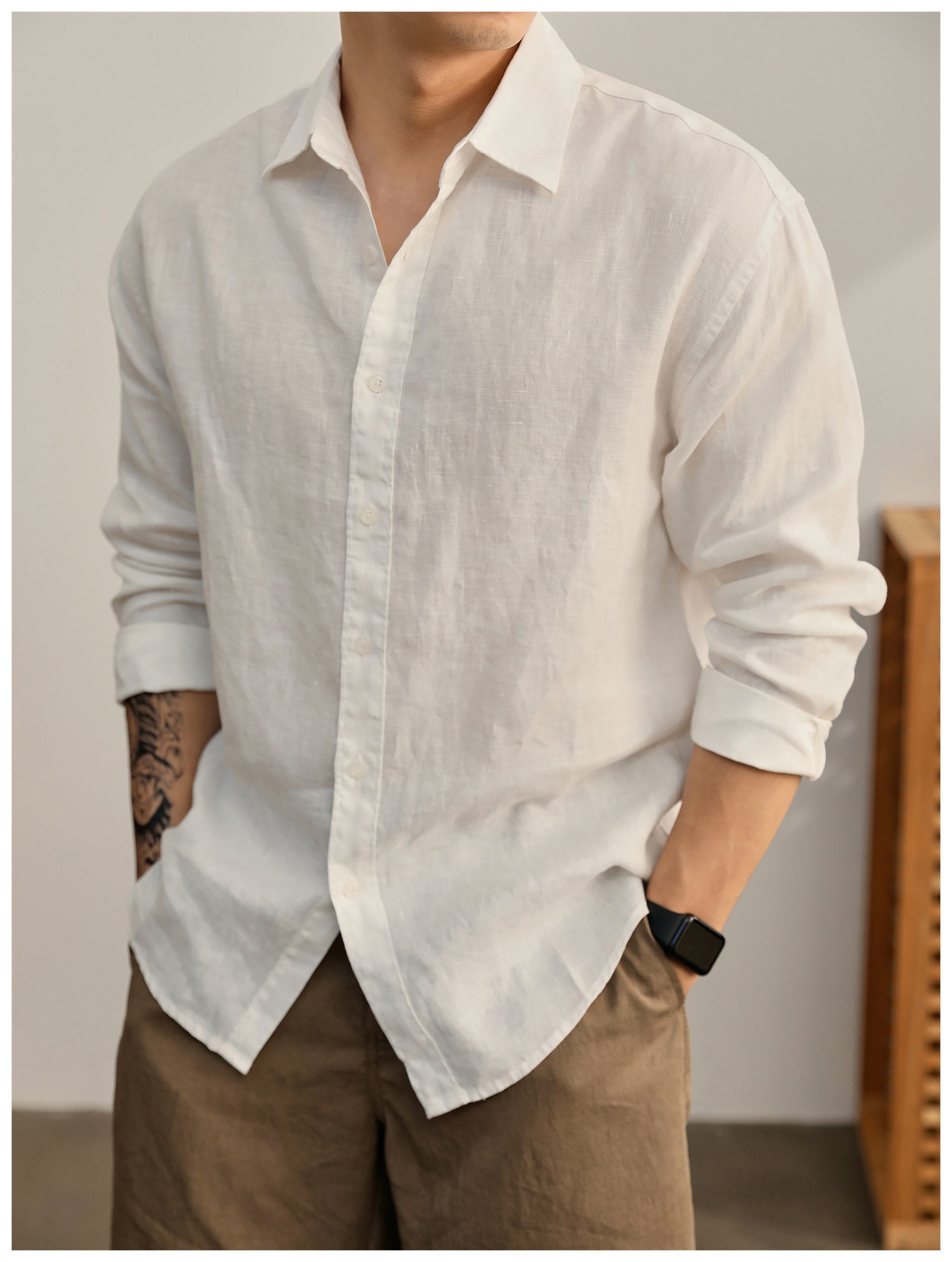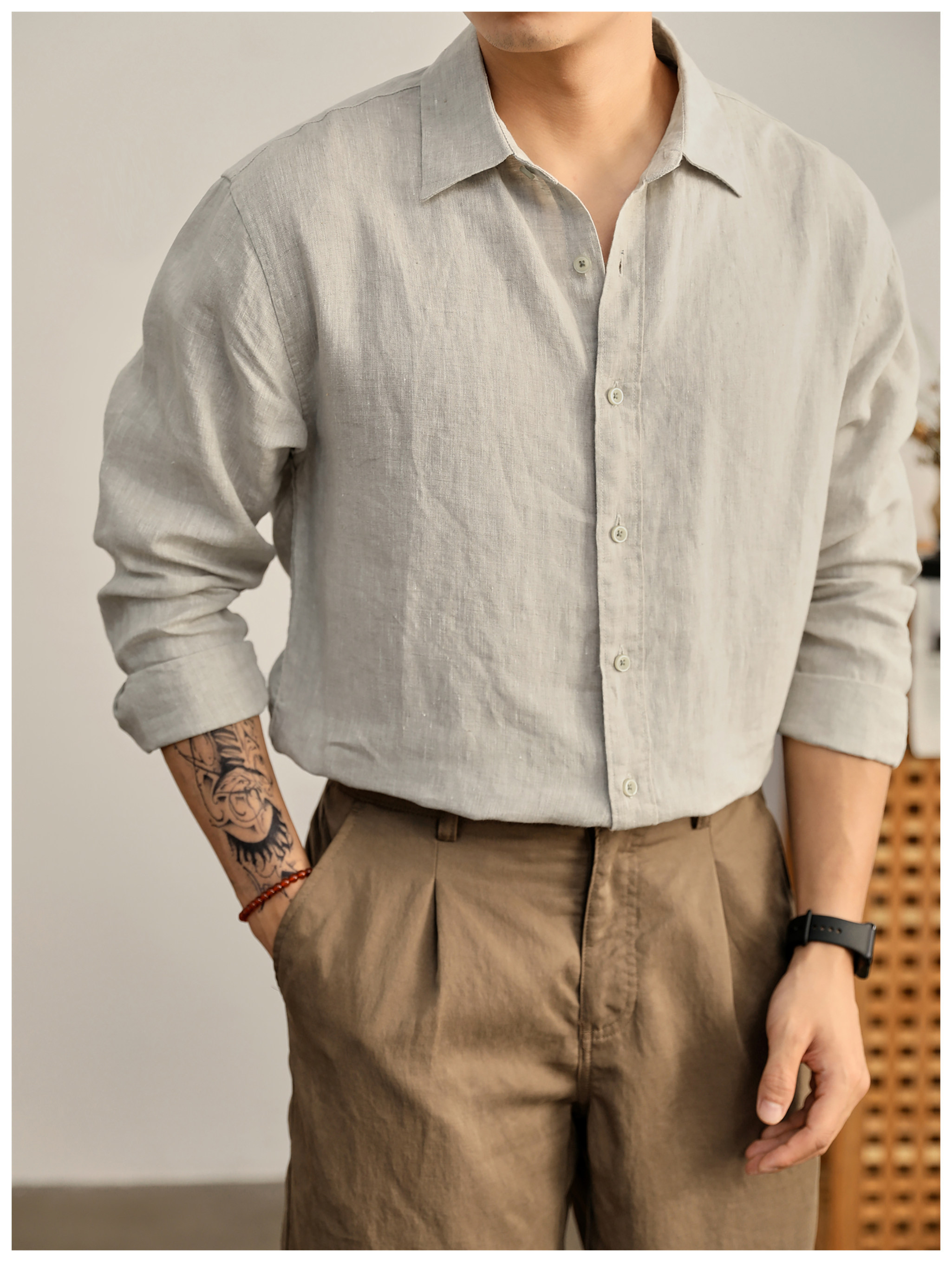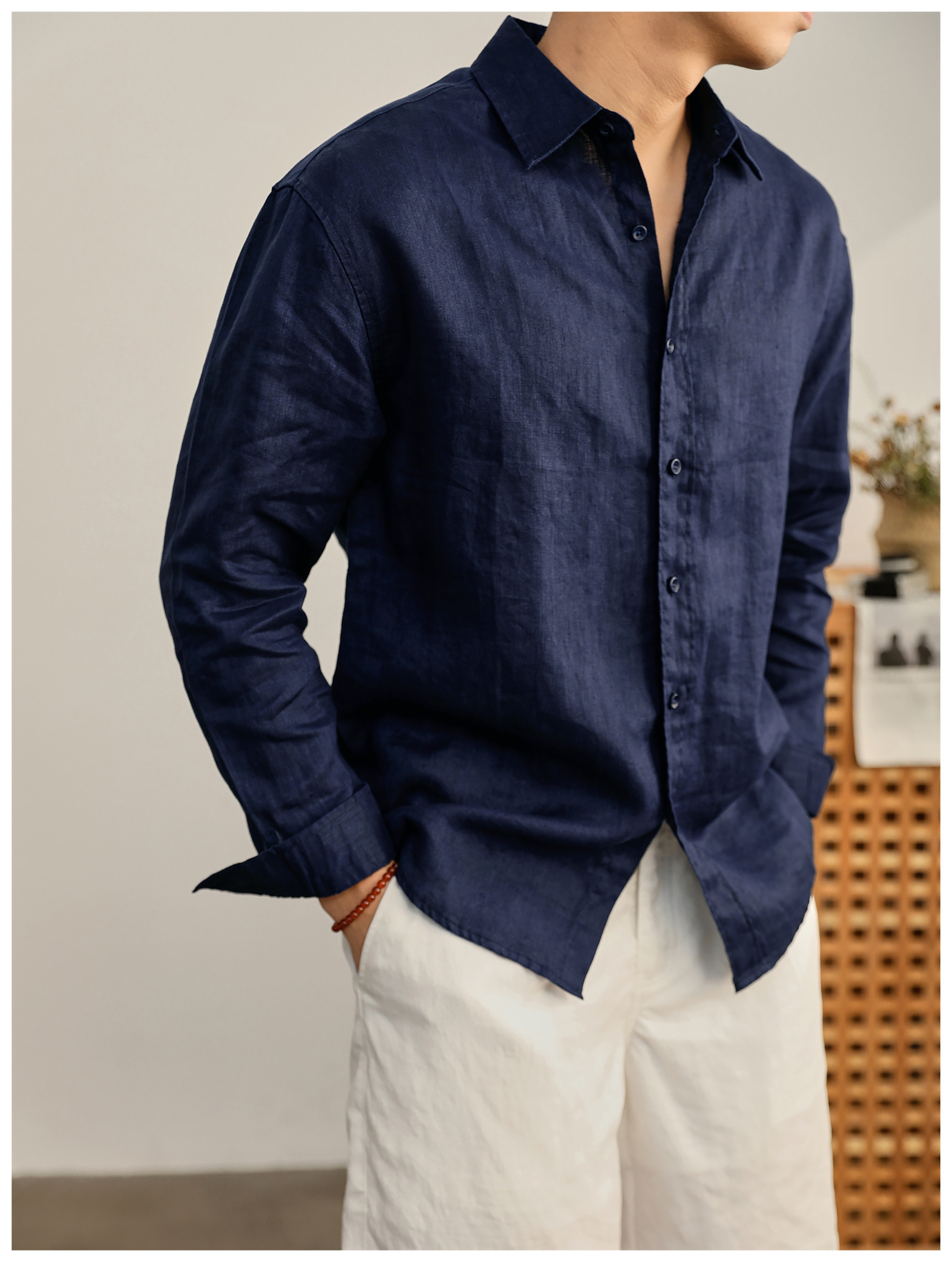 Luud Italian-Style Elegant Pure Linen Yarn-Dyed Lightweight Long-Sleeve Shirt for Men, Old Money Style, Versatile for Commuting, Breathable and Moisture-Wicking Shirt
